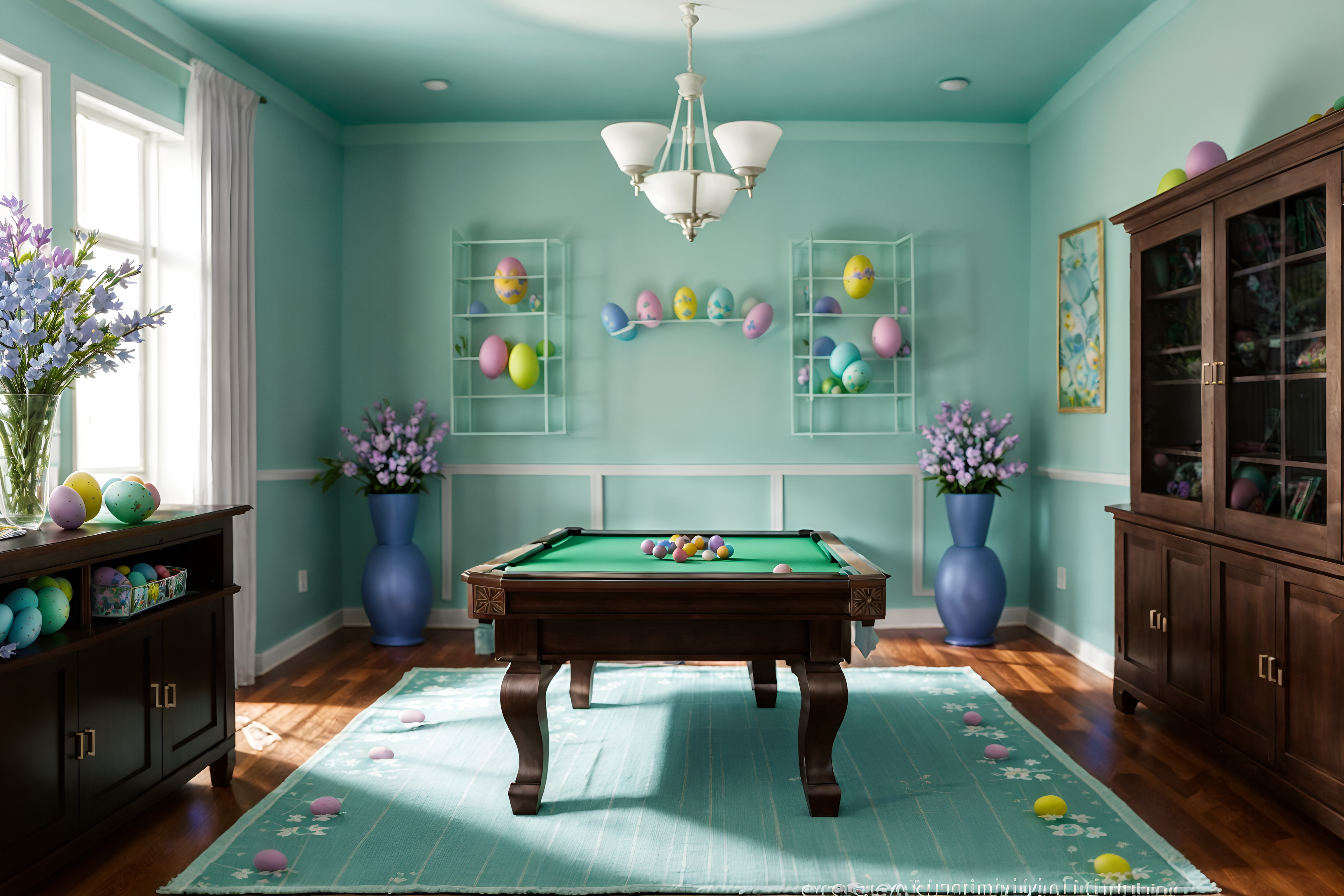 photo from pinterest of easter-style interior designed (gaming room interior) . with colorful easter eggs and light blue colors and easter decorations and flowers on table and spring decorations and colorful easter eggs. . cinematic photo, highly detailed, cinematic lighting, ultra-detailed, ultrarealistic, photorealism, 8k. trending on pinterest. easter interior design style. masterpiece, cinematic light, ultrarealistic+, photorealistic+, 8k, raw photo, realistic, sharp focus on eyes, (symmetrical eyes), (intact eyes), hyperrealistic, highest quality, best quality, , highly detailed, masterpiece, best quality, extremely detailed 8k wallpaper, masterpiece, best quality, ultra-detailed, best shadow, detailed background, detailed face, detailed eyes, high contrast, best illumination, detailed face, dulux, caustic, dynamic angle, detailed glow. dramatic lighting. highly detailed, insanely detailed hair, symmetrical, intricate details, professionally retouched, 8k high definition. strong bokeh. award winning photo.