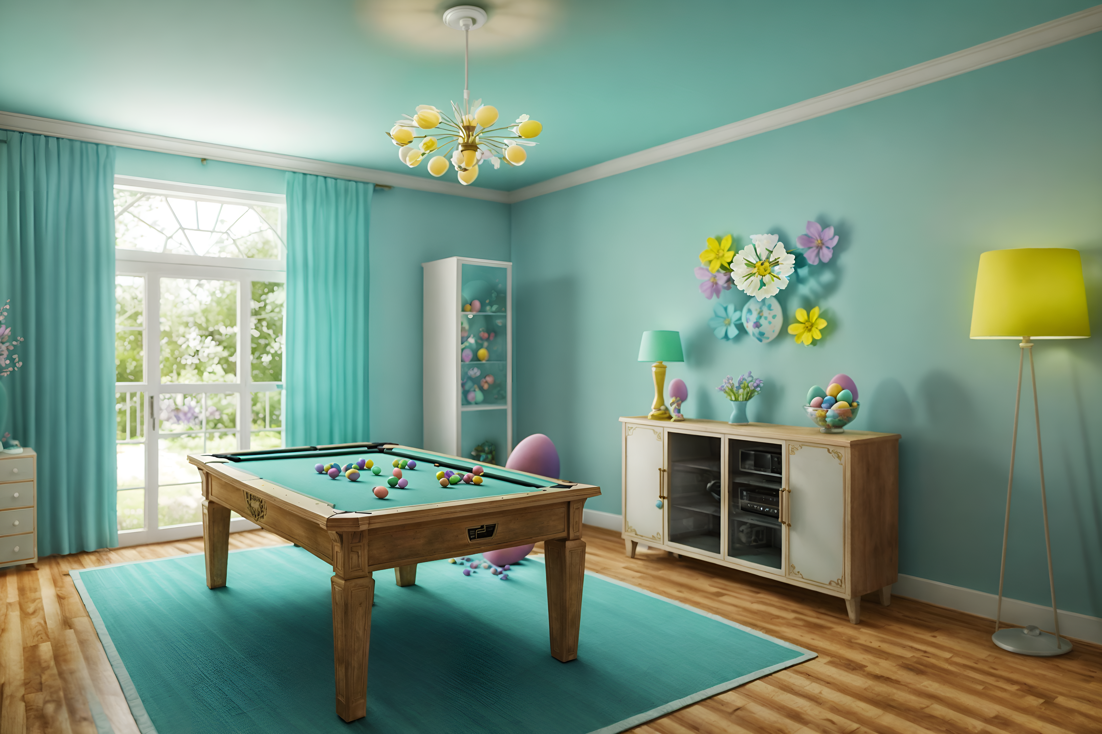 photo from pinterest of easter-style interior designed (gaming room interior) . with colorful easter eggs and light blue colors and easter decorations and flowers on table and spring decorations and colorful easter eggs. . cinematic photo, highly detailed, cinematic lighting, ultra-detailed, ultrarealistic, photorealism, 8k. trending on pinterest. easter interior design style. masterpiece, cinematic light, ultrarealistic+, photorealistic+, 8k, raw photo, realistic, sharp focus on eyes, (symmetrical eyes), (intact eyes), hyperrealistic, highest quality, best quality, , highly detailed, masterpiece, best quality, extremely detailed 8k wallpaper, masterpiece, best quality, ultra-detailed, best shadow, detailed background, detailed face, detailed eyes, high contrast, best illumination, detailed face, dulux, caustic, dynamic angle, detailed glow. dramatic lighting. highly detailed, insanely detailed hair, symmetrical, intricate details, professionally retouched, 8k high definition. strong bokeh. award winning photo.