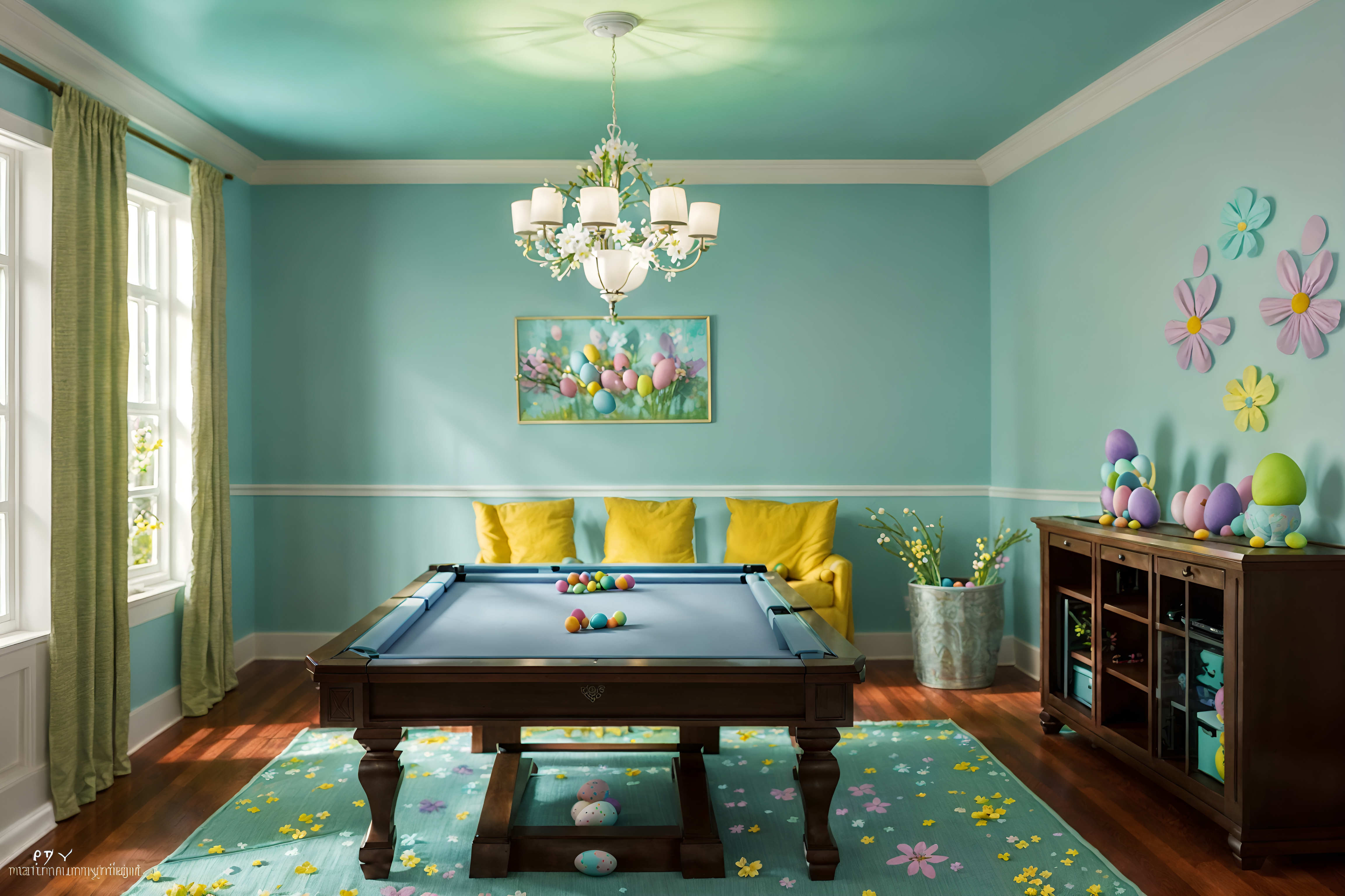 photo from pinterest of easter-style interior designed (gaming room interior) . with colorful easter eggs and light blue colors and easter decorations and flowers on table and spring decorations and colorful easter eggs. . cinematic photo, highly detailed, cinematic lighting, ultra-detailed, ultrarealistic, photorealism, 8k. trending on pinterest. easter interior design style. masterpiece, cinematic light, ultrarealistic+, photorealistic+, 8k, raw photo, realistic, sharp focus on eyes, (symmetrical eyes), (intact eyes), hyperrealistic, highest quality, best quality, , highly detailed, masterpiece, best quality, extremely detailed 8k wallpaper, masterpiece, best quality, ultra-detailed, best shadow, detailed background, detailed face, detailed eyes, high contrast, best illumination, detailed face, dulux, caustic, dynamic angle, detailed glow. dramatic lighting. highly detailed, insanely detailed hair, symmetrical, intricate details, professionally retouched, 8k high definition. strong bokeh. award winning photo.