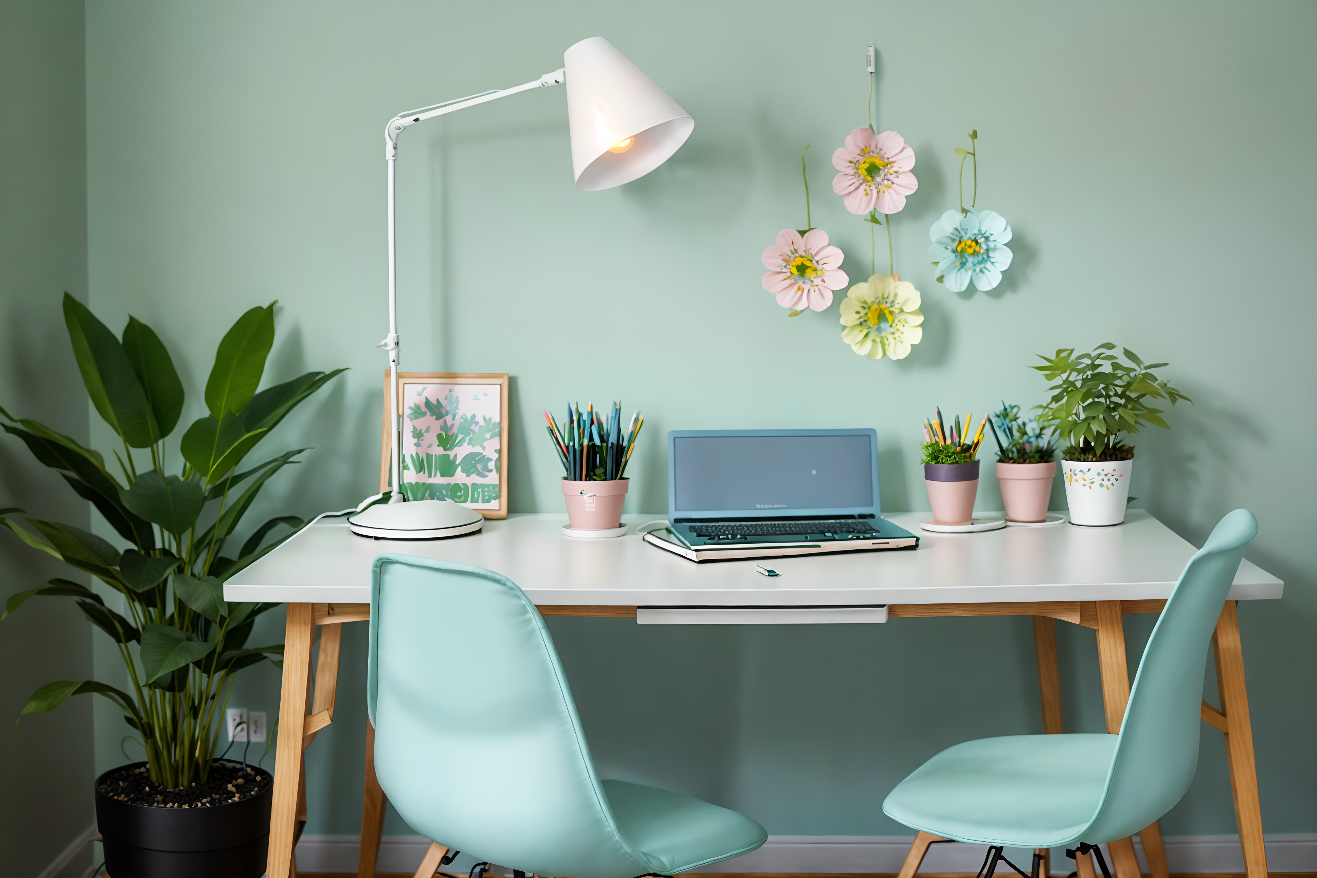 photo from pinterest of easter-style interior designed (home office interior) with plant and cabinets and computer desk and desk lamp and office chair and plant. . with flowers on table and easter decorations and spring decorations and colorful easter eggs and light blue colors and flowers on table. . cinematic photo, highly detailed, cinematic lighting, ultra-detailed, ultrarealistic, photorealism, 8k. trending on pinterest. easter interior design style. masterpiece, cinematic light, ultrarealistic+, photorealistic+, 8k, raw photo, realistic, sharp focus on eyes, (symmetrical eyes), (intact eyes), hyperrealistic, highest quality, best quality, , highly detailed, masterpiece, best quality, extremely detailed 8k wallpaper, masterpiece, best quality, ultra-detailed, best shadow, detailed background, detailed face, detailed eyes, high contrast, best illumination, detailed face, dulux, caustic, dynamic angle, detailed glow. dramatic lighting. highly detailed, insanely detailed hair, symmetrical, intricate details, professionally retouched, 8k high definition. strong bokeh. award winning photo.