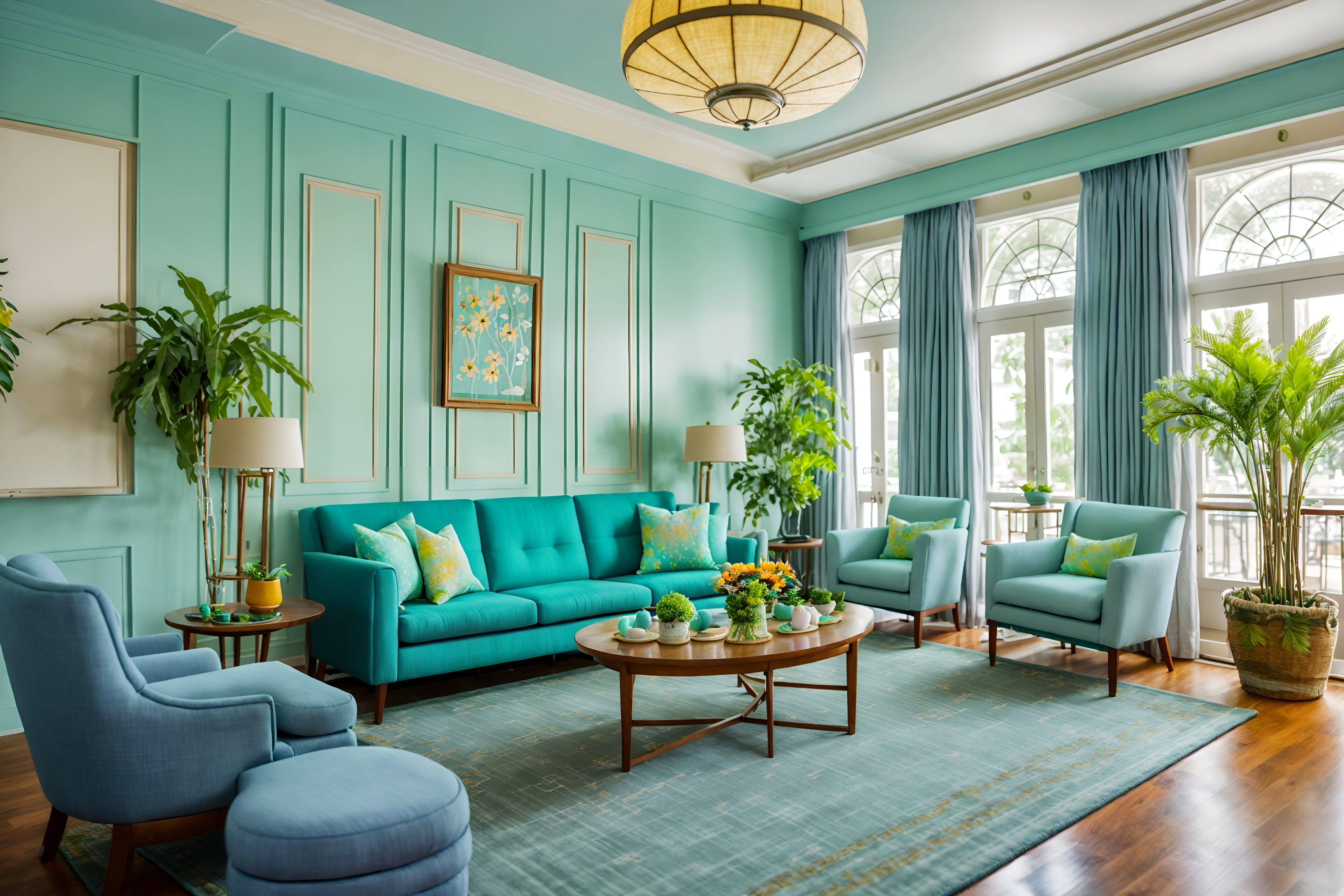 photo from pinterest of easter-style interior designed (hotel lobby interior) with lounge chairs and coffee tables and check in desk and rug and sofas and hanging lamps and furniture and plant. . with light blue colors and spring decorations and flowers on table and colorful easter eggs and easter decorations and light blue colors. . cinematic photo, highly detailed, cinematic lighting, ultra-detailed, ultrarealistic, photorealism, 8k. trending on pinterest. easter interior design style. masterpiece, cinematic light, ultrarealistic+, photorealistic+, 8k, raw photo, realistic, sharp focus on eyes, (symmetrical eyes), (intact eyes), hyperrealistic, highest quality, best quality, , highly detailed, masterpiece, best quality, extremely detailed 8k wallpaper, masterpiece, best quality, ultra-detailed, best shadow, detailed background, detailed face, detailed eyes, high contrast, best illumination, detailed face, dulux, caustic, dynamic angle, detailed glow. dramatic lighting. highly detailed, insanely detailed hair, symmetrical, intricate details, professionally retouched, 8k high definition. strong bokeh. award winning photo.