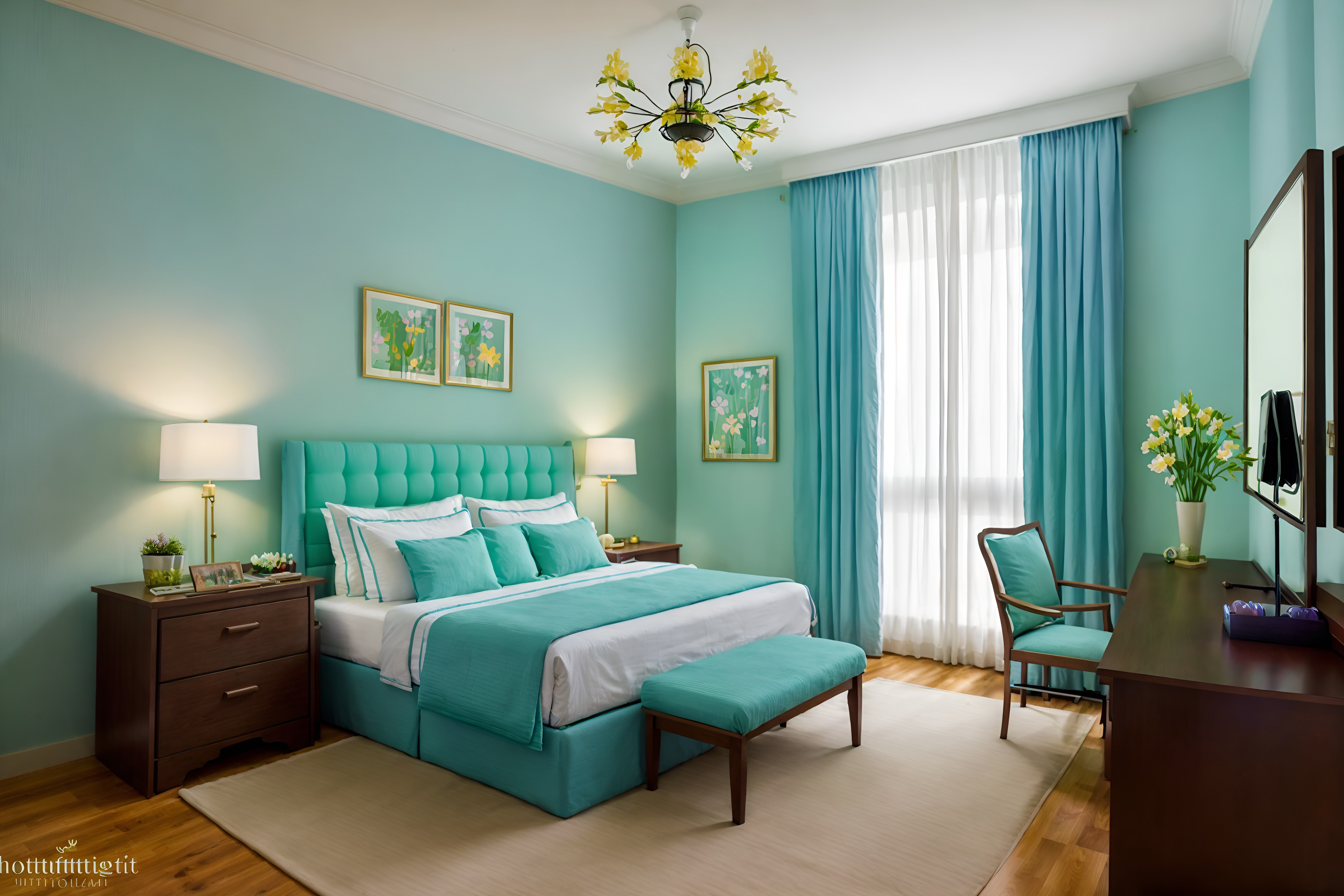 photo from pinterest of easter-style interior designed (hotel room interior) with hotel bathroom and dresser closet and bedside table or night stand and headboard and storage bench or ottoman and night light and working desk with desk chair and plant. . with easter decorations and light blue colors and colorful easter eggs and flowers on table and spring decorations and easter decorations. . cinematic photo, highly detailed, cinematic lighting, ultra-detailed, ultrarealistic, photorealism, 8k. trending on pinterest. easter interior design style. masterpiece, cinematic light, ultrarealistic+, photorealistic+, 8k, raw photo, realistic, sharp focus on eyes, (symmetrical eyes), (intact eyes), hyperrealistic, highest quality, best quality, , highly detailed, masterpiece, best quality, extremely detailed 8k wallpaper, masterpiece, best quality, ultra-detailed, best shadow, detailed background, detailed face, detailed eyes, high contrast, best illumination, detailed face, dulux, caustic, dynamic angle, detailed glow. dramatic lighting. highly detailed, insanely detailed hair, symmetrical, intricate details, professionally retouched, 8k high definition. strong bokeh. award winning photo.