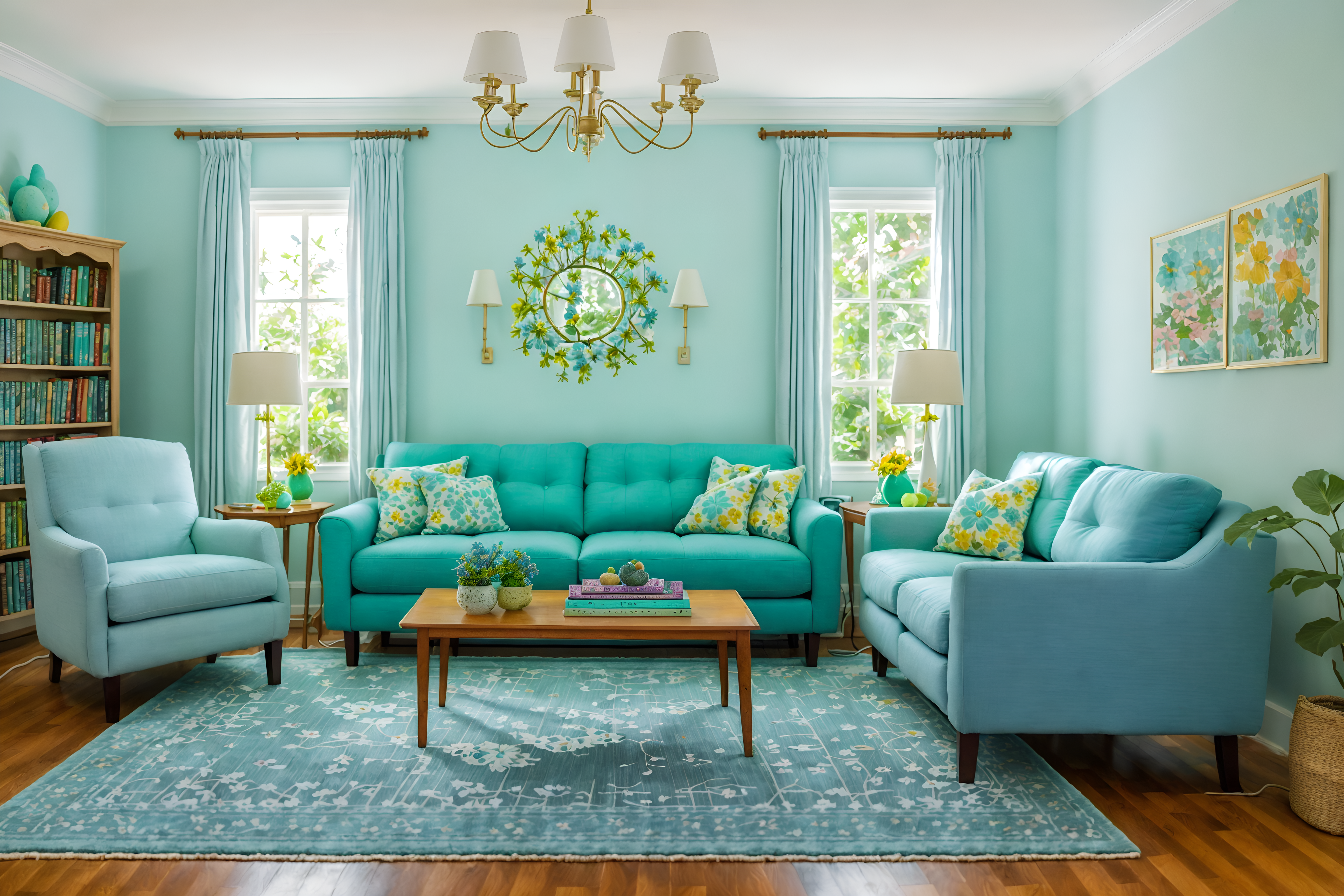 photo from pinterest of easter-style interior designed (living room interior) with rug and electric lamps and sofa and furniture and bookshelves and televisions and chairs and plant. . with light blue colors and flowers on table and spring decorations and easter decorations and colorful easter eggs and light blue colors. . cinematic photo, highly detailed, cinematic lighting, ultra-detailed, ultrarealistic, photorealism, 8k. trending on pinterest. easter interior design style. masterpiece, cinematic light, ultrarealistic+, photorealistic+, 8k, raw photo, realistic, sharp focus on eyes, (symmetrical eyes), (intact eyes), hyperrealistic, highest quality, best quality, , highly detailed, masterpiece, best quality, extremely detailed 8k wallpaper, masterpiece, best quality, ultra-detailed, best shadow, detailed background, detailed face, detailed eyes, high contrast, best illumination, detailed face, dulux, caustic, dynamic angle, detailed glow. dramatic lighting. highly detailed, insanely detailed hair, symmetrical, intricate details, professionally retouched, 8k high definition. strong bokeh. award winning photo.