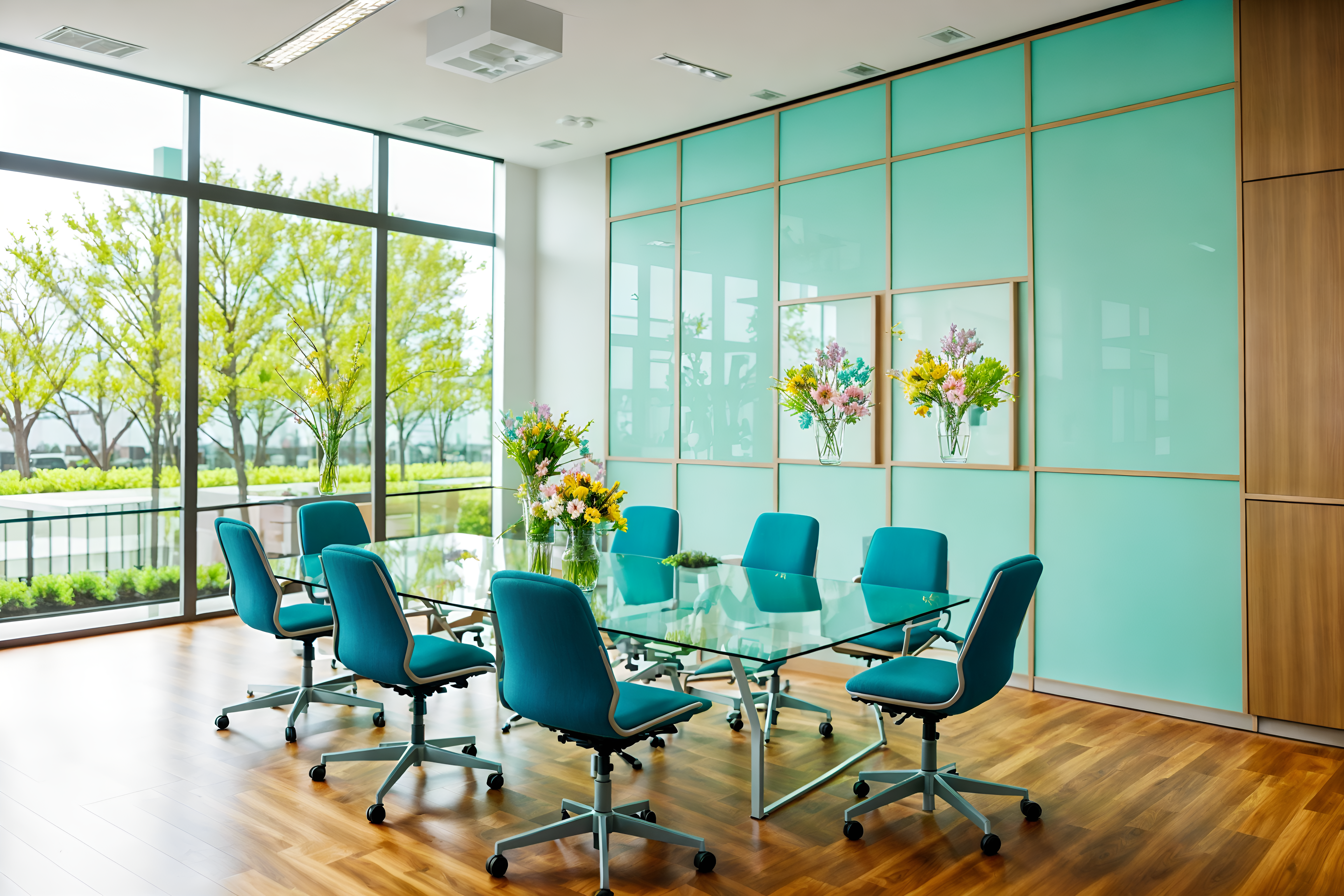 photo from pinterest of easter-style interior designed (meeting room interior) with cabinets and boardroom table and painting or photo on wall and office chairs and vase and plant and glass walls and glass doors. . with spring decorations and flowers on table and colorful easter eggs and easter decorations and light blue colors and spring decorations. . cinematic photo, highly detailed, cinematic lighting, ultra-detailed, ultrarealistic, photorealism, 8k. trending on pinterest. easter interior design style. masterpiece, cinematic light, ultrarealistic+, photorealistic+, 8k, raw photo, realistic, sharp focus on eyes, (symmetrical eyes), (intact eyes), hyperrealistic, highest quality, best quality, , highly detailed, masterpiece, best quality, extremely detailed 8k wallpaper, masterpiece, best quality, ultra-detailed, best shadow, detailed background, detailed face, detailed eyes, high contrast, best illumination, detailed face, dulux, caustic, dynamic angle, detailed glow. dramatic lighting. highly detailed, insanely detailed hair, symmetrical, intricate details, professionally retouched, 8k high definition. strong bokeh. award winning photo.