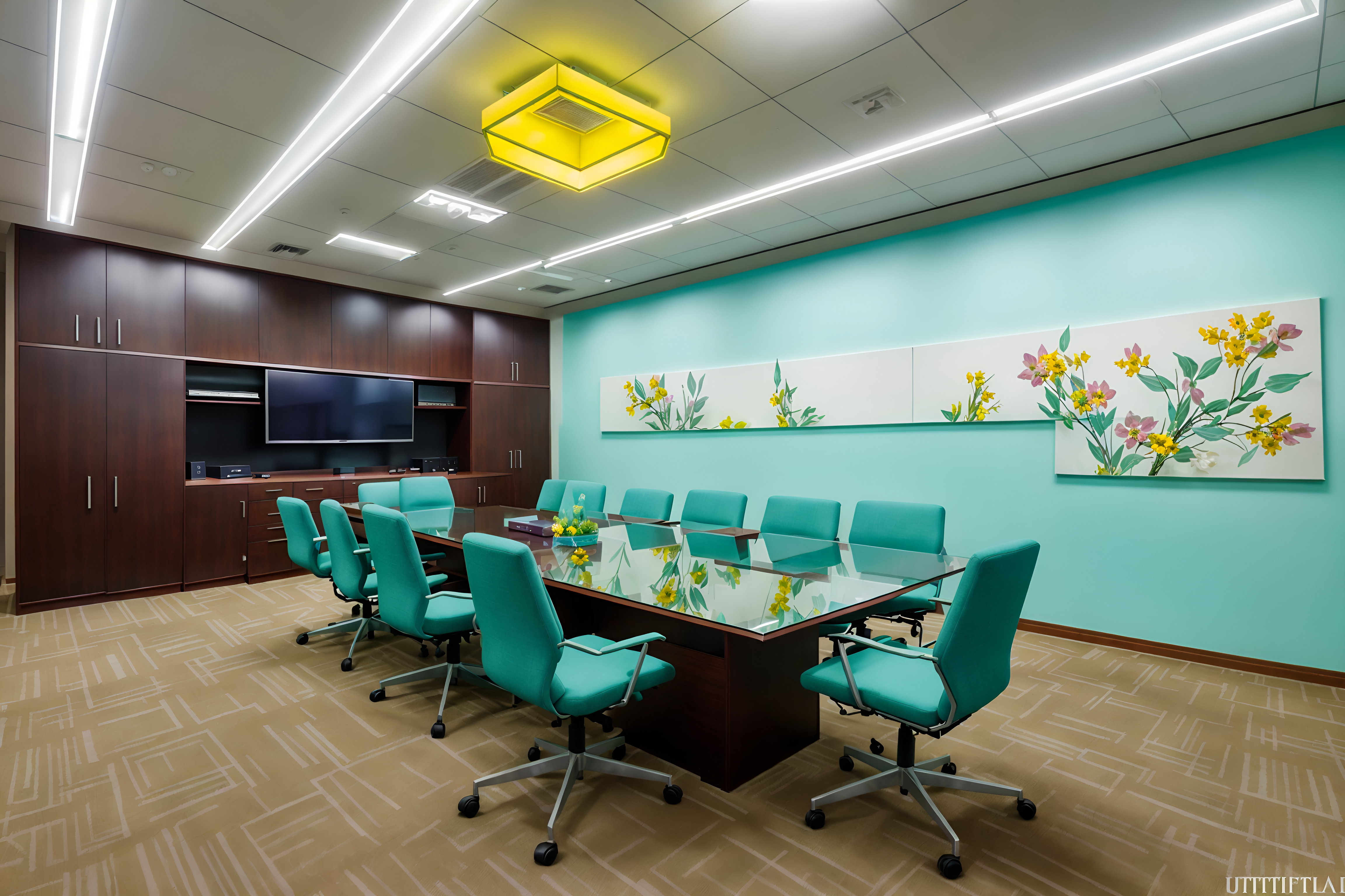 photo from pinterest of easter-style interior designed (meeting room interior) with cabinets and boardroom table and painting or photo on wall and office chairs and vase and plant and glass walls and glass doors. . with spring decorations and flowers on table and colorful easter eggs and easter decorations and light blue colors and spring decorations. . cinematic photo, highly detailed, cinematic lighting, ultra-detailed, ultrarealistic, photorealism, 8k. trending on pinterest. easter interior design style. masterpiece, cinematic light, ultrarealistic+, photorealistic+, 8k, raw photo, realistic, sharp focus on eyes, (symmetrical eyes), (intact eyes), hyperrealistic, highest quality, best quality, , highly detailed, masterpiece, best quality, extremely detailed 8k wallpaper, masterpiece, best quality, ultra-detailed, best shadow, detailed background, detailed face, detailed eyes, high contrast, best illumination, detailed face, dulux, caustic, dynamic angle, detailed glow. dramatic lighting. highly detailed, insanely detailed hair, symmetrical, intricate details, professionally retouched, 8k high definition. strong bokeh. award winning photo.
