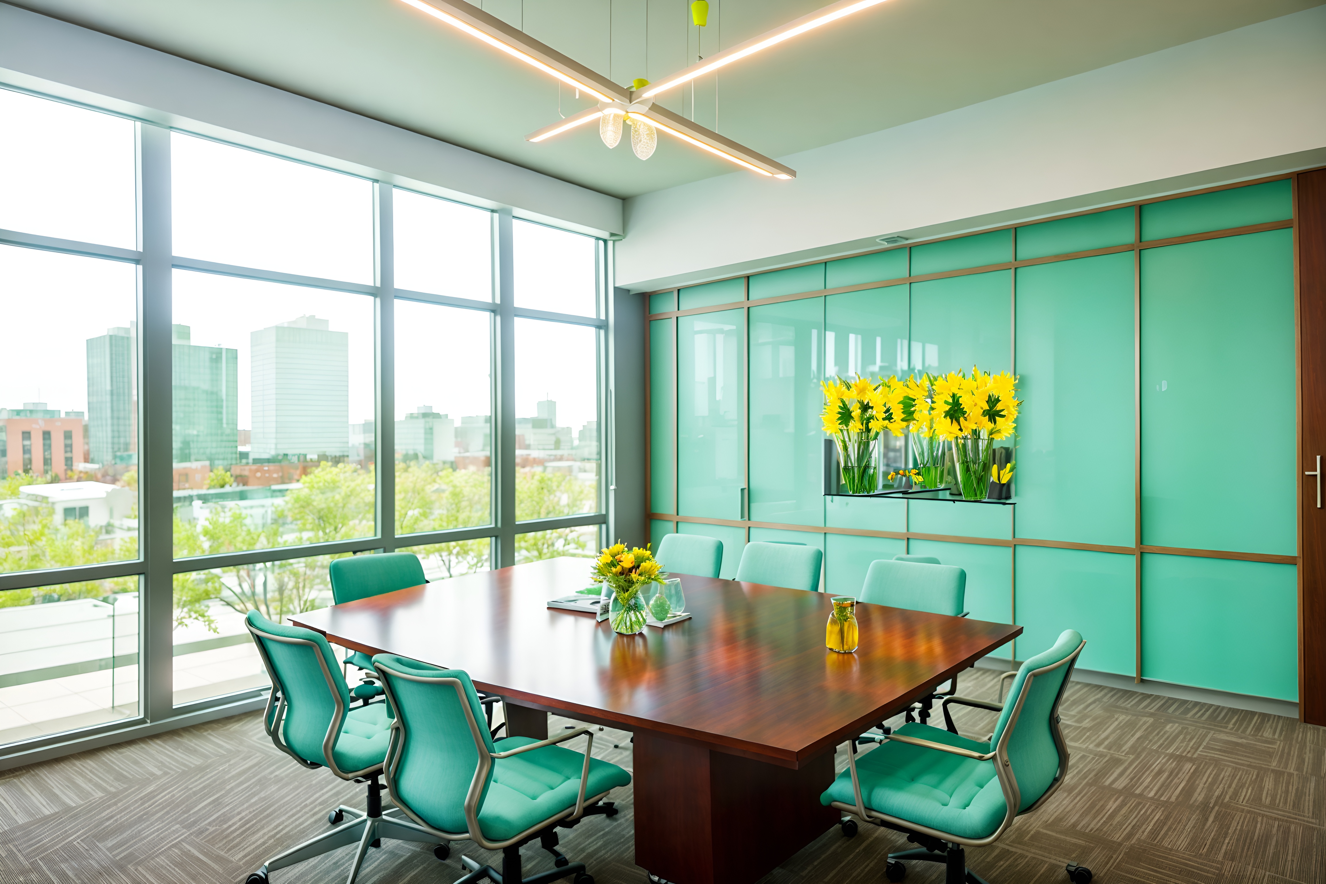 photo from pinterest of easter-style interior designed (meeting room interior) with cabinets and boardroom table and painting or photo on wall and office chairs and vase and plant and glass walls and glass doors. . with spring decorations and flowers on table and colorful easter eggs and easter decorations and light blue colors and spring decorations. . cinematic photo, highly detailed, cinematic lighting, ultra-detailed, ultrarealistic, photorealism, 8k. trending on pinterest. easter interior design style. masterpiece, cinematic light, ultrarealistic+, photorealistic+, 8k, raw photo, realistic, sharp focus on eyes, (symmetrical eyes), (intact eyes), hyperrealistic, highest quality, best quality, , highly detailed, masterpiece, best quality, extremely detailed 8k wallpaper, masterpiece, best quality, ultra-detailed, best shadow, detailed background, detailed face, detailed eyes, high contrast, best illumination, detailed face, dulux, caustic, dynamic angle, detailed glow. dramatic lighting. highly detailed, insanely detailed hair, symmetrical, intricate details, professionally retouched, 8k high definition. strong bokeh. award winning photo.