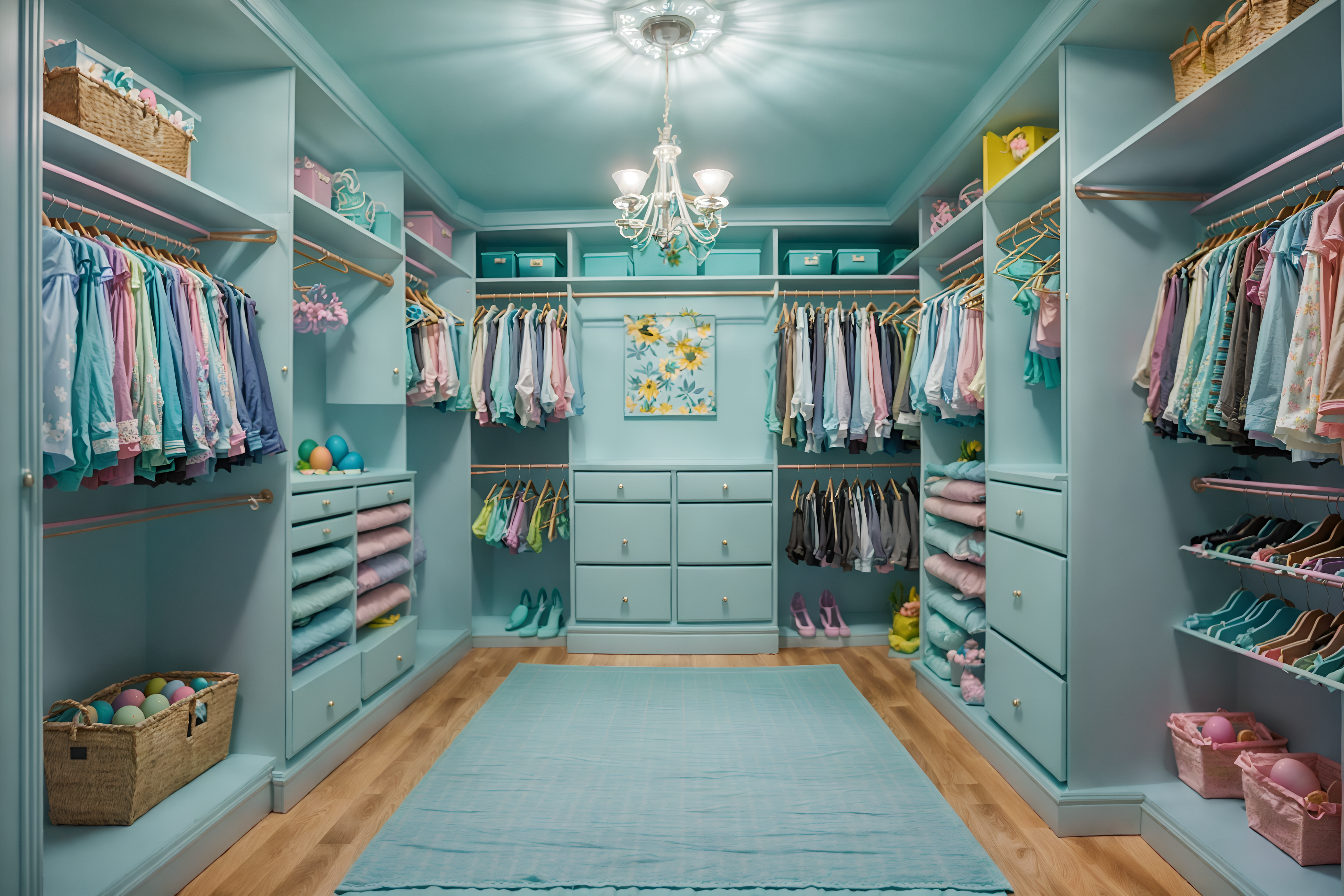 photo from pinterest of easter-style interior designed (walk in closet interior) . with light blue colors and easter decorations and colorful easter eggs and spring decorations and flowers on table and light blue colors. . cinematic photo, highly detailed, cinematic lighting, ultra-detailed, ultrarealistic, photorealism, 8k. trending on pinterest. easter interior design style. masterpiece, cinematic light, ultrarealistic+, photorealistic+, 8k, raw photo, realistic, sharp focus on eyes, (symmetrical eyes), (intact eyes), hyperrealistic, highest quality, best quality, , highly detailed, masterpiece, best quality, extremely detailed 8k wallpaper, masterpiece, best quality, ultra-detailed, best shadow, detailed background, detailed face, detailed eyes, high contrast, best illumination, detailed face, dulux, caustic, dynamic angle, detailed glow. dramatic lighting. highly detailed, insanely detailed hair, symmetrical, intricate details, professionally retouched, 8k high definition. strong bokeh. award winning photo.