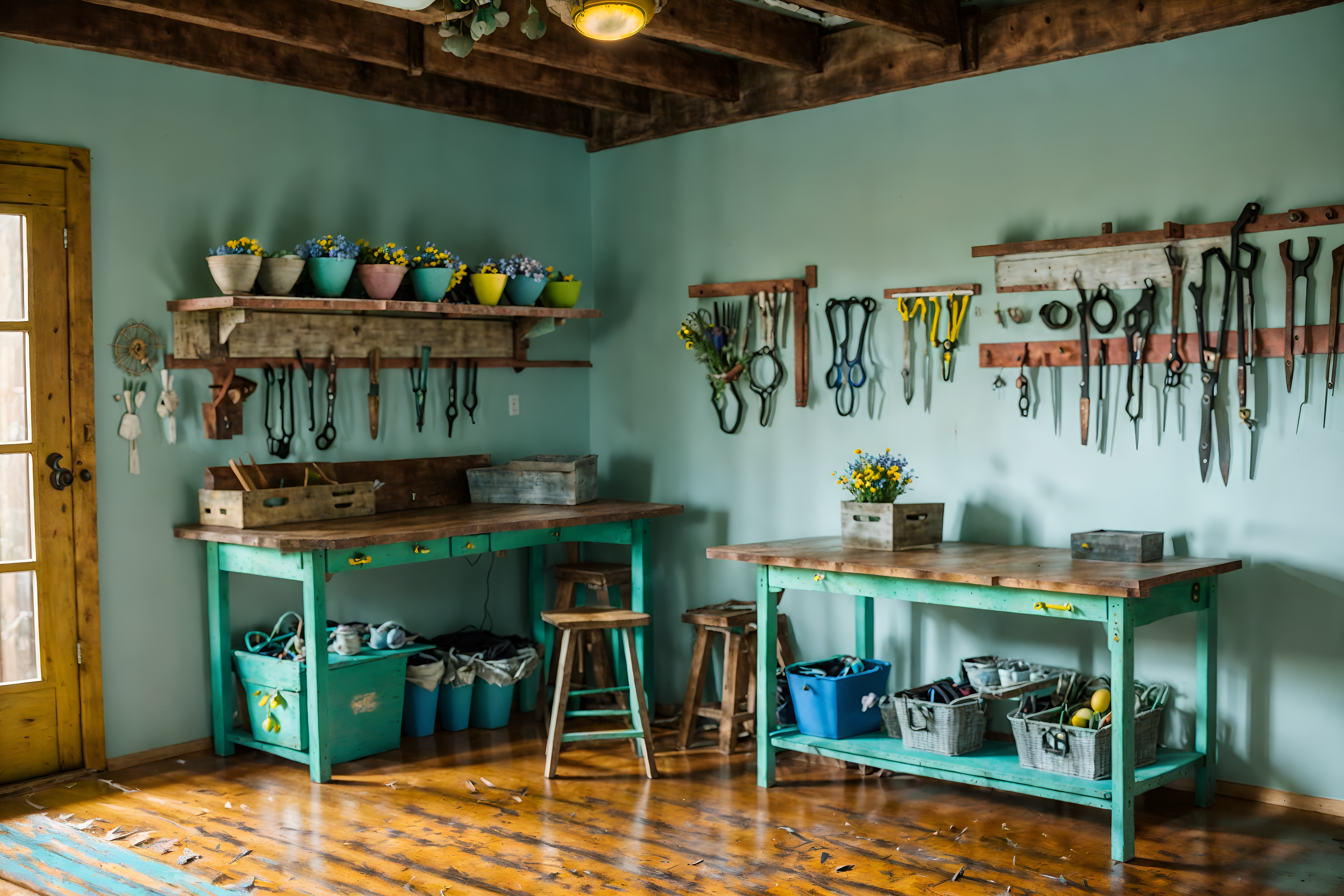 photo from pinterest of easter-style interior designed (workshop interior) with wooden workbench and tool wall and messy and wooden workbench. . with spring decorations and easter decorations and light blue colors and flowers on table and colorful easter eggs and spring decorations. . cinematic photo, highly detailed, cinematic lighting, ultra-detailed, ultrarealistic, photorealism, 8k. trending on pinterest. easter interior design style. masterpiece, cinematic light, ultrarealistic+, photorealistic+, 8k, raw photo, realistic, sharp focus on eyes, (symmetrical eyes), (intact eyes), hyperrealistic, highest quality, best quality, , highly detailed, masterpiece, best quality, extremely detailed 8k wallpaper, masterpiece, best quality, ultra-detailed, best shadow, detailed background, detailed face, detailed eyes, high contrast, best illumination, detailed face, dulux, caustic, dynamic angle, detailed glow. dramatic lighting. highly detailed, insanely detailed hair, symmetrical, intricate details, professionally retouched, 8k high definition. strong bokeh. award winning photo.