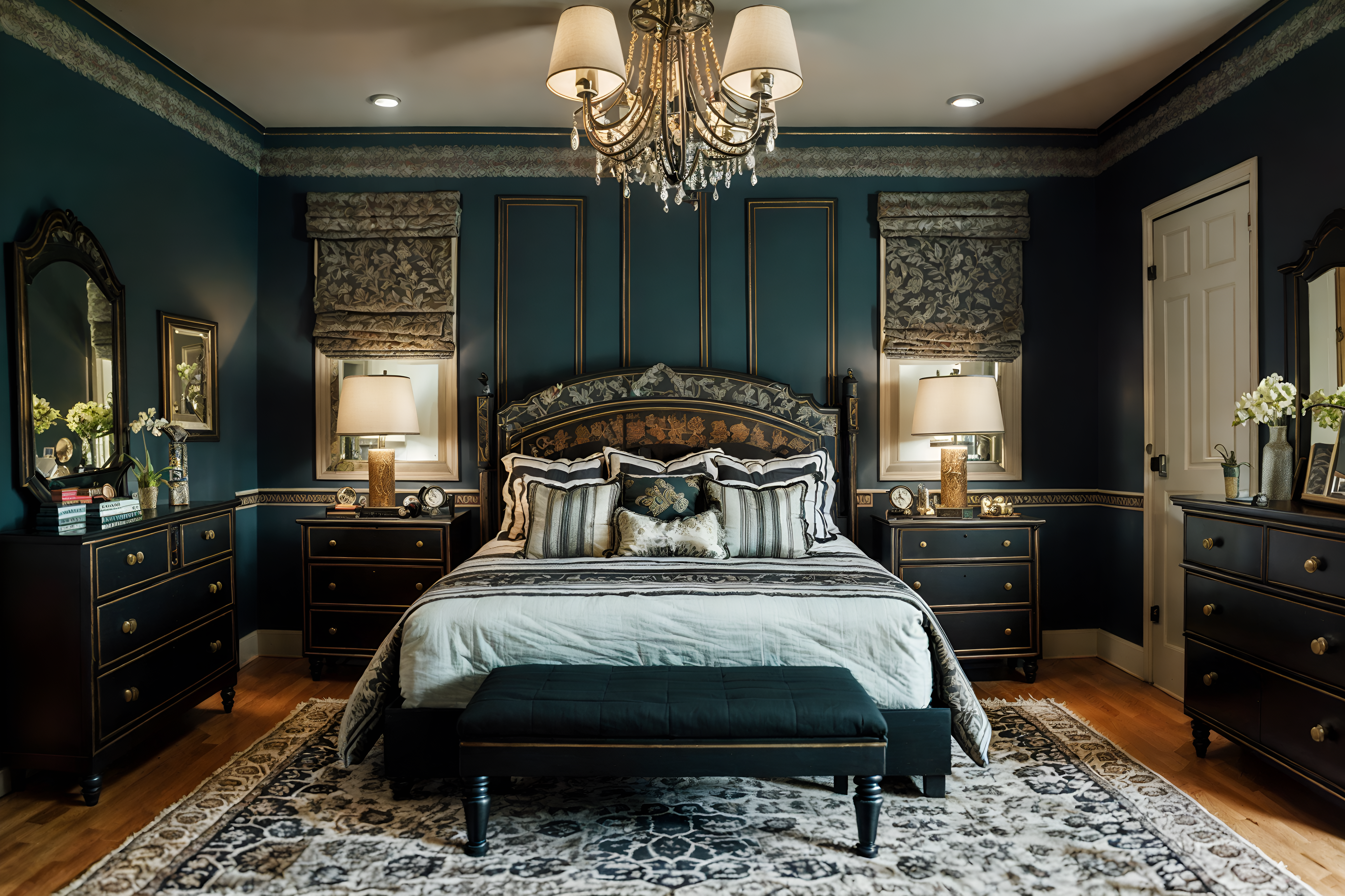 photo from pinterest of eclectic-style interior designed (bedroom interior) with dresser closet and bedside table or night stand and mirror and bed and headboard and accent chair and night light and storage bench or ottoman cinematic photo, highly detailed, cinematic lighting, ultra-detailed, ultrarealistic, photorealism, 8k. trending on pinterest. eclectic interior design style. masterpiece, cinematic light, ultrarealistic+, photorealistic+, 8k, raw photo, realistic, sharp focus on eyes, (symmetrical eyes), (intact eyes), hyperrealistic, highest quality, best quality, , highly detailed, masterpiece, best quality, extremely detailed 8k wallpaper, masterpiece, best quality, ultra-detailed, best shadow, detailed background, detailed face, detailed eyes, high contrast, best illumination, detailed face, dulux, caustic, dynamic angle, detailed glow. dramatic lighting. highly detailed, insanely detailed hair, symmetrical, intricate details, professionally retouched, 8k high definition. strong bokeh. award winning photo.
