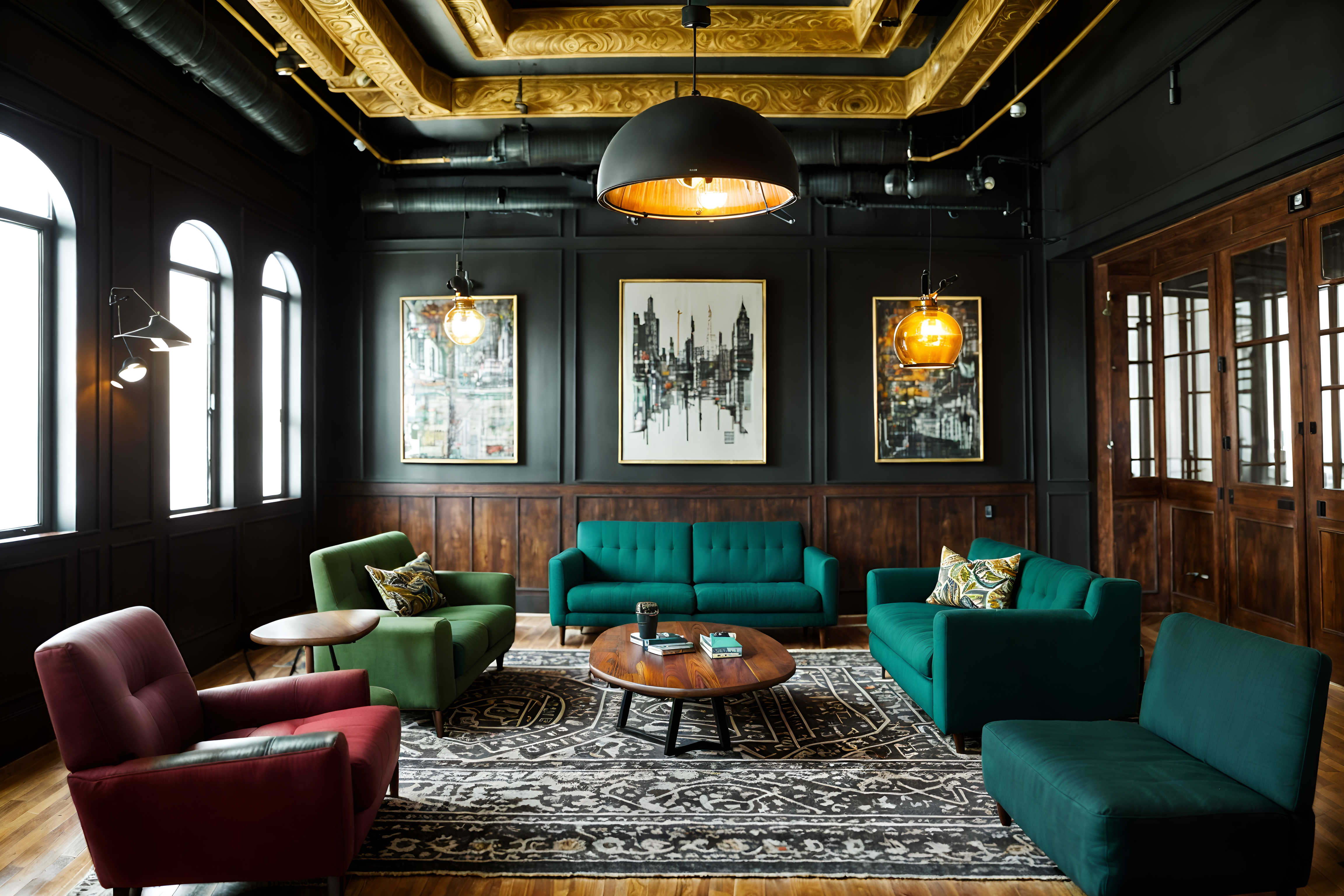 photo from pinterest of eclectic-style interior designed (coworking space interior) with seating area with sofa and office desks and office chairs and lounge chairs and seating area with sofa cinematic photo, highly detailed, cinematic lighting, ultra-detailed, ultrarealistic, photorealism, 8k. trending on pinterest. eclectic interior design style. masterpiece, cinematic light, ultrarealistic+, photorealistic+, 8k, raw photo, realistic, sharp focus on eyes, (symmetrical eyes), (intact eyes), hyperrealistic, highest quality, best quality, , highly detailed, masterpiece, best quality, extremely detailed 8k wallpaper, masterpiece, best quality, ultra-detailed, best shadow, detailed background, detailed face, detailed eyes, high contrast, best illumination, detailed face, dulux, caustic, dynamic angle, detailed glow. dramatic lighting. highly detailed, insanely detailed hair, symmetrical, intricate details, professionally retouched, 8k high definition. strong bokeh. award winning photo.