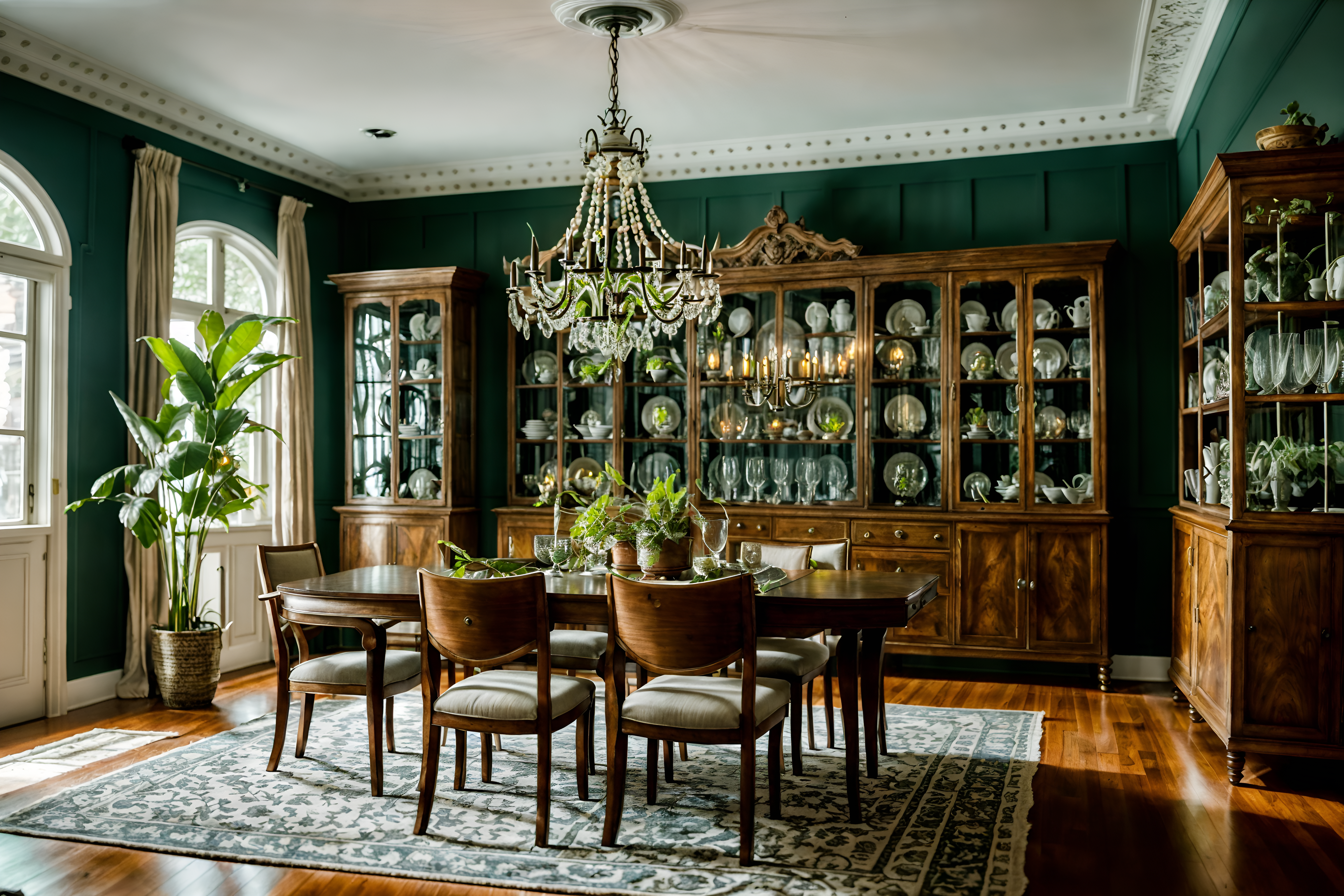 photo from pinterest of eclectic-style interior designed (dining room interior) with plant and light or chandelier and bookshelves and plates, cutlery and glasses on dining table and vase and dining table chairs and dining table and table cloth cinematic photo, highly detailed, cinematic lighting, ultra-detailed, ultrarealistic, photorealism, 8k. trending on pinterest. eclectic interior design style. masterpiece, cinematic light, ultrarealistic+, photorealistic+, 8k, raw photo, realistic, sharp focus on eyes, (symmetrical eyes), (intact eyes), hyperrealistic, highest quality, best quality, , highly detailed, masterpiece, best quality, extremely detailed 8k wallpaper, masterpiece, best quality, ultra-detailed, best shadow, detailed background, detailed face, detailed eyes, high contrast, best illumination, detailed face, dulux, caustic, dynamic angle, detailed glow. dramatic lighting. highly detailed, insanely detailed hair, symmetrical, intricate details, professionally retouched, 8k high definition. strong bokeh. award winning photo.