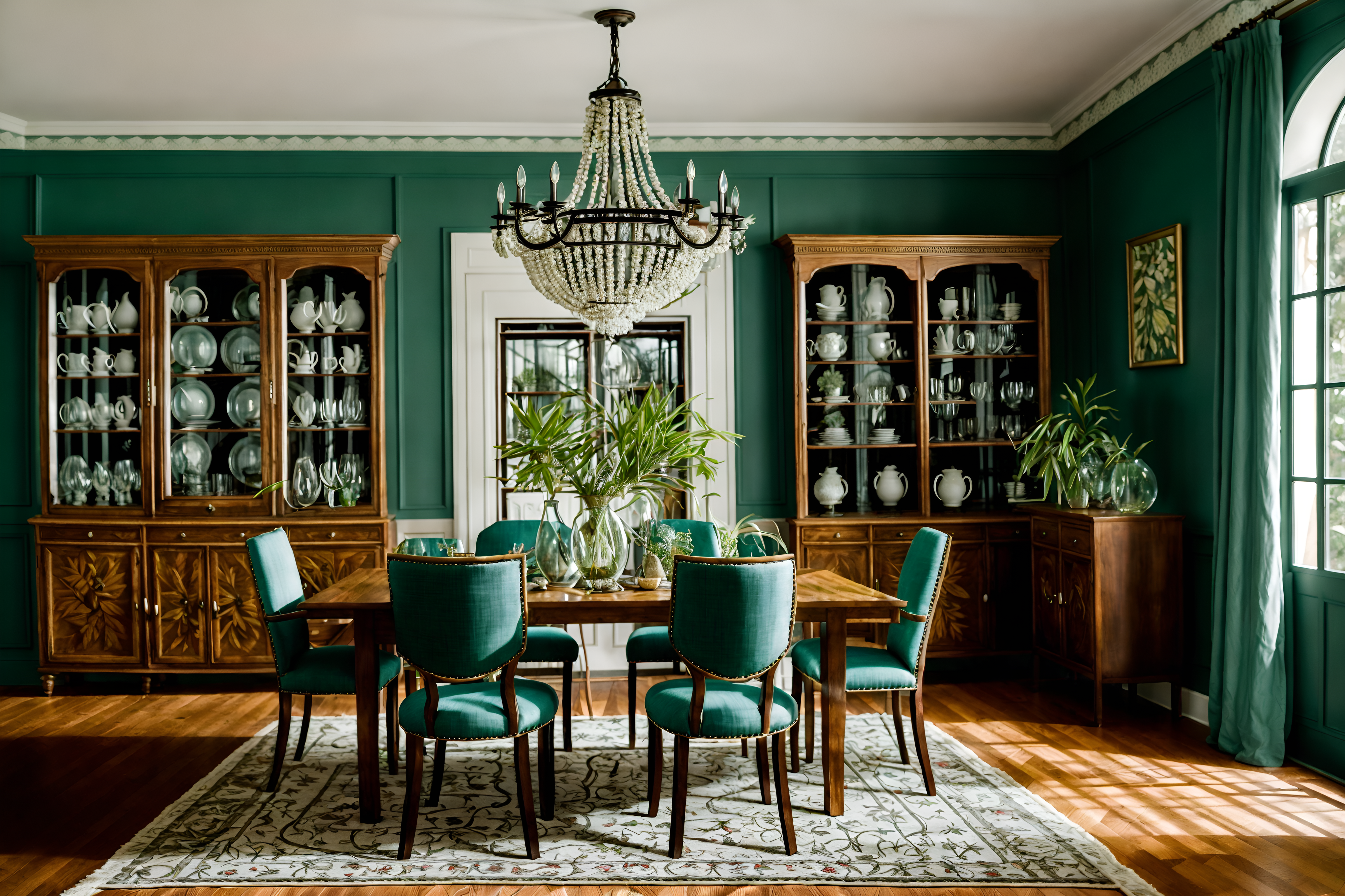 photo from pinterest of eclectic-style interior designed (dining room interior) with plant and light or chandelier and bookshelves and plates, cutlery and glasses on dining table and vase and dining table chairs and dining table and table cloth cinematic photo, highly detailed, cinematic lighting, ultra-detailed, ultrarealistic, photorealism, 8k. trending on pinterest. eclectic interior design style. masterpiece, cinematic light, ultrarealistic+, photorealistic+, 8k, raw photo, realistic, sharp focus on eyes, (symmetrical eyes), (intact eyes), hyperrealistic, highest quality, best quality, , highly detailed, masterpiece, best quality, extremely detailed 8k wallpaper, masterpiece, best quality, ultra-detailed, best shadow, detailed background, detailed face, detailed eyes, high contrast, best illumination, detailed face, dulux, caustic, dynamic angle, detailed glow. dramatic lighting. highly detailed, insanely detailed hair, symmetrical, intricate details, professionally retouched, 8k high definition. strong bokeh. award winning photo.