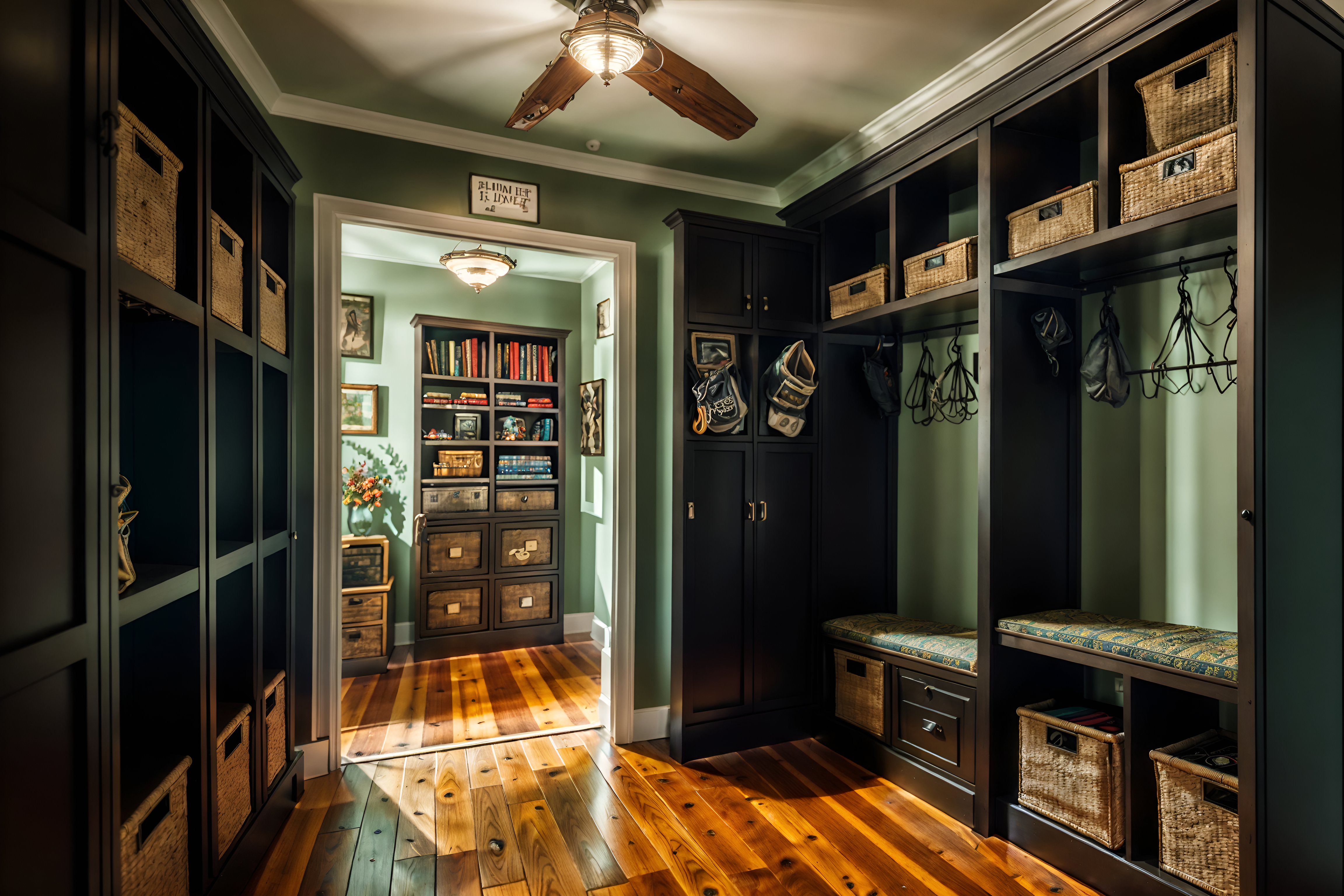 photo from pinterest of eclectic-style interior designed (drop zone interior) with lockers and a bench and high up storage and cabinets and shelves for shoes and cubbies and storage baskets and wall hooks for coats cinematic photo, highly detailed, cinematic lighting, ultra-detailed, ultrarealistic, photorealism, 8k. trending on pinterest. eclectic interior design style. masterpiece, cinematic light, ultrarealistic+, photorealistic+, 8k, raw photo, realistic, sharp focus on eyes, (symmetrical eyes), (intact eyes), hyperrealistic, highest quality, best quality, , highly detailed, masterpiece, best quality, extremely detailed 8k wallpaper, masterpiece, best quality, ultra-detailed, best shadow, detailed background, detailed face, detailed eyes, high contrast, best illumination, detailed face, dulux, caustic, dynamic angle, detailed glow. dramatic lighting. highly detailed, insanely detailed hair, symmetrical, intricate details, professionally retouched, 8k high definition. strong bokeh. award winning photo.