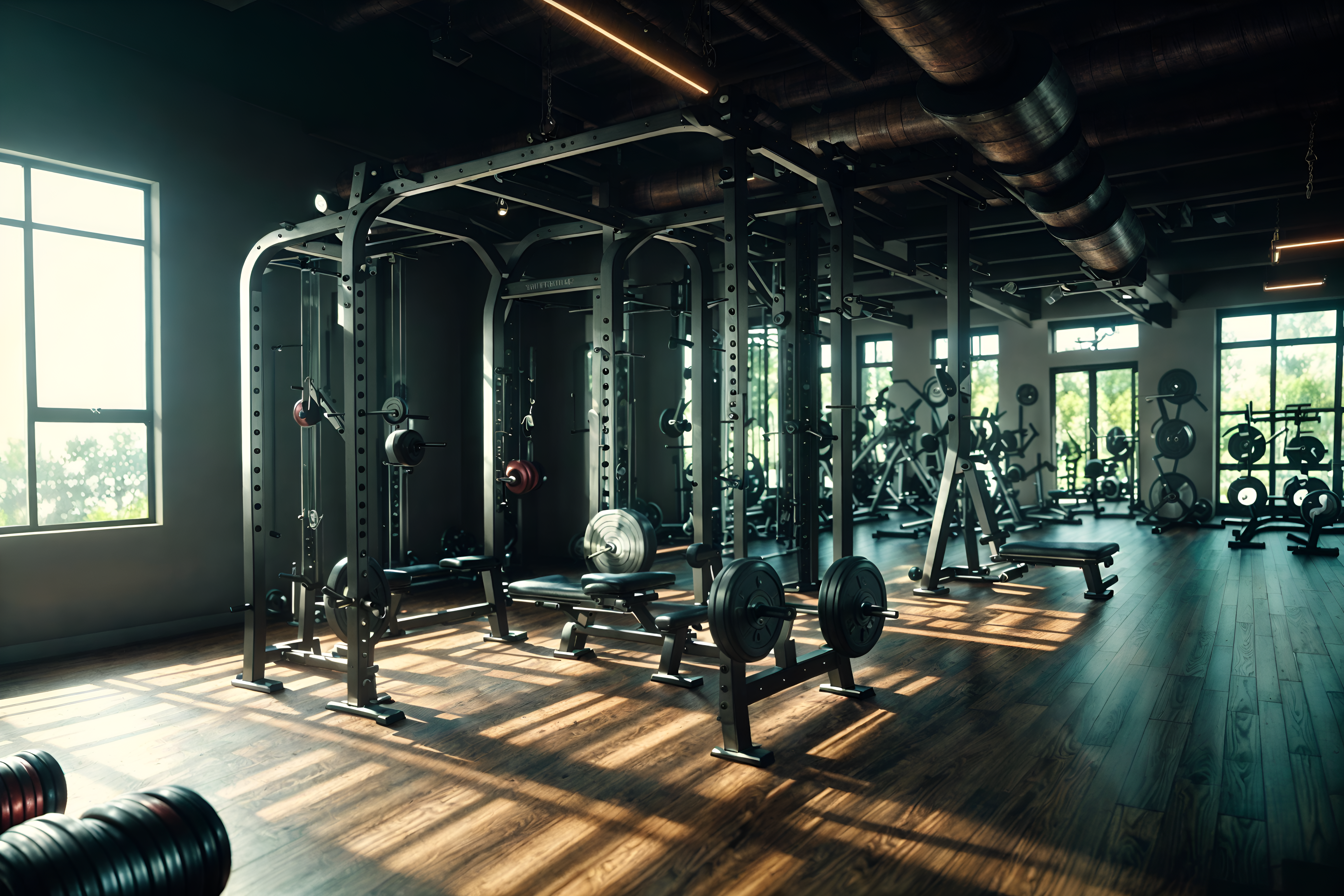 photo from pinterest of eclectic-style interior designed (fitness gym interior) with squat rack and crosstrainer and exercise bicycle and bench press and dumbbell stand and squat rack cinematic photo, highly detailed, cinematic lighting, ultra-detailed, ultrarealistic, photorealism, 8k. trending on pinterest. eclectic interior design style. masterpiece, cinematic light, ultrarealistic+, photorealistic+, 8k, raw photo, realistic, sharp focus on eyes, (symmetrical eyes), (intact eyes), hyperrealistic, highest quality, best quality, , highly detailed, masterpiece, best quality, extremely detailed 8k wallpaper, masterpiece, best quality, ultra-detailed, best shadow, detailed background, detailed face, detailed eyes, high contrast, best illumination, detailed face, dulux, caustic, dynamic angle, detailed glow. dramatic lighting. highly detailed, insanely detailed hair, symmetrical, intricate details, professionally retouched, 8k high definition. strong bokeh. award winning photo.