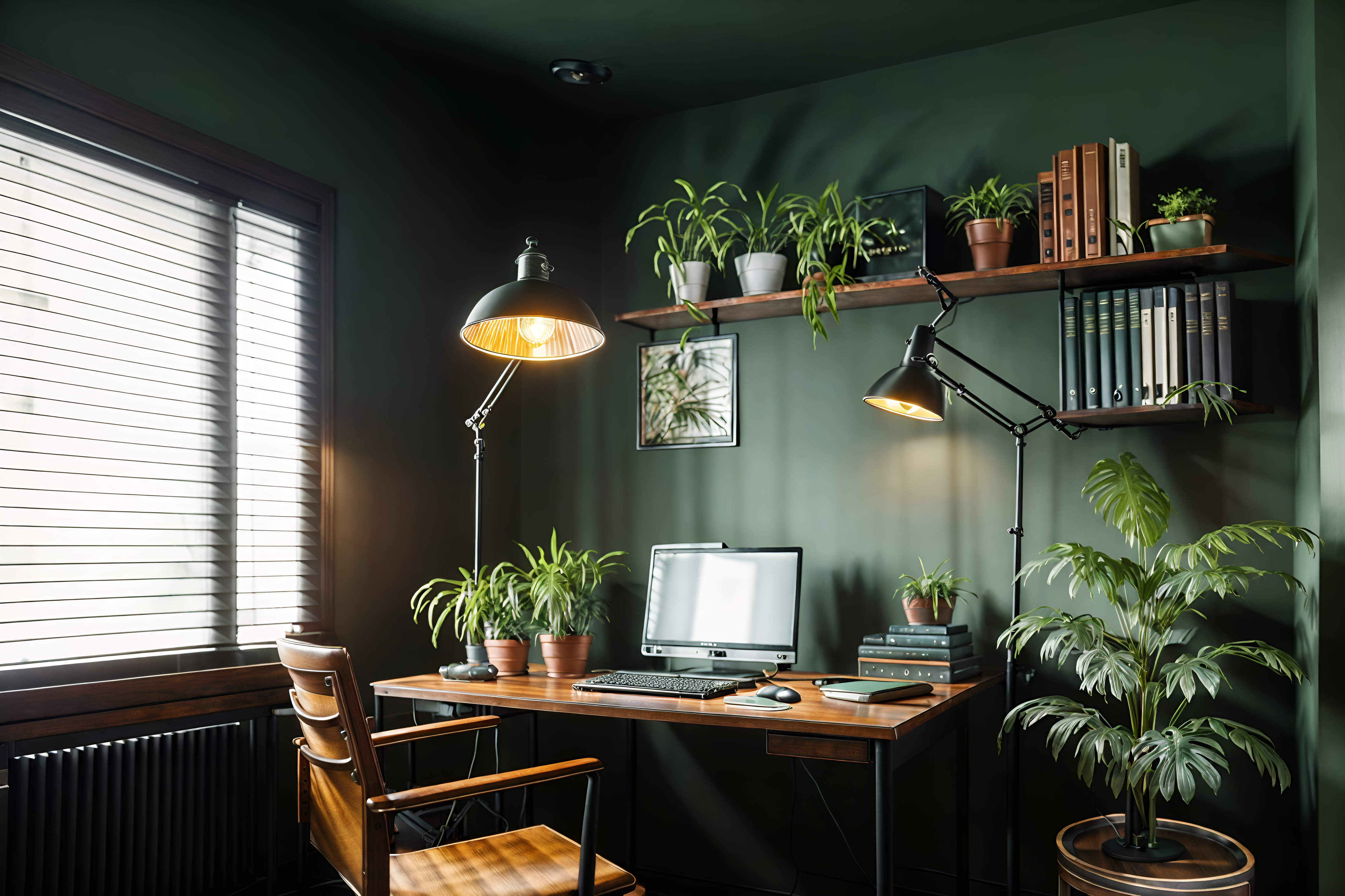 photo from pinterest of eclectic-style interior designed (home office interior) with plant and desk lamp and cabinets and computer desk and office chair and plant cinematic photo, highly detailed, cinematic lighting, ultra-detailed, ultrarealistic, photorealism, 8k. trending on pinterest. eclectic interior design style. masterpiece, cinematic light, ultrarealistic+, photorealistic+, 8k, raw photo, realistic, sharp focus on eyes, (symmetrical eyes), (intact eyes), hyperrealistic, highest quality, best quality, , highly detailed, masterpiece, best quality, extremely detailed 8k wallpaper, masterpiece, best quality, ultra-detailed, best shadow, detailed background, detailed face, detailed eyes, high contrast, best illumination, detailed face, dulux, caustic, dynamic angle, detailed glow. dramatic lighting. highly detailed, insanely detailed hair, symmetrical, intricate details, professionally retouched, 8k high definition. strong bokeh. award winning photo.