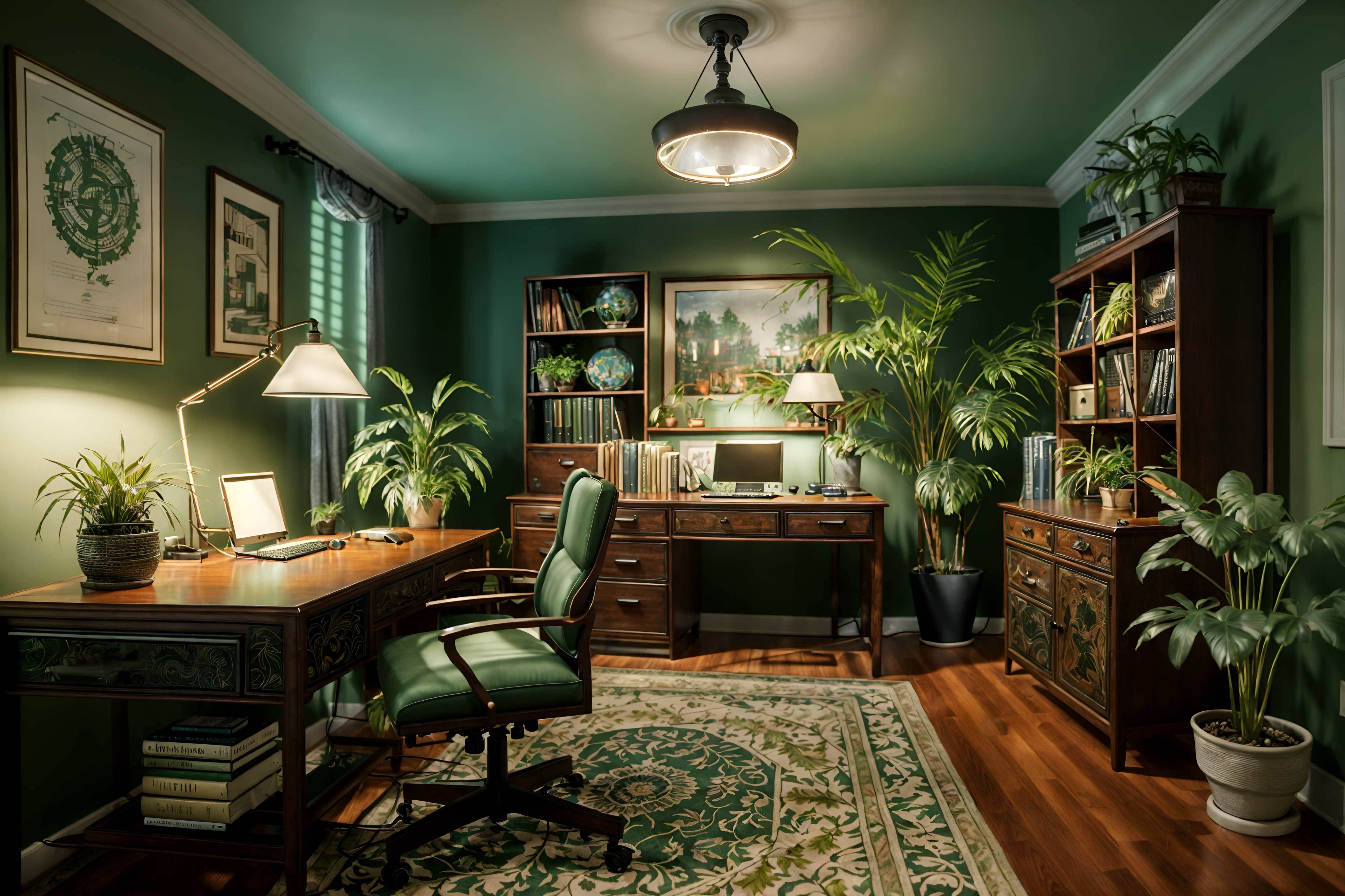 photo from pinterest of eclectic-style interior designed (home office interior) with plant and desk lamp and cabinets and computer desk and office chair and plant cinematic photo, highly detailed, cinematic lighting, ultra-detailed, ultrarealistic, photorealism, 8k. trending on pinterest. eclectic interior design style. masterpiece, cinematic light, ultrarealistic+, photorealistic+, 8k, raw photo, realistic, sharp focus on eyes, (symmetrical eyes), (intact eyes), hyperrealistic, highest quality, best quality, , highly detailed, masterpiece, best quality, extremely detailed 8k wallpaper, masterpiece, best quality, ultra-detailed, best shadow, detailed background, detailed face, detailed eyes, high contrast, best illumination, detailed face, dulux, caustic, dynamic angle, detailed glow. dramatic lighting. highly detailed, insanely detailed hair, symmetrical, intricate details, professionally retouched, 8k high definition. strong bokeh. award winning photo.