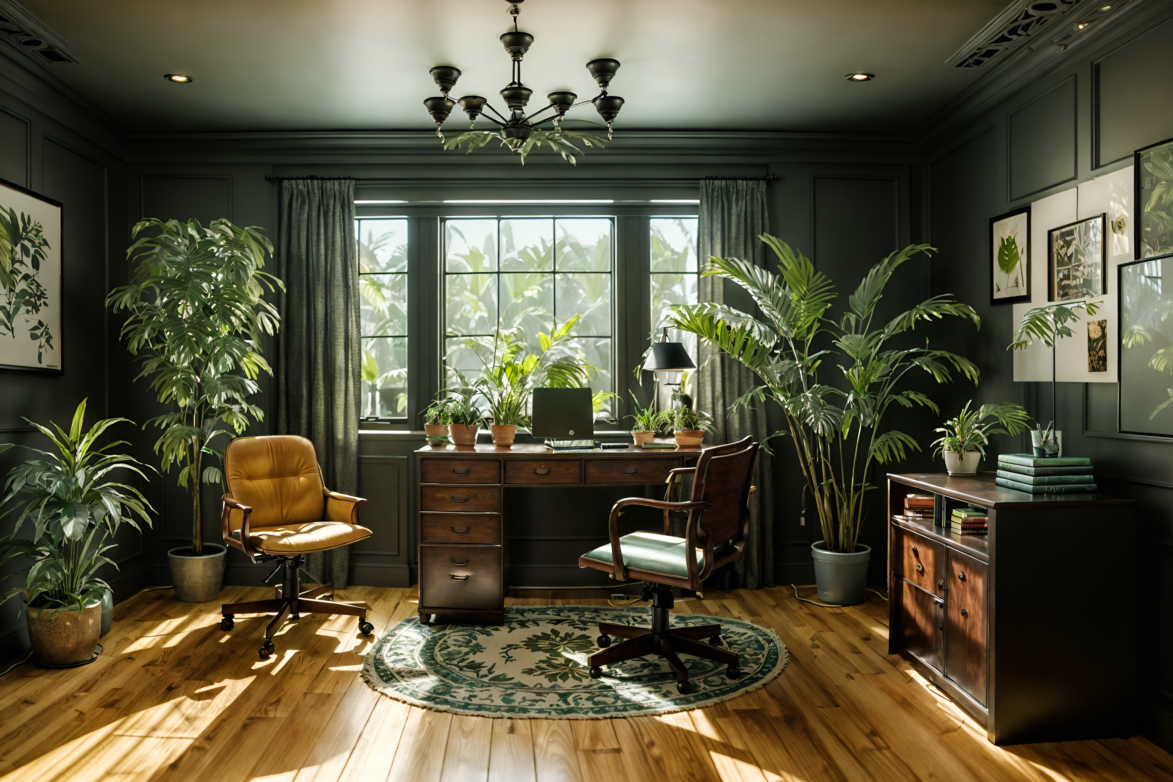 photo from pinterest of eclectic-style interior designed (home office interior) with plant and desk lamp and cabinets and computer desk and office chair and plant cinematic photo, highly detailed, cinematic lighting, ultra-detailed, ultrarealistic, photorealism, 8k. trending on pinterest. eclectic interior design style. masterpiece, cinematic light, ultrarealistic+, photorealistic+, 8k, raw photo, realistic, sharp focus on eyes, (symmetrical eyes), (intact eyes), hyperrealistic, highest quality, best quality, , highly detailed, masterpiece, best quality, extremely detailed 8k wallpaper, masterpiece, best quality, ultra-detailed, best shadow, detailed background, detailed face, detailed eyes, high contrast, best illumination, detailed face, dulux, caustic, dynamic angle, detailed glow. dramatic lighting. highly detailed, insanely detailed hair, symmetrical, intricate details, professionally retouched, 8k high definition. strong bokeh. award winning photo.