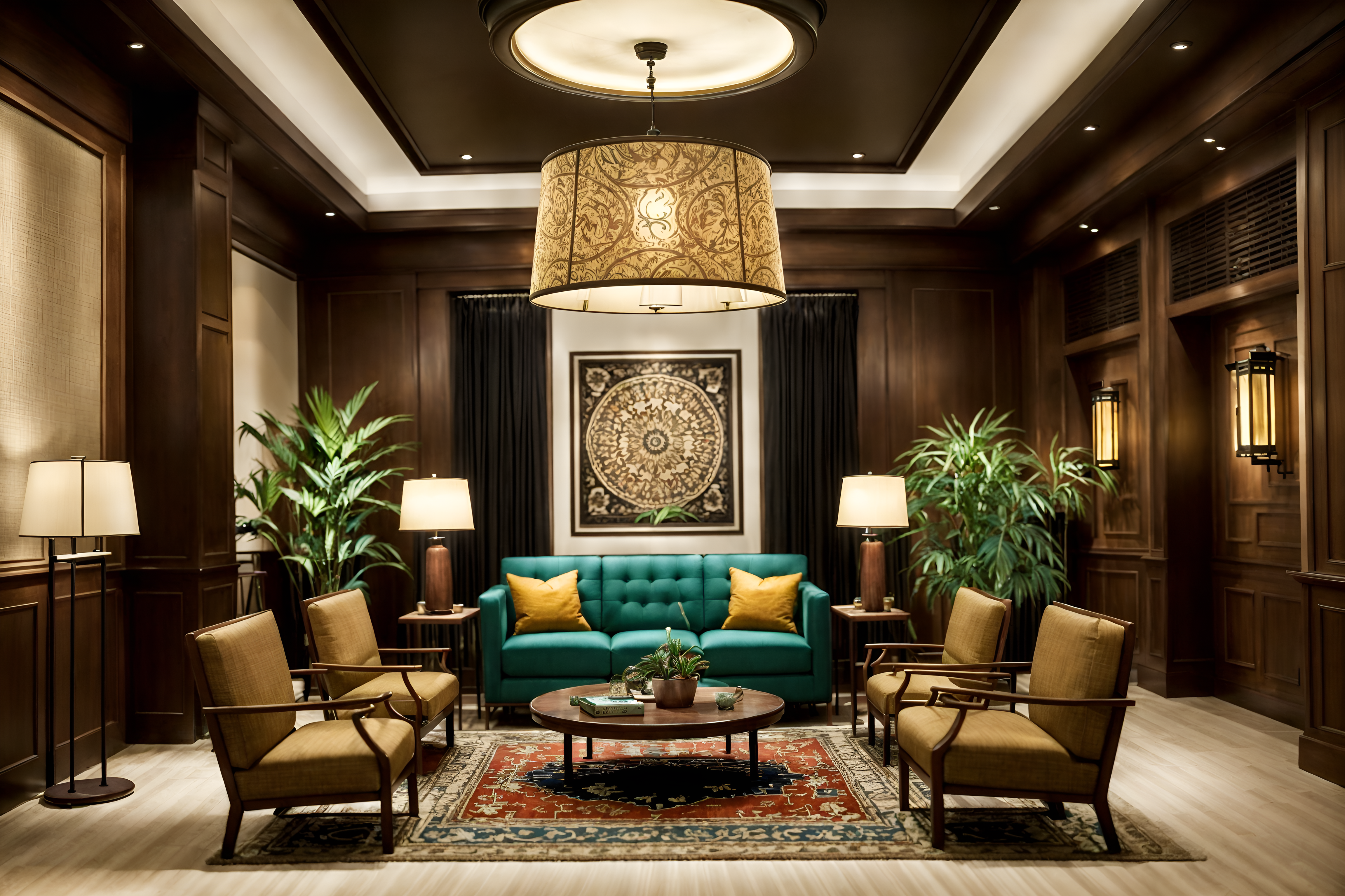 photo from pinterest of eclectic-style interior designed (hotel lobby interior) with lounge chairs and check in desk and furniture and sofas and hanging lamps and plant and coffee tables and rug cinematic photo, highly detailed, cinematic lighting, ultra-detailed, ultrarealistic, photorealism, 8k. trending on pinterest. eclectic interior design style. masterpiece, cinematic light, ultrarealistic+, photorealistic+, 8k, raw photo, realistic, sharp focus on eyes, (symmetrical eyes), (intact eyes), hyperrealistic, highest quality, best quality, , highly detailed, masterpiece, best quality, extremely detailed 8k wallpaper, masterpiece, best quality, ultra-detailed, best shadow, detailed background, detailed face, detailed eyes, high contrast, best illumination, detailed face, dulux, caustic, dynamic angle, detailed glow. dramatic lighting. highly detailed, insanely detailed hair, symmetrical, intricate details, professionally retouched, 8k high definition. strong bokeh. award winning photo.