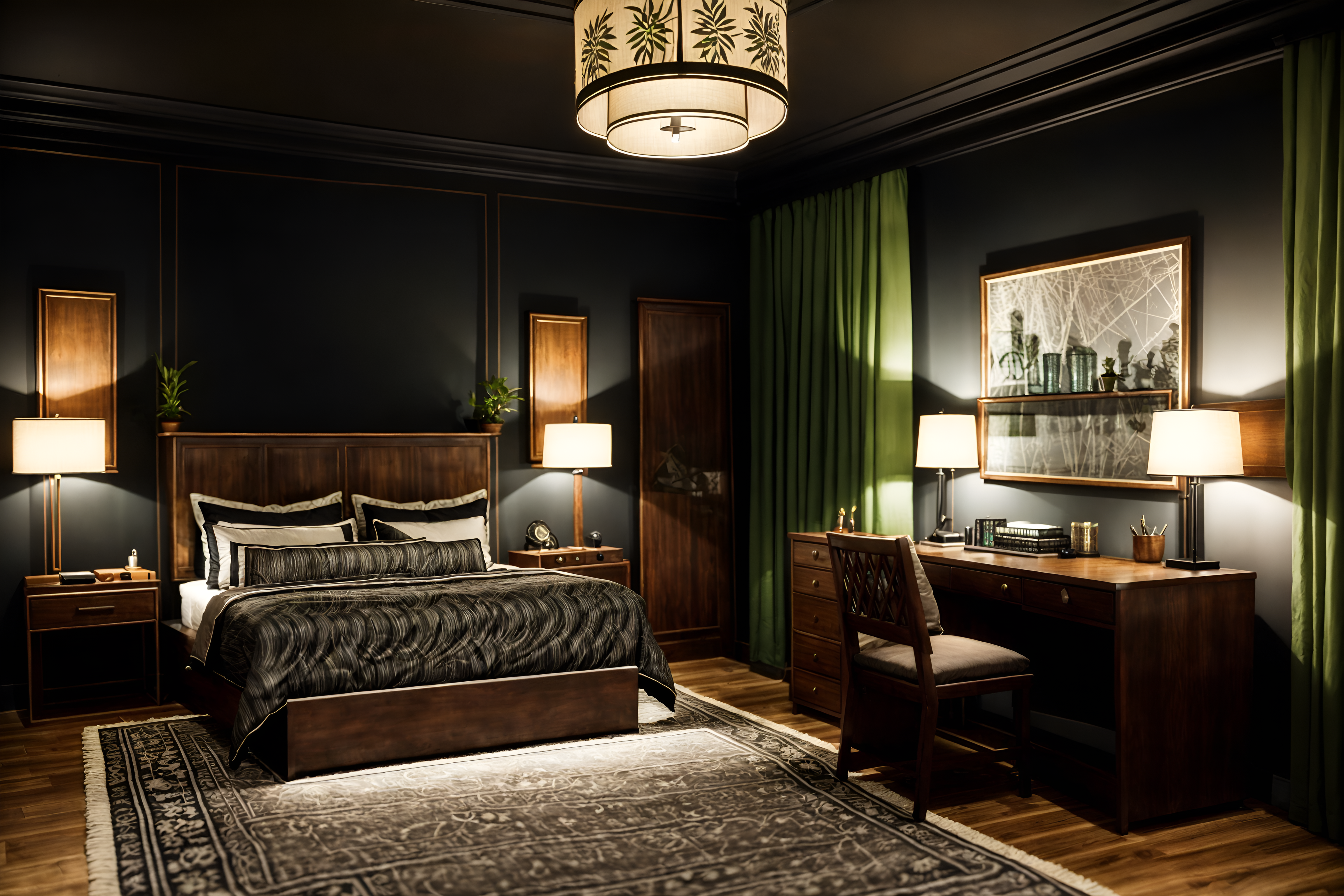 photo from pinterest of eclectic-style interior designed (hotel room interior) with bedside table or night stand and plant and bed and storage bench or ottoman and working desk with desk chair and night light and hotel bathroom and headboard cinematic photo, highly detailed, cinematic lighting, ultra-detailed, ultrarealistic, photorealism, 8k. trending on pinterest. eclectic interior design style. masterpiece, cinematic light, ultrarealistic+, photorealistic+, 8k, raw photo, realistic, sharp focus on eyes, (symmetrical eyes), (intact eyes), hyperrealistic, highest quality, best quality, , highly detailed, masterpiece, best quality, extremely detailed 8k wallpaper, masterpiece, best quality, ultra-detailed, best shadow, detailed background, detailed face, detailed eyes, high contrast, best illumination, detailed face, dulux, caustic, dynamic angle, detailed glow. dramatic lighting. highly detailed, insanely detailed hair, symmetrical, intricate details, professionally retouched, 8k high definition. strong bokeh. award winning photo.