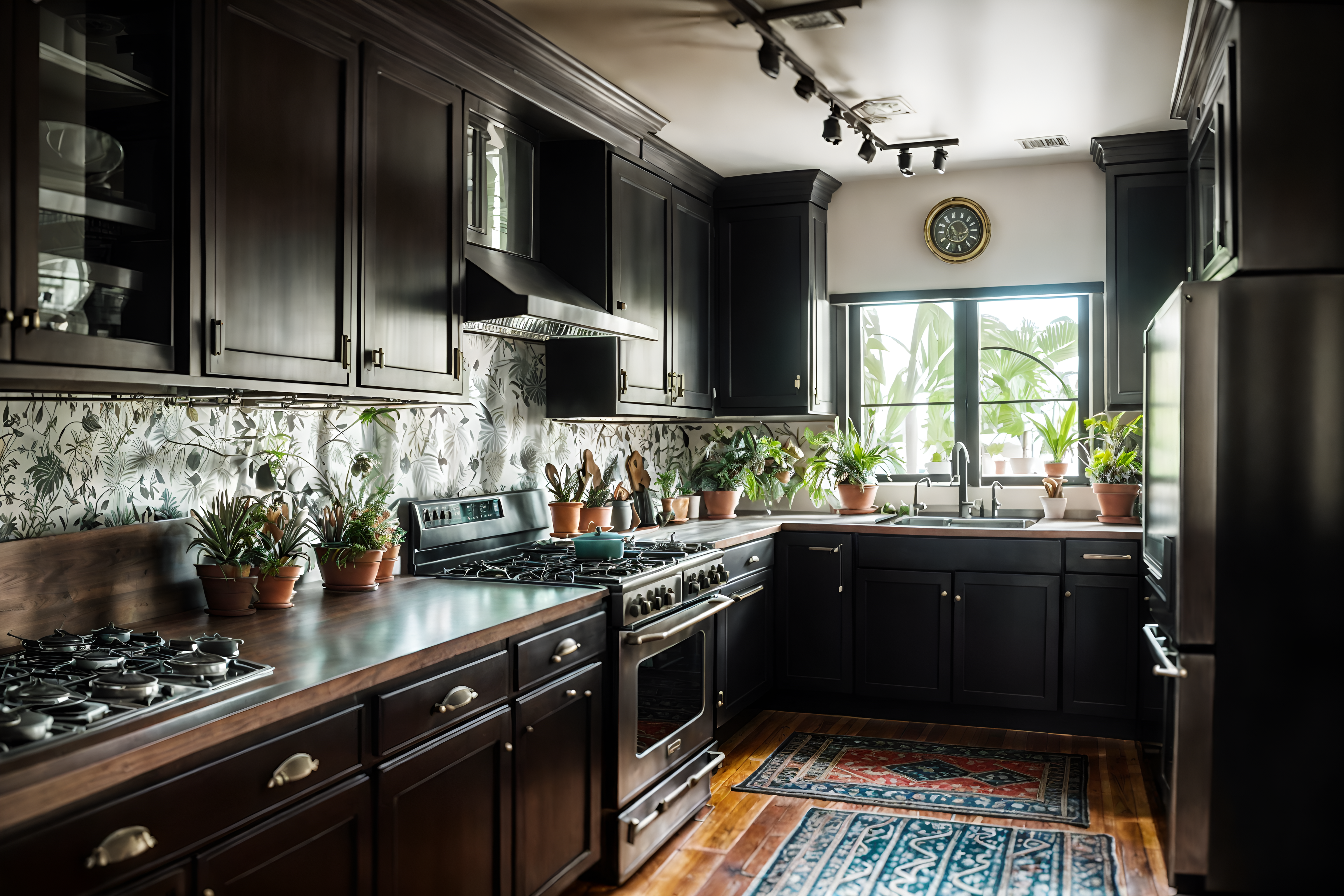 photo from pinterest of eclectic-style interior designed (kitchen interior) with refrigerator and sink and kitchen cabinets and stove and worktops and plant and refrigerator cinematic photo, highly detailed, cinematic lighting, ultra-detailed, ultrarealistic, photorealism, 8k. trending on pinterest. eclectic interior design style. masterpiece, cinematic light, ultrarealistic+, photorealistic+, 8k, raw photo, realistic, sharp focus on eyes, (symmetrical eyes), (intact eyes), hyperrealistic, highest quality, best quality, , highly detailed, masterpiece, best quality, extremely detailed 8k wallpaper, masterpiece, best quality, ultra-detailed, best shadow, detailed background, detailed face, detailed eyes, high contrast, best illumination, detailed face, dulux, caustic, dynamic angle, detailed glow. dramatic lighting. highly detailed, insanely detailed hair, symmetrical, intricate details, professionally retouched, 8k high definition. strong bokeh. award winning photo.
