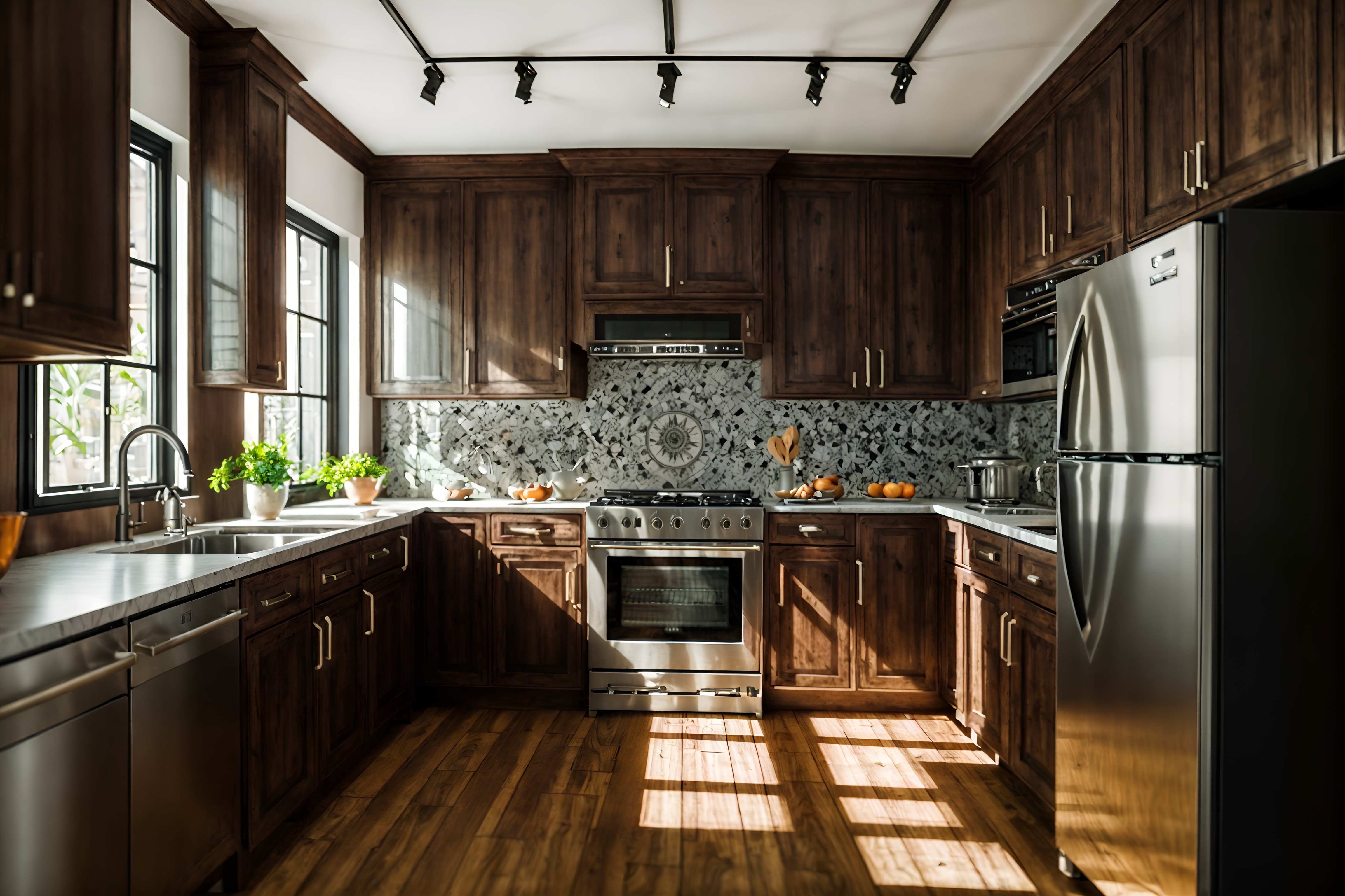photo from pinterest of eclectic-style interior designed (kitchen interior) with refrigerator and sink and kitchen cabinets and stove and worktops and plant and refrigerator cinematic photo, highly detailed, cinematic lighting, ultra-detailed, ultrarealistic, photorealism, 8k. trending on pinterest. eclectic interior design style. masterpiece, cinematic light, ultrarealistic+, photorealistic+, 8k, raw photo, realistic, sharp focus on eyes, (symmetrical eyes), (intact eyes), hyperrealistic, highest quality, best quality, , highly detailed, masterpiece, best quality, extremely detailed 8k wallpaper, masterpiece, best quality, ultra-detailed, best shadow, detailed background, detailed face, detailed eyes, high contrast, best illumination, detailed face, dulux, caustic, dynamic angle, detailed glow. dramatic lighting. highly detailed, insanely detailed hair, symmetrical, intricate details, professionally retouched, 8k high definition. strong bokeh. award winning photo.