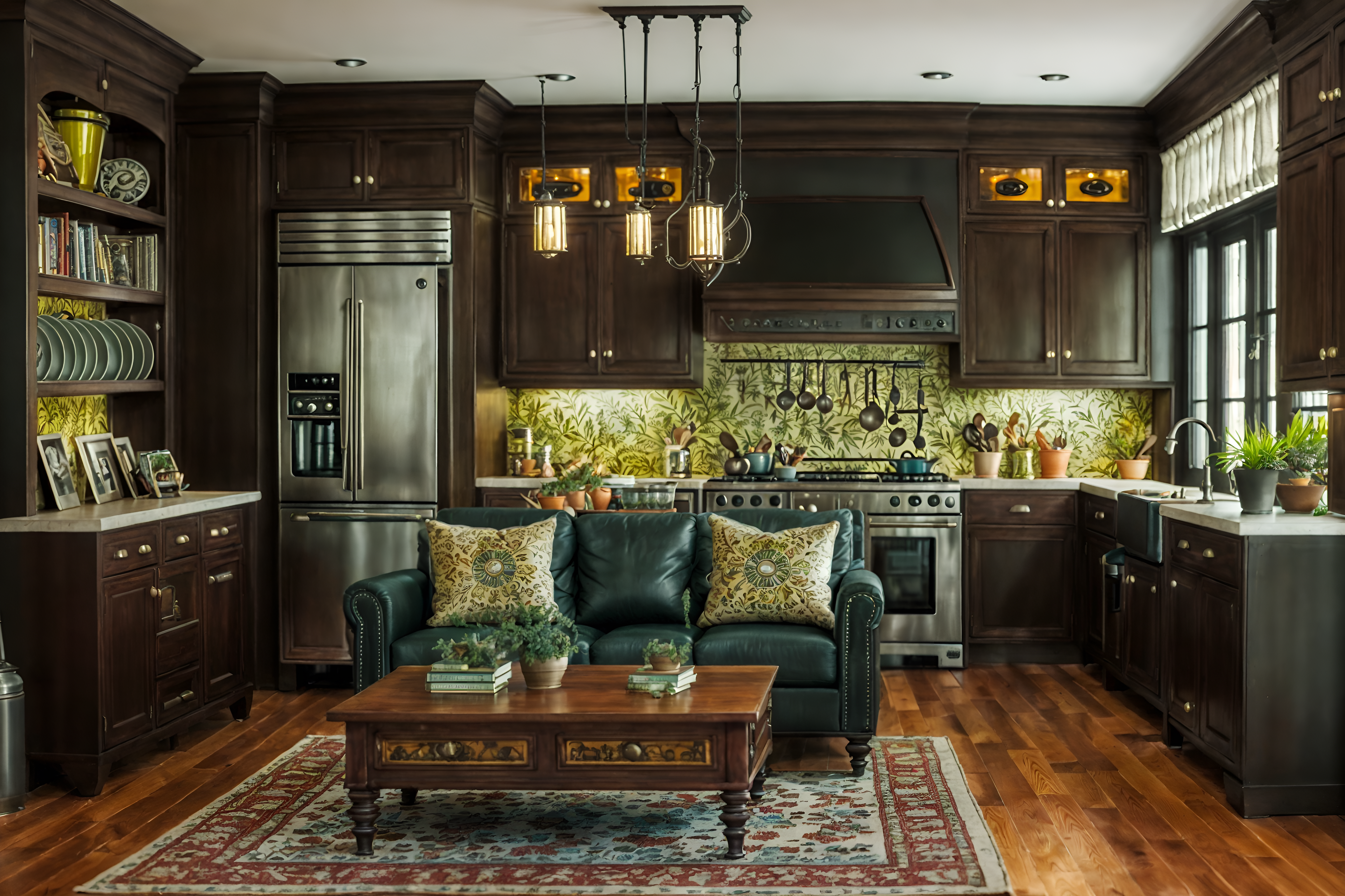 photo from pinterest of eclectic-style interior designed (kitchen living combo interior) with televisions and coffee tables and bookshelves and kitchen cabinets and worktops and furniture and plant and sink cinematic photo, highly detailed, cinematic lighting, ultra-detailed, ultrarealistic, photorealism, 8k. trending on pinterest. eclectic interior design style. masterpiece, cinematic light, ultrarealistic+, photorealistic+, 8k, raw photo, realistic, sharp focus on eyes, (symmetrical eyes), (intact eyes), hyperrealistic, highest quality, best quality, , highly detailed, masterpiece, best quality, extremely detailed 8k wallpaper, masterpiece, best quality, ultra-detailed, best shadow, detailed background, detailed face, detailed eyes, high contrast, best illumination, detailed face, dulux, caustic, dynamic angle, detailed glow. dramatic lighting. highly detailed, insanely detailed hair, symmetrical, intricate details, professionally retouched, 8k high definition. strong bokeh. award winning photo.