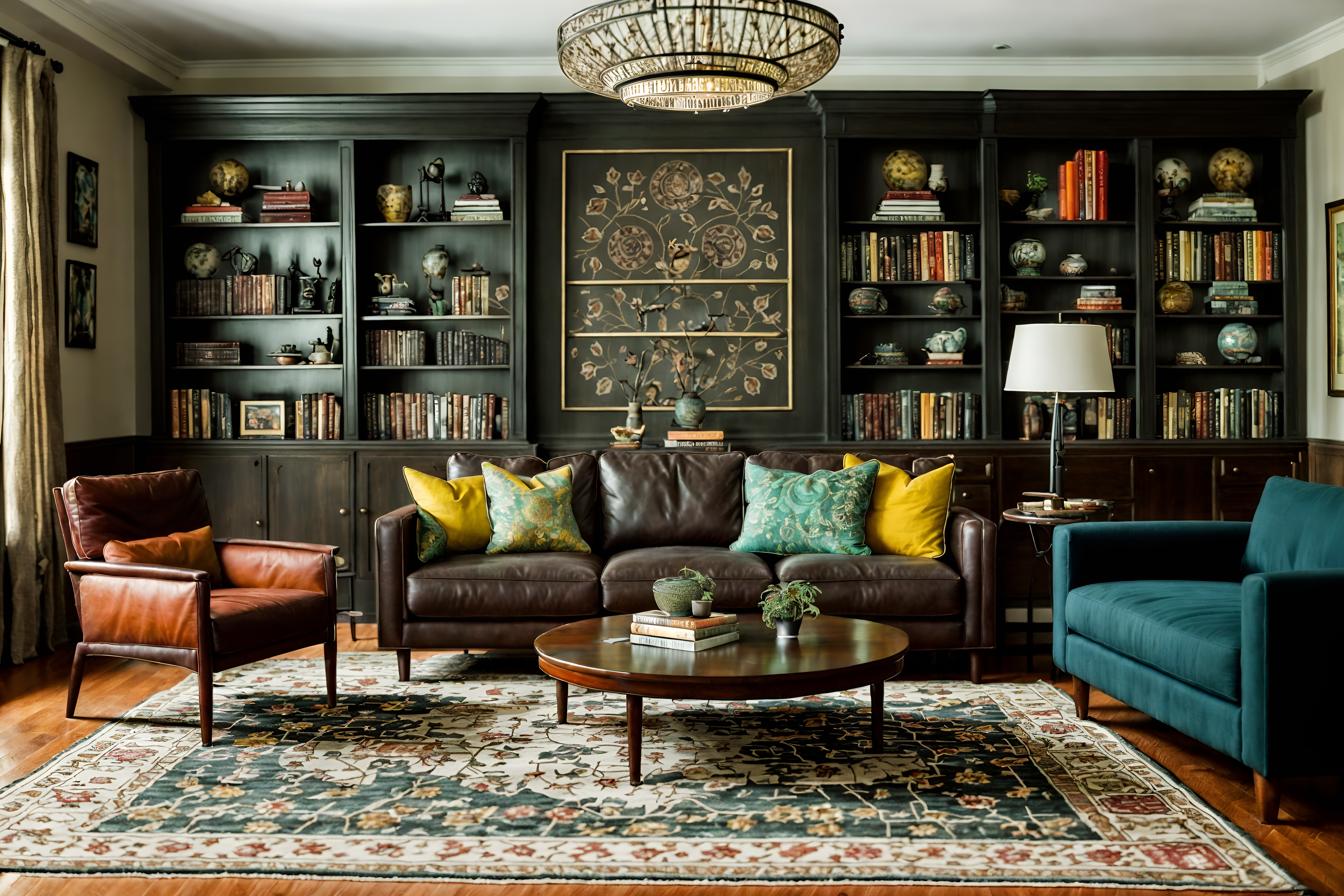 photo from pinterest of eclectic-style interior designed (living room interior) with furniture and occasional tables and plant and bookshelves and sofa and chairs and coffee tables and rug cinematic photo, highly detailed, cinematic lighting, ultra-detailed, ultrarealistic, photorealism, 8k. trending on pinterest. eclectic interior design style. masterpiece, cinematic light, ultrarealistic+, photorealistic+, 8k, raw photo, realistic, sharp focus on eyes, (symmetrical eyes), (intact eyes), hyperrealistic, highest quality, best quality, , highly detailed, masterpiece, best quality, extremely detailed 8k wallpaper, masterpiece, best quality, ultra-detailed, best shadow, detailed background, detailed face, detailed eyes, high contrast, best illumination, detailed face, dulux, caustic, dynamic angle, detailed glow. dramatic lighting. highly detailed, insanely detailed hair, symmetrical, intricate details, professionally retouched, 8k high definition. strong bokeh. award winning photo.