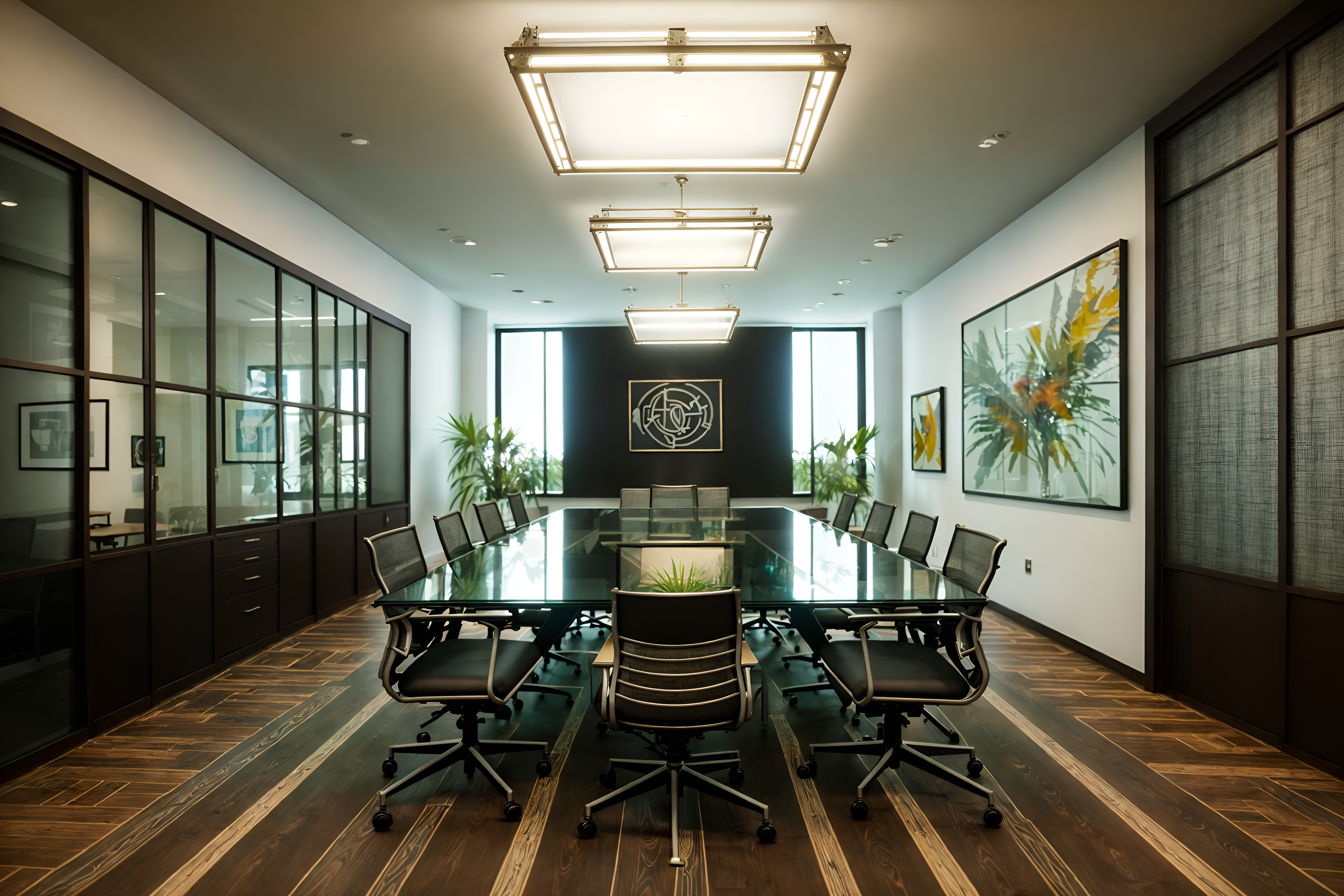 photo from pinterest of eclectic-style interior designed (meeting room interior) with office chairs and painting or photo on wall and vase and glass doors and glass walls and boardroom table and plant and cabinets cinematic photo, highly detailed, cinematic lighting, ultra-detailed, ultrarealistic, photorealism, 8k. trending on pinterest. eclectic interior design style. masterpiece, cinematic light, ultrarealistic+, photorealistic+, 8k, raw photo, realistic, sharp focus on eyes, (symmetrical eyes), (intact eyes), hyperrealistic, highest quality, best quality, , highly detailed, masterpiece, best quality, extremely detailed 8k wallpaper, masterpiece, best quality, ultra-detailed, best shadow, detailed background, detailed face, detailed eyes, high contrast, best illumination, detailed face, dulux, caustic, dynamic angle, detailed glow. dramatic lighting. highly detailed, insanely detailed hair, symmetrical, intricate details, professionally retouched, 8k high definition. strong bokeh. award winning photo.