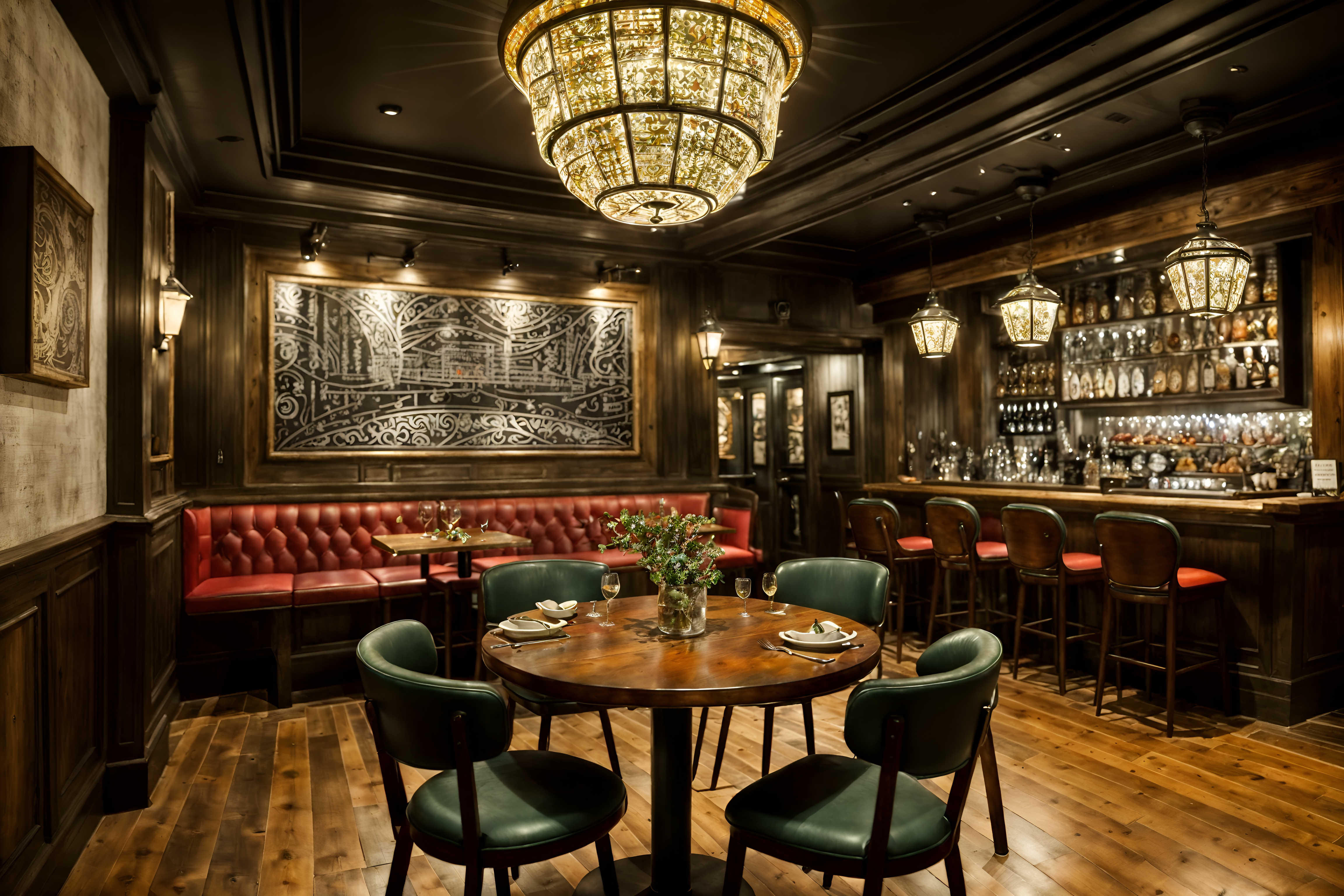 photo from pinterest of eclectic-style interior designed (restaurant interior) with restaurant decor and restaurant chairs and restaurant dining tables and restaurant bar and restaurant decor cinematic photo, highly detailed, cinematic lighting, ultra-detailed, ultrarealistic, photorealism, 8k. trending on pinterest. eclectic interior design style. masterpiece, cinematic light, ultrarealistic+, photorealistic+, 8k, raw photo, realistic, sharp focus on eyes, (symmetrical eyes), (intact eyes), hyperrealistic, highest quality, best quality, , highly detailed, masterpiece, best quality, extremely detailed 8k wallpaper, masterpiece, best quality, ultra-detailed, best shadow, detailed background, detailed face, detailed eyes, high contrast, best illumination, detailed face, dulux, caustic, dynamic angle, detailed glow. dramatic lighting. highly detailed, insanely detailed hair, symmetrical, intricate details, professionally retouched, 8k high definition. strong bokeh. award winning photo.