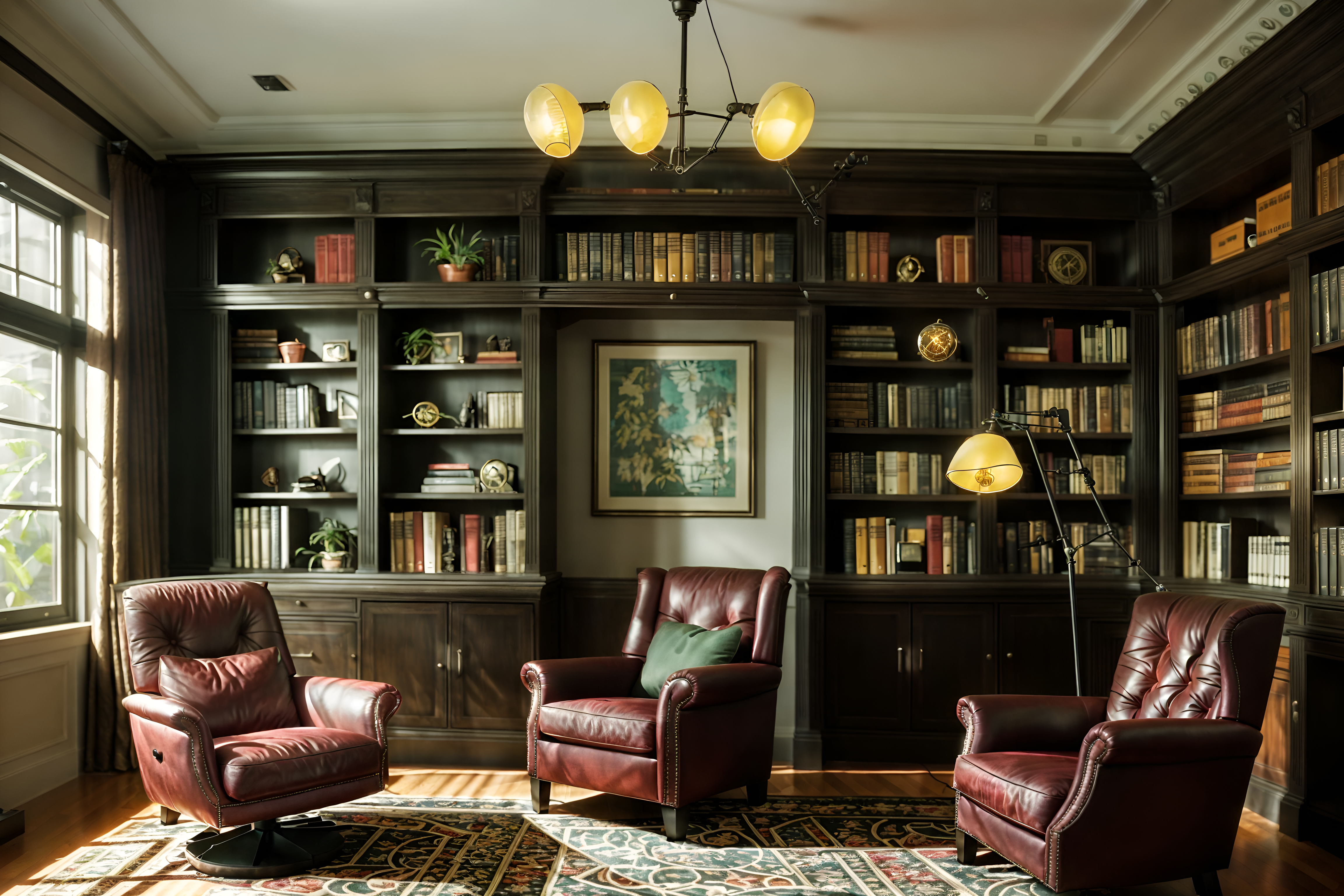 photo from pinterest of eclectic-style interior designed (study room interior) with desk lamp and lounge chair and bookshelves and cabinets and writing desk and office chair and plant and desk lamp cinematic photo, highly detailed, cinematic lighting, ultra-detailed, ultrarealistic, photorealism, 8k. trending on pinterest. eclectic interior design style. masterpiece, cinematic light, ultrarealistic+, photorealistic+, 8k, raw photo, realistic, sharp focus on eyes, (symmetrical eyes), (intact eyes), hyperrealistic, highest quality, best quality, , highly detailed, masterpiece, best quality, extremely detailed 8k wallpaper, masterpiece, best quality, ultra-detailed, best shadow, detailed background, detailed face, detailed eyes, high contrast, best illumination, detailed face, dulux, caustic, dynamic angle, detailed glow. dramatic lighting. highly detailed, insanely detailed hair, symmetrical, intricate details, professionally retouched, 8k high definition. strong bokeh. award winning photo.