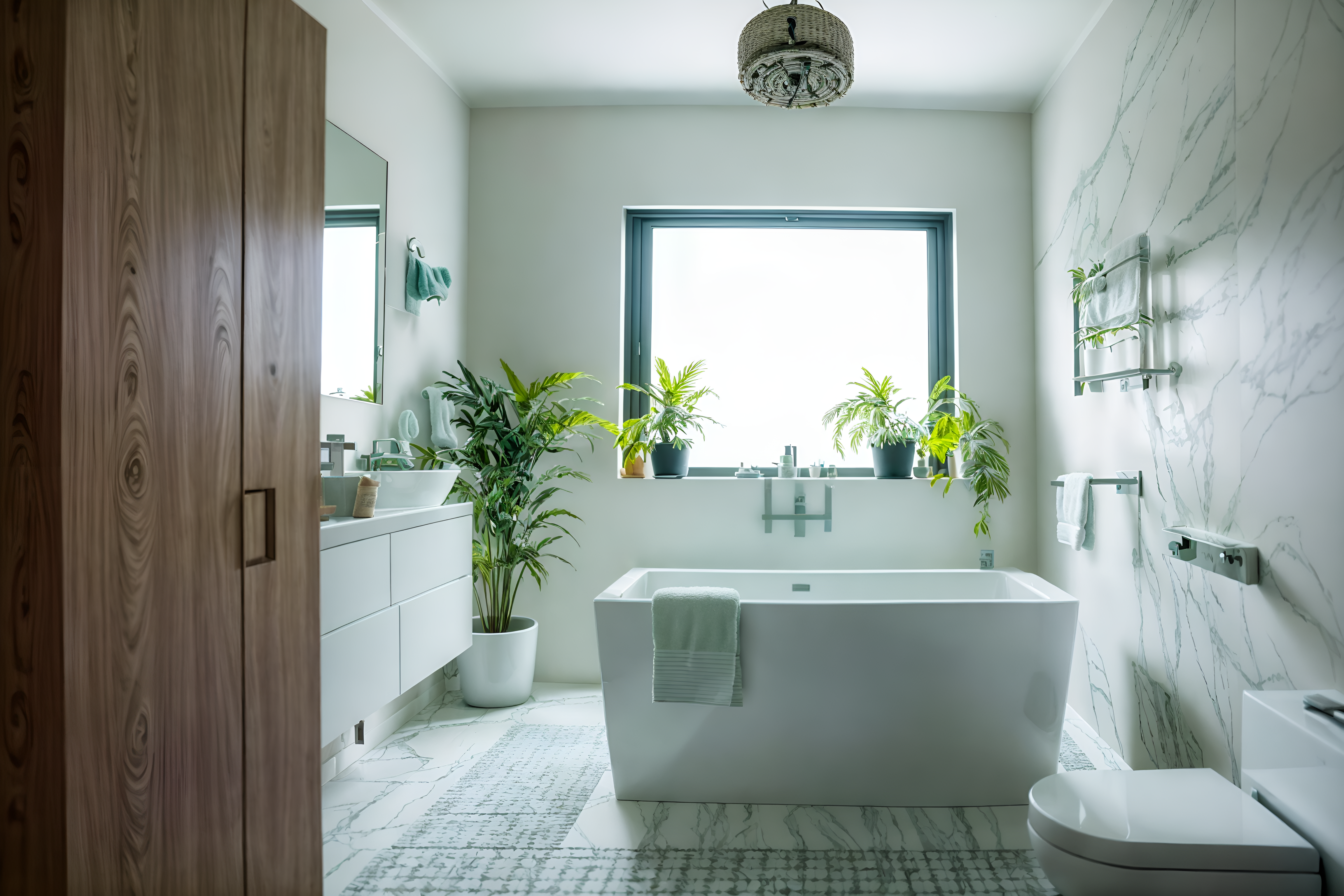photo from pinterest of eco-friendly-style interior designed (bathroom interior) with waste basket and mirror and bath towel and plant and bathtub and bathroom cabinet and shower and toilet seat cinematic photo, highly detailed, cinematic lighting, ultra-detailed, ultrarealistic, photorealism, 8k. trending on pinterest. eco-friendly interior design style. masterpiece, cinematic light, ultrarealistic+, photorealistic+, 8k, raw photo, realistic, sharp focus on eyes, (symmetrical eyes), (intact eyes), hyperrealistic, highest quality, best quality, , highly detailed, masterpiece, best quality, extremely detailed 8k wallpaper, masterpiece, best quality, ultra-detailed, best shadow, detailed background, detailed face, detailed eyes, high contrast, best illumination, detailed face, dulux, caustic, dynamic angle, detailed glow. dramatic lighting. highly detailed, insanely detailed hair, symmetrical, intricate details, professionally retouched, 8k high definition. strong bokeh. award winning photo.