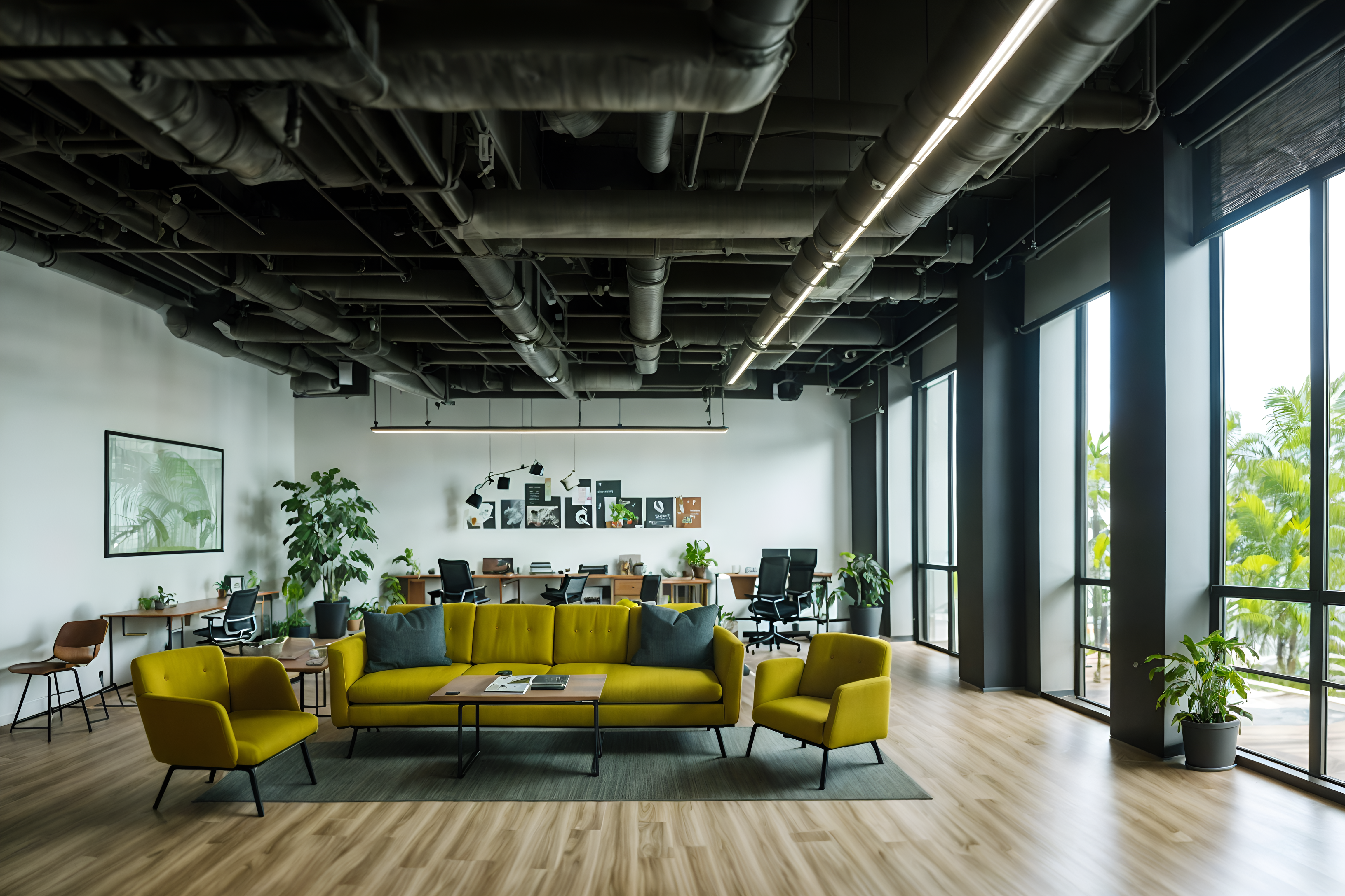 photo from pinterest of eco-friendly-style interior designed (coworking space interior) with office desks and seating area with sofa and lounge chairs and office chairs and office desks cinematic photo, highly detailed, cinematic lighting, ultra-detailed, ultrarealistic, photorealism, 8k. trending on pinterest. eco-friendly interior design style. masterpiece, cinematic light, ultrarealistic+, photorealistic+, 8k, raw photo, realistic, sharp focus on eyes, (symmetrical eyes), (intact eyes), hyperrealistic, highest quality, best quality, , highly detailed, masterpiece, best quality, extremely detailed 8k wallpaper, masterpiece, best quality, ultra-detailed, best shadow, detailed background, detailed face, detailed eyes, high contrast, best illumination, detailed face, dulux, caustic, dynamic angle, detailed glow. dramatic lighting. highly detailed, insanely detailed hair, symmetrical, intricate details, professionally retouched, 8k high definition. strong bokeh. award winning photo.