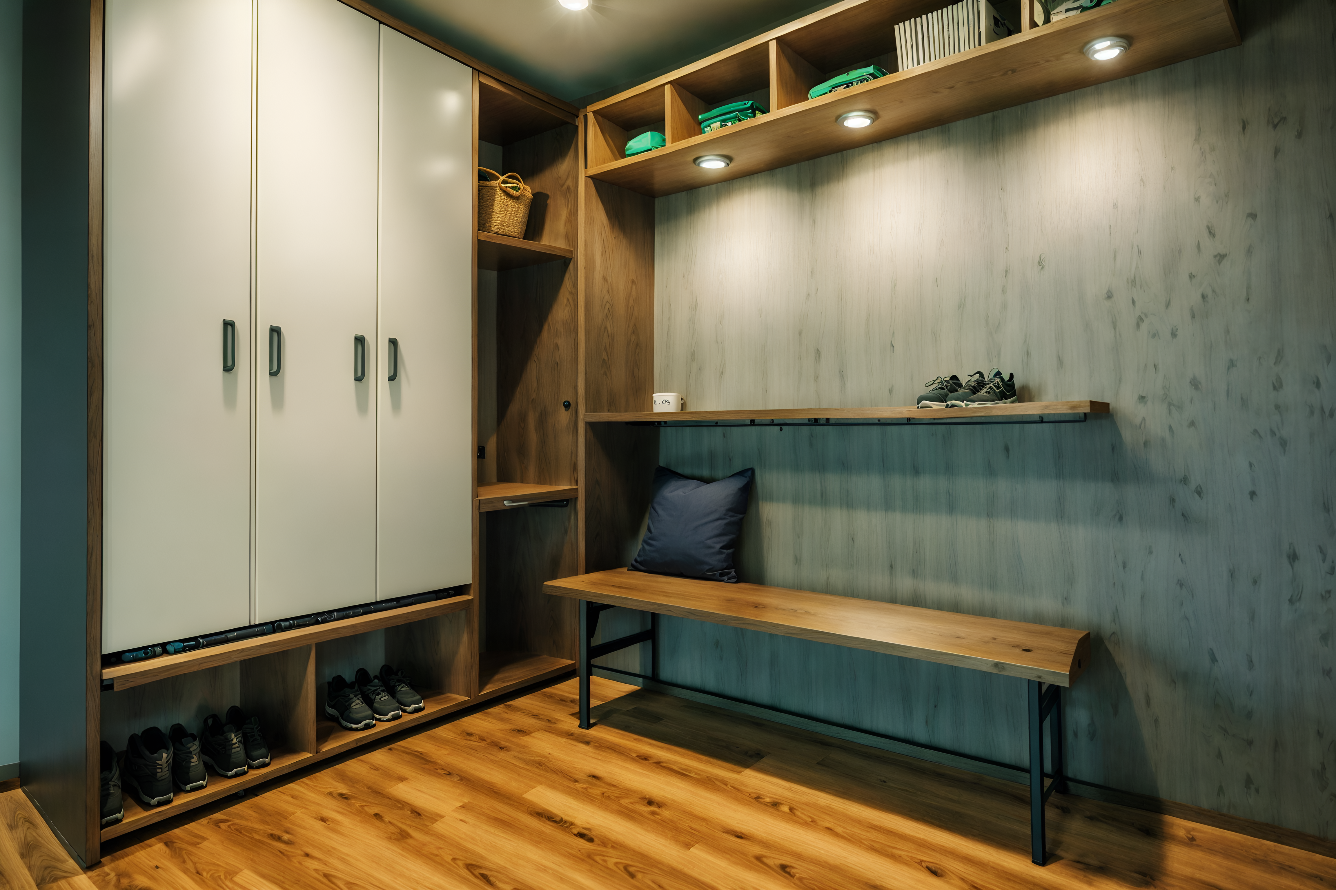 photo from pinterest of eco-friendly-style interior designed (drop zone interior) with wall hooks for coats and cabinets and a bench and shelves for shoes and cubbies and storage drawers and storage baskets and lockers cinematic photo, highly detailed, cinematic lighting, ultra-detailed, ultrarealistic, photorealism, 8k. trending on pinterest. eco-friendly interior design style. masterpiece, cinematic light, ultrarealistic+, photorealistic+, 8k, raw photo, realistic, sharp focus on eyes, (symmetrical eyes), (intact eyes), hyperrealistic, highest quality, best quality, , highly detailed, masterpiece, best quality, extremely detailed 8k wallpaper, masterpiece, best quality, ultra-detailed, best shadow, detailed background, detailed face, detailed eyes, high contrast, best illumination, detailed face, dulux, caustic, dynamic angle, detailed glow. dramatic lighting. highly detailed, insanely detailed hair, symmetrical, intricate details, professionally retouched, 8k high definition. strong bokeh. award winning photo.