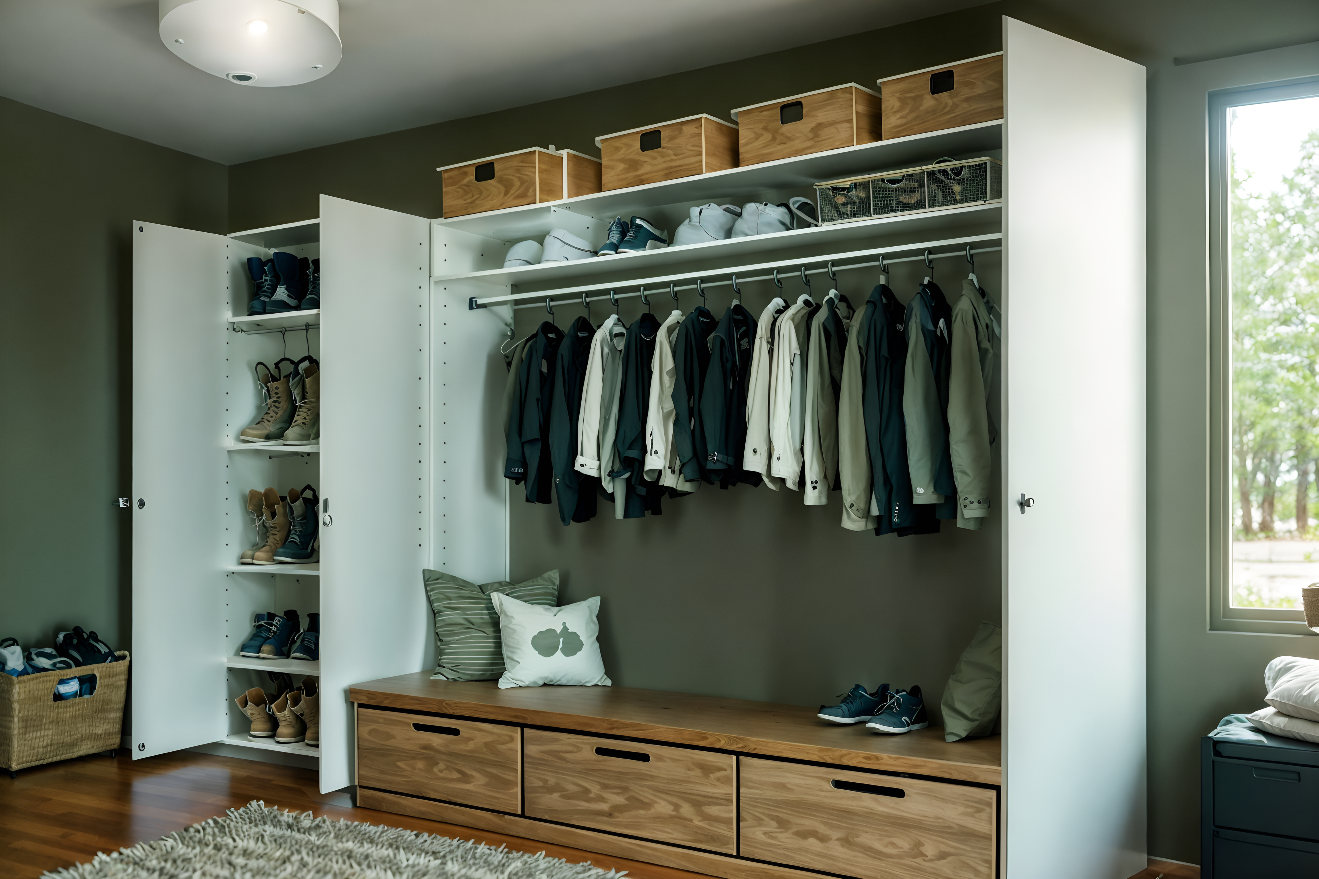photo from pinterest of eco-friendly-style interior designed (drop zone interior) with wall hooks for coats and cabinets and a bench and shelves for shoes and cubbies and storage drawers and storage baskets and lockers cinematic photo, highly detailed, cinematic lighting, ultra-detailed, ultrarealistic, photorealism, 8k. trending on pinterest. eco-friendly interior design style. masterpiece, cinematic light, ultrarealistic+, photorealistic+, 8k, raw photo, realistic, sharp focus on eyes, (symmetrical eyes), (intact eyes), hyperrealistic, highest quality, best quality, , highly detailed, masterpiece, best quality, extremely detailed 8k wallpaper, masterpiece, best quality, ultra-detailed, best shadow, detailed background, detailed face, detailed eyes, high contrast, best illumination, detailed face, dulux, caustic, dynamic angle, detailed glow. dramatic lighting. highly detailed, insanely detailed hair, symmetrical, intricate details, professionally retouched, 8k high definition. strong bokeh. award winning photo.
