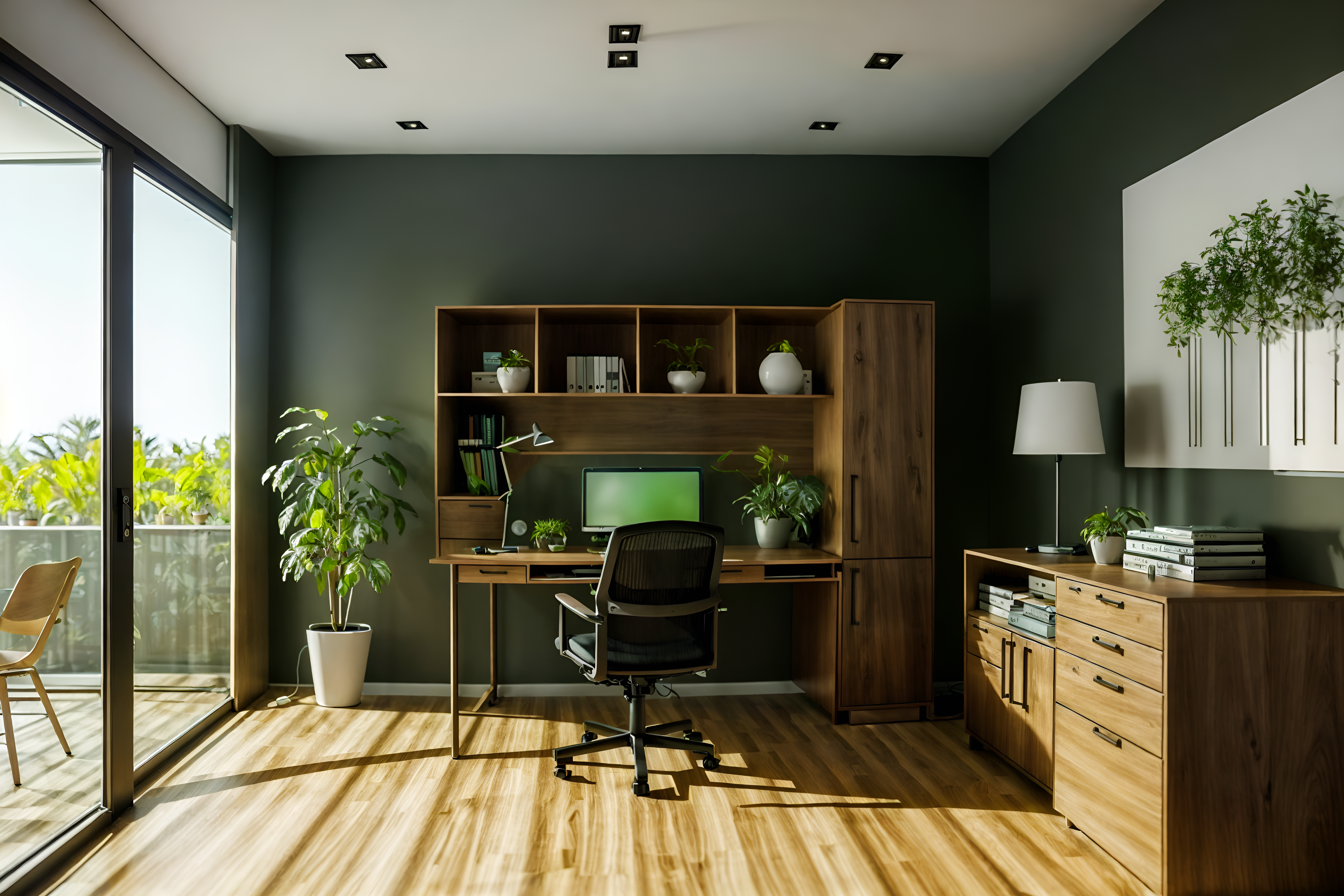 photo from pinterest of eco-friendly-style interior designed (home office interior) with cabinets and desk lamp and computer desk and plant and office chair and cabinets cinematic photo, highly detailed, cinematic lighting, ultra-detailed, ultrarealistic, photorealism, 8k. trending on pinterest. eco-friendly interior design style. masterpiece, cinematic light, ultrarealistic+, photorealistic+, 8k, raw photo, realistic, sharp focus on eyes, (symmetrical eyes), (intact eyes), hyperrealistic, highest quality, best quality, , highly detailed, masterpiece, best quality, extremely detailed 8k wallpaper, masterpiece, best quality, ultra-detailed, best shadow, detailed background, detailed face, detailed eyes, high contrast, best illumination, detailed face, dulux, caustic, dynamic angle, detailed glow. dramatic lighting. highly detailed, insanely detailed hair, symmetrical, intricate details, professionally retouched, 8k high definition. strong bokeh. award winning photo.