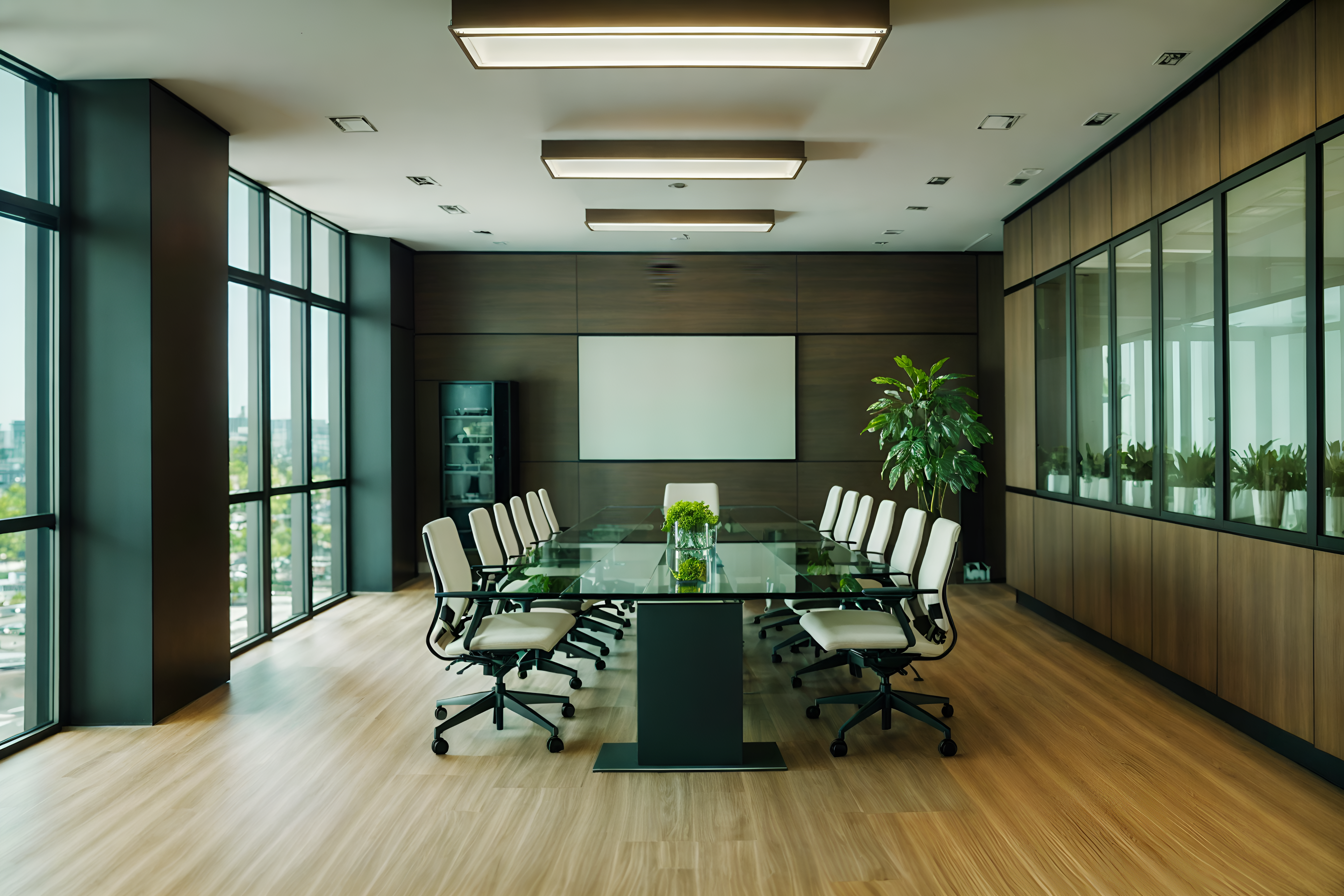 photo from pinterest of eco-friendly-style interior designed (meeting room interior) with plant and office chairs and painting or photo on wall and glass walls and glass doors and cabinets and boardroom table and vase cinematic photo, highly detailed, cinematic lighting, ultra-detailed, ultrarealistic, photorealism, 8k. trending on pinterest. eco-friendly interior design style. masterpiece, cinematic light, ultrarealistic+, photorealistic+, 8k, raw photo, realistic, sharp focus on eyes, (symmetrical eyes), (intact eyes), hyperrealistic, highest quality, best quality, , highly detailed, masterpiece, best quality, extremely detailed 8k wallpaper, masterpiece, best quality, ultra-detailed, best shadow, detailed background, detailed face, detailed eyes, high contrast, best illumination, detailed face, dulux, caustic, dynamic angle, detailed glow. dramatic lighting. highly detailed, insanely detailed hair, symmetrical, intricate details, professionally retouched, 8k high definition. strong bokeh. award winning photo.