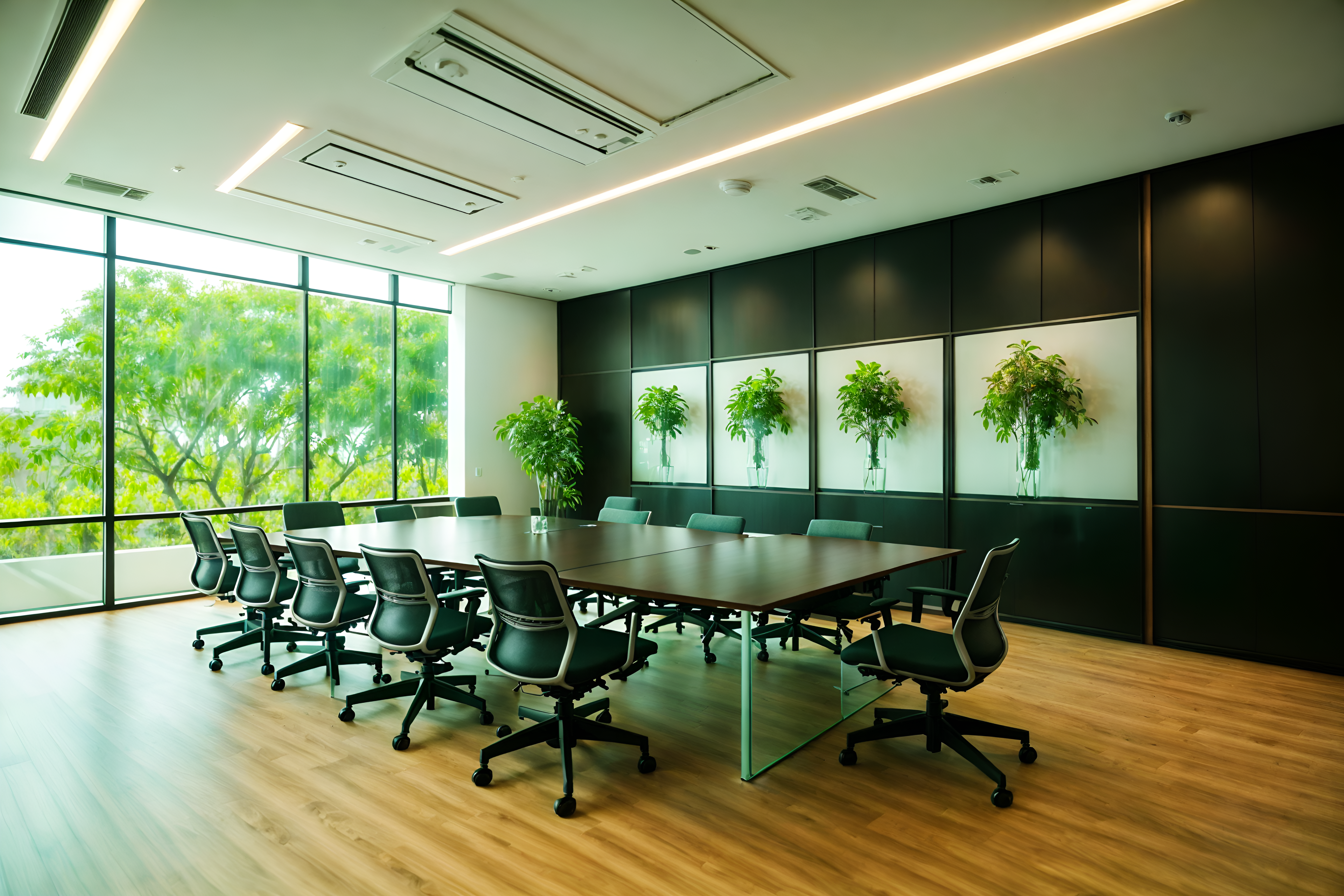 photo from pinterest of eco-friendly-style interior designed (meeting room interior) with plant and office chairs and painting or photo on wall and glass walls and glass doors and cabinets and boardroom table and vase cinematic photo, highly detailed, cinematic lighting, ultra-detailed, ultrarealistic, photorealism, 8k. trending on pinterest. eco-friendly interior design style. masterpiece, cinematic light, ultrarealistic+, photorealistic+, 8k, raw photo, realistic, sharp focus on eyes, (symmetrical eyes), (intact eyes), hyperrealistic, highest quality, best quality, , highly detailed, masterpiece, best quality, extremely detailed 8k wallpaper, masterpiece, best quality, ultra-detailed, best shadow, detailed background, detailed face, detailed eyes, high contrast, best illumination, detailed face, dulux, caustic, dynamic angle, detailed glow. dramatic lighting. highly detailed, insanely detailed hair, symmetrical, intricate details, professionally retouched, 8k high definition. strong bokeh. award winning photo.