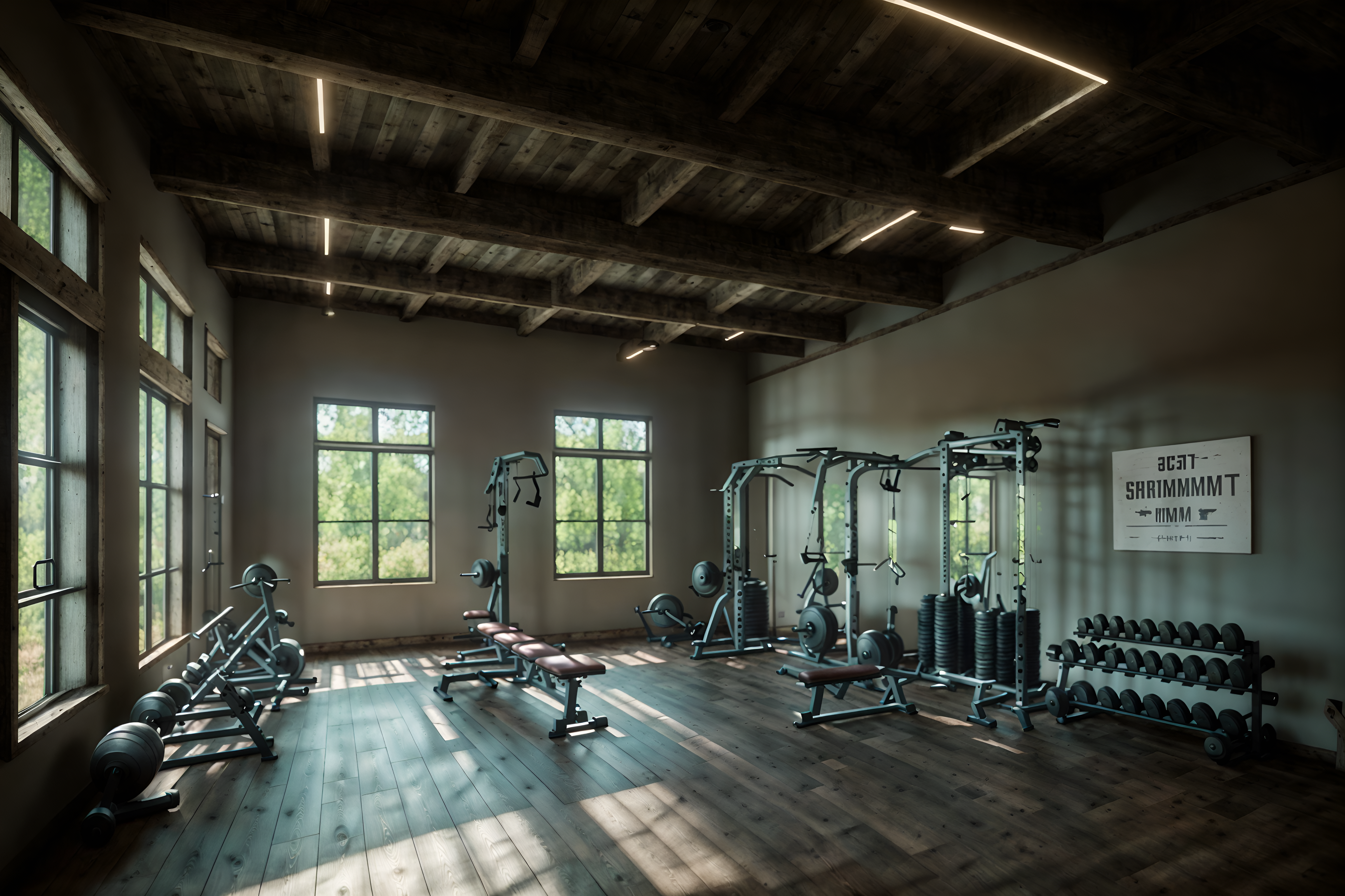 photo from pinterest of farmhouse-style interior designed (fitness gym interior) with crosstrainer and bench press and dumbbell stand and squat rack and exercise bicycle and crosstrainer. . with . . cinematic photo, highly detailed, cinematic lighting, ultra-detailed, ultrarealistic, photorealism, 8k. trending on pinterest. farmhouse interior design style. masterpiece, cinematic light, ultrarealistic+, photorealistic+, 8k, raw photo, realistic, sharp focus on eyes, (symmetrical eyes), (intact eyes), hyperrealistic, highest quality, best quality, , highly detailed, masterpiece, best quality, extremely detailed 8k wallpaper, masterpiece, best quality, ultra-detailed, best shadow, detailed background, detailed face, detailed eyes, high contrast, best illumination, detailed face, dulux, caustic, dynamic angle, detailed glow. dramatic lighting. highly detailed, insanely detailed hair, symmetrical, intricate details, professionally retouched, 8k high definition. strong bokeh. award winning photo.