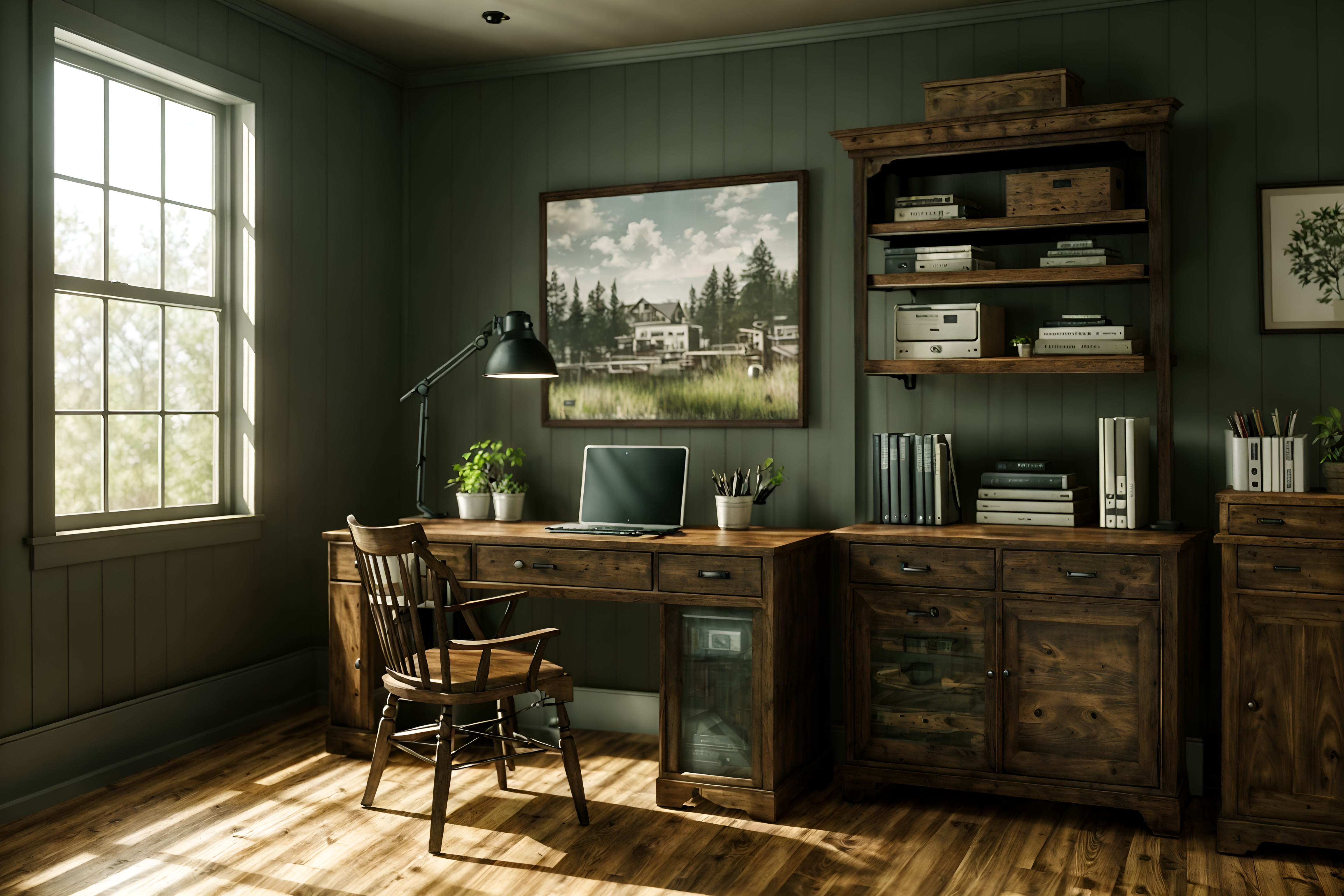 photo from pinterest of farmhouse-style interior designed (home office interior) with office chair and cabinets and plant and computer desk and desk lamp and office chair. . with . . cinematic photo, highly detailed, cinematic lighting, ultra-detailed, ultrarealistic, photorealism, 8k. trending on pinterest. farmhouse interior design style. masterpiece, cinematic light, ultrarealistic+, photorealistic+, 8k, raw photo, realistic, sharp focus on eyes, (symmetrical eyes), (intact eyes), hyperrealistic, highest quality, best quality, , highly detailed, masterpiece, best quality, extremely detailed 8k wallpaper, masterpiece, best quality, ultra-detailed, best shadow, detailed background, detailed face, detailed eyes, high contrast, best illumination, detailed face, dulux, caustic, dynamic angle, detailed glow. dramatic lighting. highly detailed, insanely detailed hair, symmetrical, intricate details, professionally retouched, 8k high definition. strong bokeh. award winning photo.