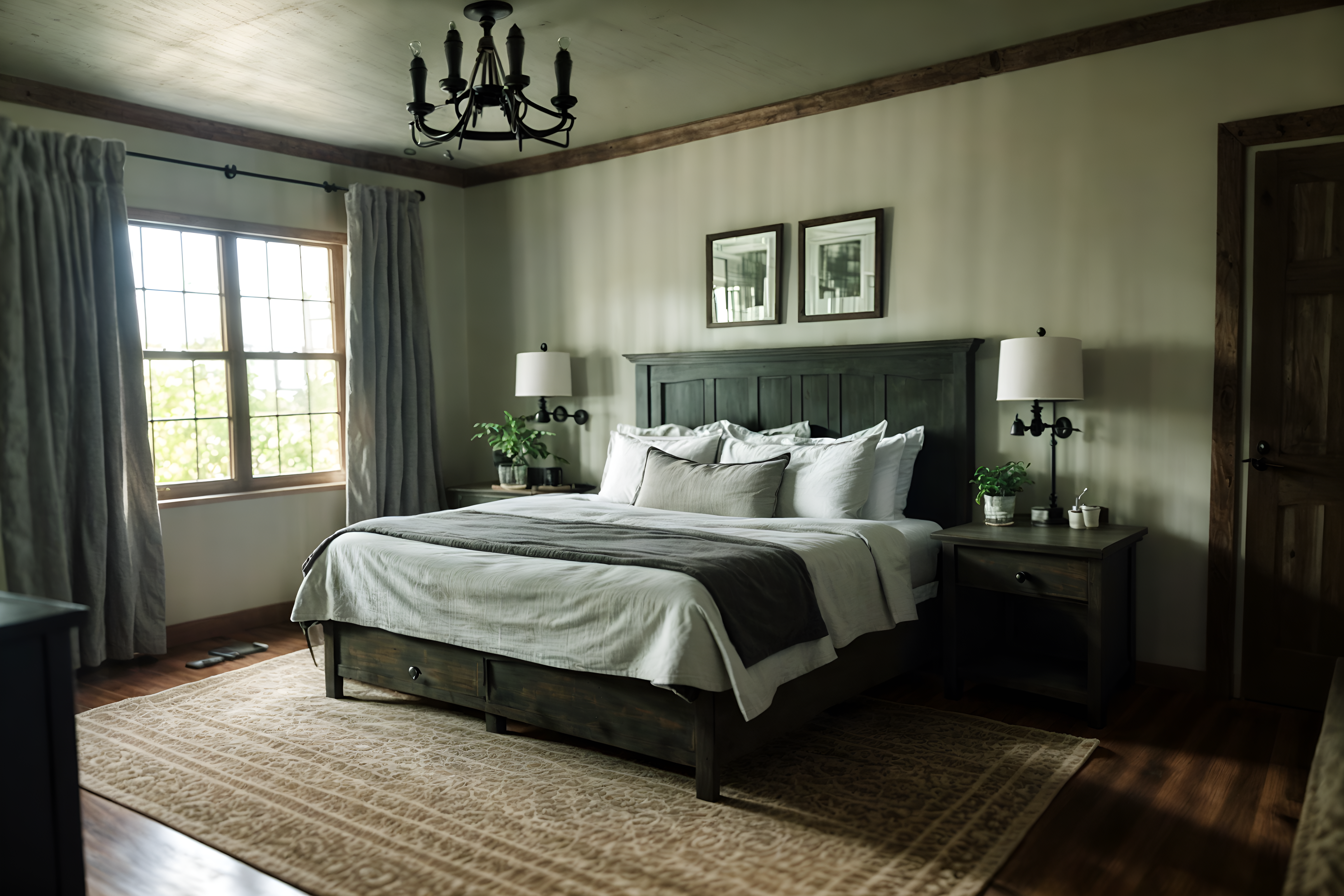 photo from pinterest of farmhouse-style interior designed (hotel room interior) with bedside table or night stand and hotel bathroom and dresser closet and accent chair and plant and headboard and mirror and night light. . with . . cinematic photo, highly detailed, cinematic lighting, ultra-detailed, ultrarealistic, photorealism, 8k. trending on pinterest. farmhouse interior design style. masterpiece, cinematic light, ultrarealistic+, photorealistic+, 8k, raw photo, realistic, sharp focus on eyes, (symmetrical eyes), (intact eyes), hyperrealistic, highest quality, best quality, , highly detailed, masterpiece, best quality, extremely detailed 8k wallpaper, masterpiece, best quality, ultra-detailed, best shadow, detailed background, detailed face, detailed eyes, high contrast, best illumination, detailed face, dulux, caustic, dynamic angle, detailed glow. dramatic lighting. highly detailed, insanely detailed hair, symmetrical, intricate details, professionally retouched, 8k high definition. strong bokeh. award winning photo.