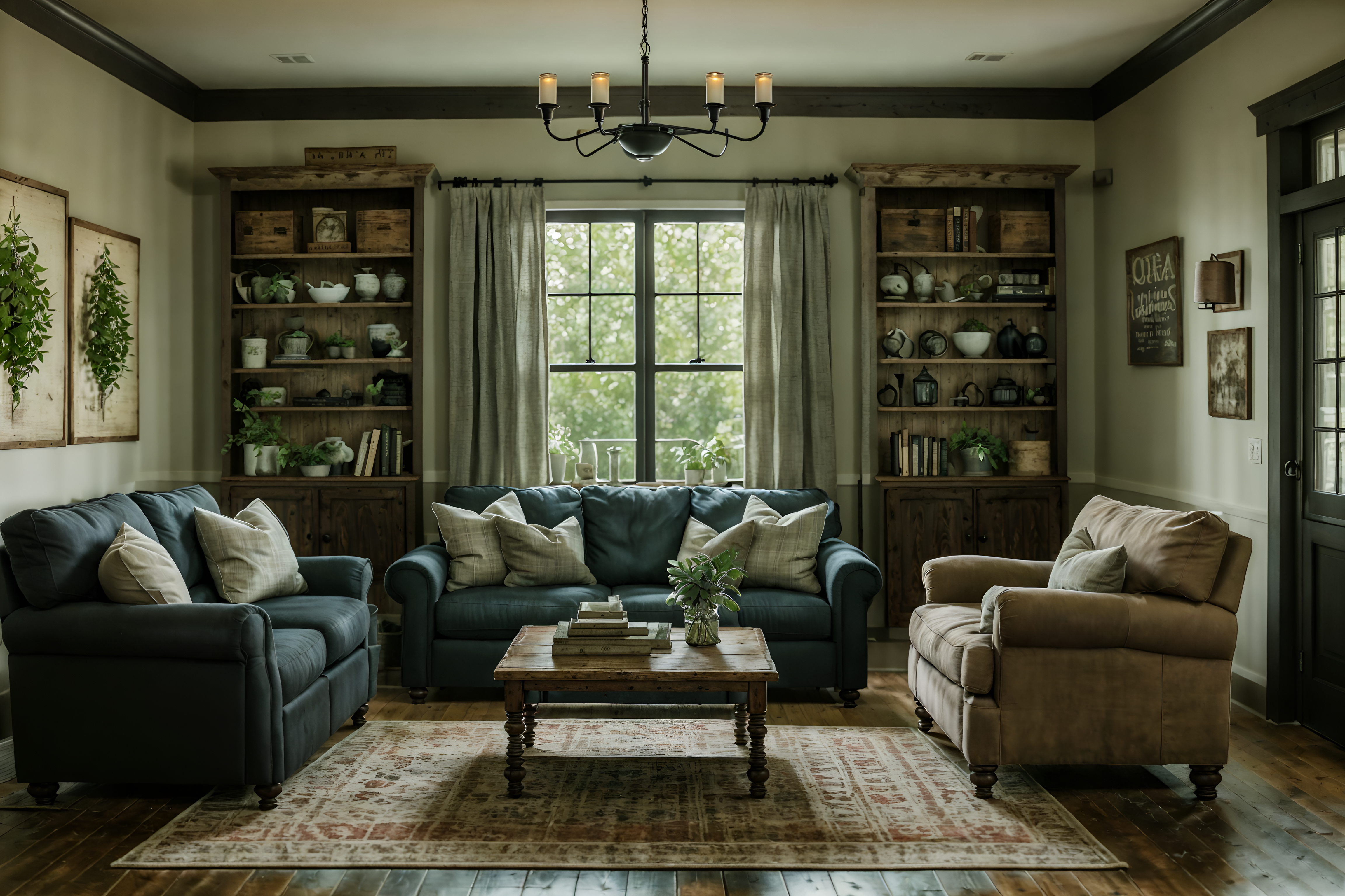photo from pinterest of farmhouse-style interior designed (living room interior) with coffee tables and bookshelves and plant and occasional tables and furniture and televisions and chairs and sofa. . with . . cinematic photo, highly detailed, cinematic lighting, ultra-detailed, ultrarealistic, photorealism, 8k. trending on pinterest. farmhouse interior design style. masterpiece, cinematic light, ultrarealistic+, photorealistic+, 8k, raw photo, realistic, sharp focus on eyes, (symmetrical eyes), (intact eyes), hyperrealistic, highest quality, best quality, , highly detailed, masterpiece, best quality, extremely detailed 8k wallpaper, masterpiece, best quality, ultra-detailed, best shadow, detailed background, detailed face, detailed eyes, high contrast, best illumination, detailed face, dulux, caustic, dynamic angle, detailed glow. dramatic lighting. highly detailed, insanely detailed hair, symmetrical, intricate details, professionally retouched, 8k high definition. strong bokeh. award winning photo.