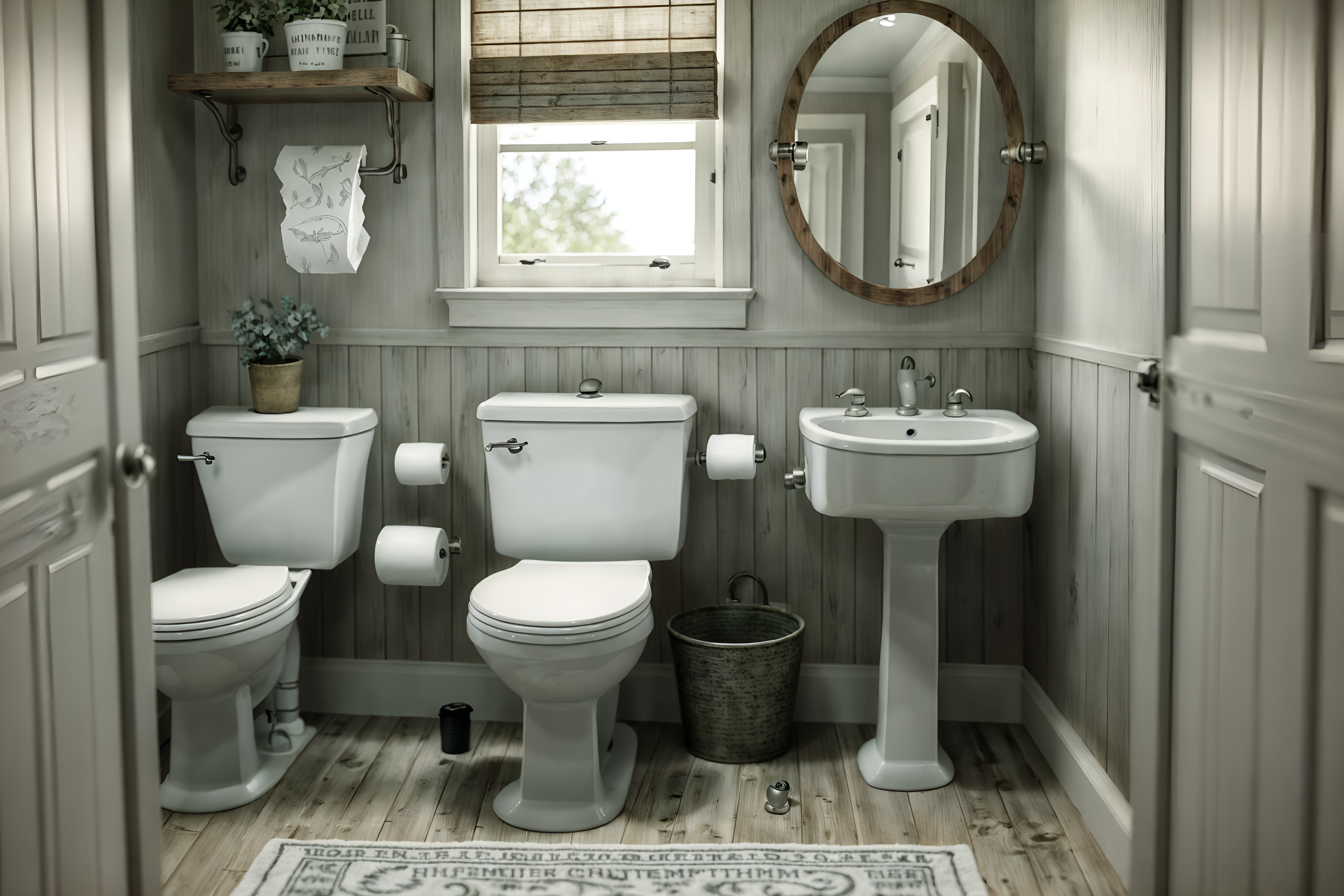 photo from pinterest of farmhouse-style interior designed (toilet interior) with toilet paper hanger and toilet with toilet seat up and sink with tap and toilet paper hanger. . with . . cinematic photo, highly detailed, cinematic lighting, ultra-detailed, ultrarealistic, photorealism, 8k. trending on pinterest. farmhouse interior design style. masterpiece, cinematic light, ultrarealistic+, photorealistic+, 8k, raw photo, realistic, sharp focus on eyes, (symmetrical eyes), (intact eyes), hyperrealistic, highest quality, best quality, , highly detailed, masterpiece, best quality, extremely detailed 8k wallpaper, masterpiece, best quality, ultra-detailed, best shadow, detailed background, detailed face, detailed eyes, high contrast, best illumination, detailed face, dulux, caustic, dynamic angle, detailed glow. dramatic lighting. highly detailed, insanely detailed hair, symmetrical, intricate details, professionally retouched, 8k high definition. strong bokeh. award winning photo.