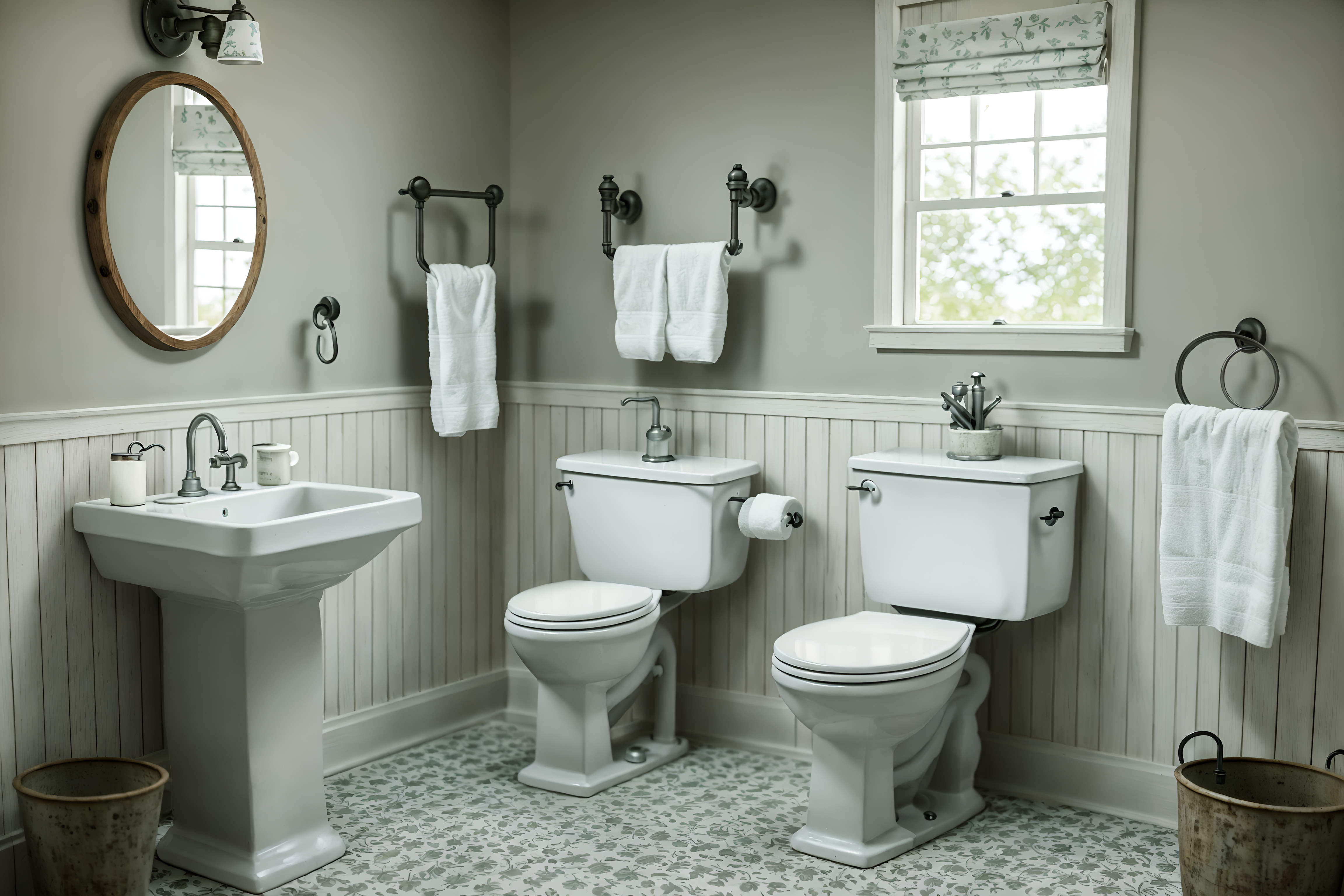 photo from pinterest of farmhouse-style interior designed (toilet interior) with toilet paper hanger and toilet with toilet seat up and sink with tap and toilet paper hanger. . with . . cinematic photo, highly detailed, cinematic lighting, ultra-detailed, ultrarealistic, photorealism, 8k. trending on pinterest. farmhouse interior design style. masterpiece, cinematic light, ultrarealistic+, photorealistic+, 8k, raw photo, realistic, sharp focus on eyes, (symmetrical eyes), (intact eyes), hyperrealistic, highest quality, best quality, , highly detailed, masterpiece, best quality, extremely detailed 8k wallpaper, masterpiece, best quality, ultra-detailed, best shadow, detailed background, detailed face, detailed eyes, high contrast, best illumination, detailed face, dulux, caustic, dynamic angle, detailed glow. dramatic lighting. highly detailed, insanely detailed hair, symmetrical, intricate details, professionally retouched, 8k high definition. strong bokeh. award winning photo.