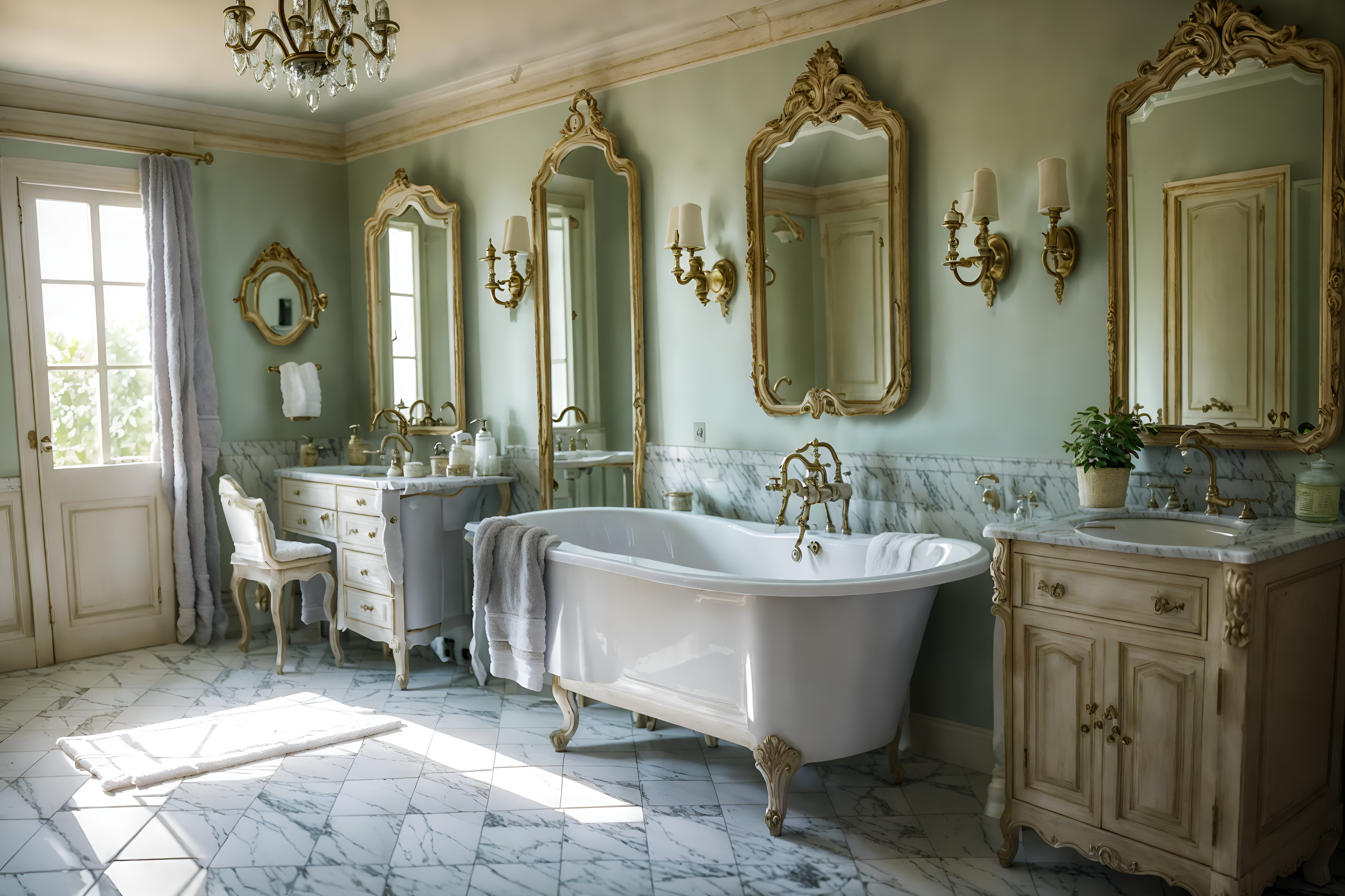 photo from pinterest of french country-style interior designed (bathroom interior) with waste basket and plant and bathroom sink with faucet and shower and bathtub and mirror and bath towel and bathroom cabinet. . with . . cinematic photo, highly detailed, cinematic lighting, ultra-detailed, ultrarealistic, photorealism, 8k. trending on pinterest. french country interior design style. masterpiece, cinematic light, ultrarealistic+, photorealistic+, 8k, raw photo, realistic, sharp focus on eyes, (symmetrical eyes), (intact eyes), hyperrealistic, highest quality, best quality, , highly detailed, masterpiece, best quality, extremely detailed 8k wallpaper, masterpiece, best quality, ultra-detailed, best shadow, detailed background, detailed face, detailed eyes, high contrast, best illumination, detailed face, dulux, caustic, dynamic angle, detailed glow. dramatic lighting. highly detailed, insanely detailed hair, symmetrical, intricate details, professionally retouched, 8k high definition. strong bokeh. award winning photo.