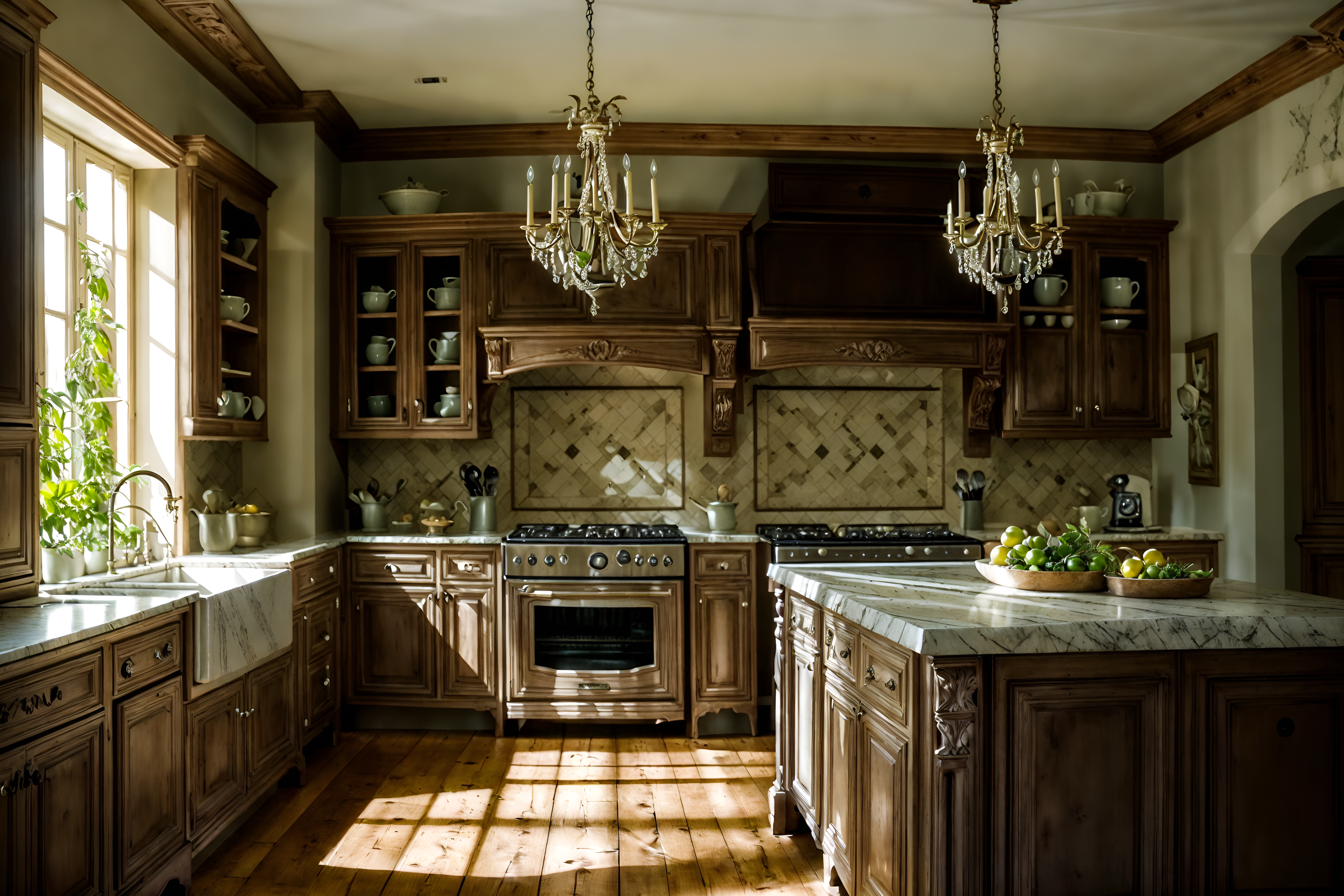 photo from pinterest of french country-style interior designed (kitchen living combo interior) with stove and sink and worktops and refrigerator and electric lamps and bookshelves and plant and sofa. . with . . cinematic photo, highly detailed, cinematic lighting, ultra-detailed, ultrarealistic, photorealism, 8k. trending on pinterest. french country interior design style. masterpiece, cinematic light, ultrarealistic+, photorealistic+, 8k, raw photo, realistic, sharp focus on eyes, (symmetrical eyes), (intact eyes), hyperrealistic, highest quality, best quality, , highly detailed, masterpiece, best quality, extremely detailed 8k wallpaper, masterpiece, best quality, ultra-detailed, best shadow, detailed background, detailed face, detailed eyes, high contrast, best illumination, detailed face, dulux, caustic, dynamic angle, detailed glow. dramatic lighting. highly detailed, insanely detailed hair, symmetrical, intricate details, professionally retouched, 8k high definition. strong bokeh. award winning photo.
