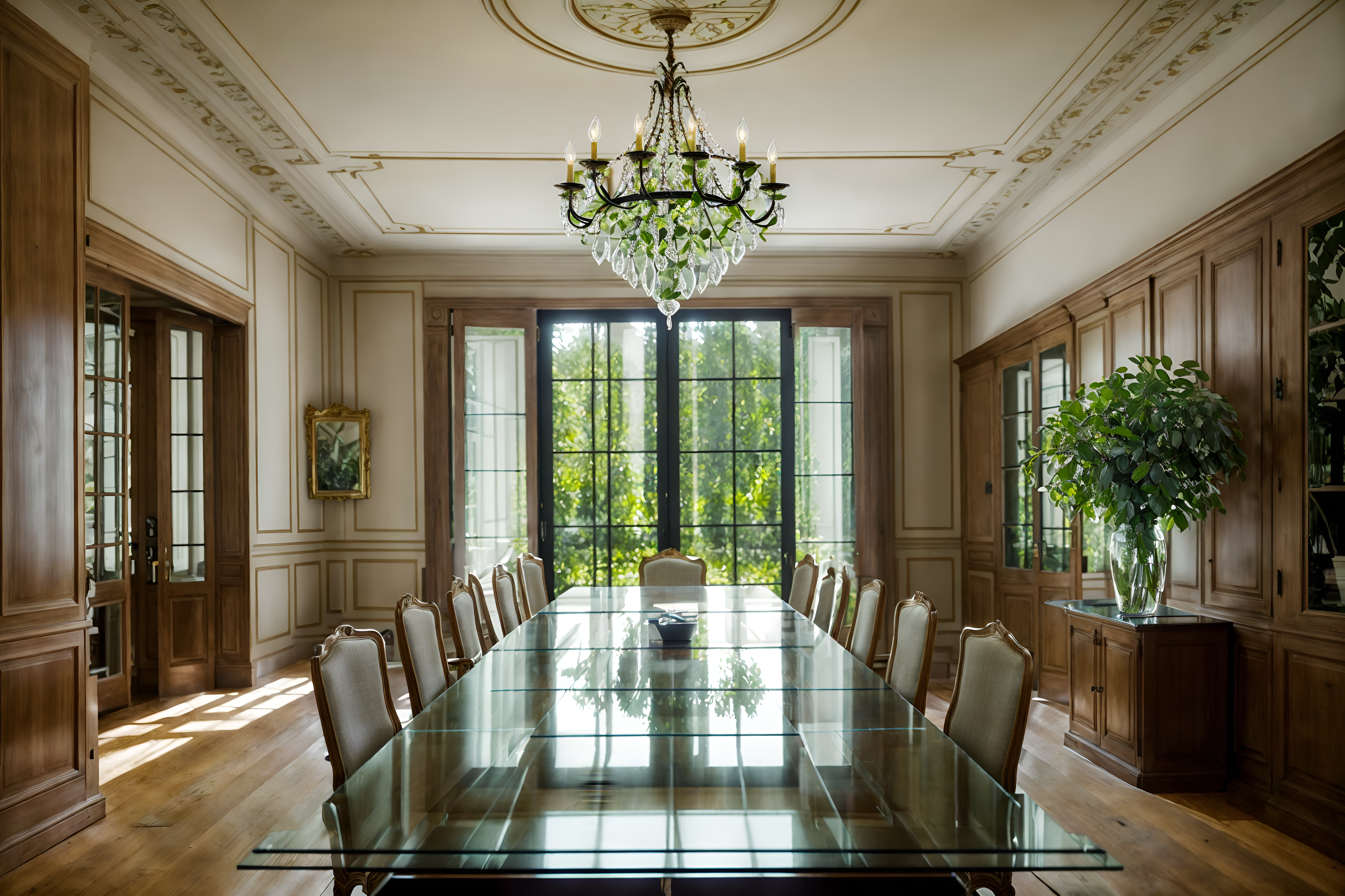 photo from pinterest of french country-style interior designed (meeting room interior) with glass walls and painting or photo on wall and plant and vase and office chairs and boardroom table and glass doors and cabinets. . with . . cinematic photo, highly detailed, cinematic lighting, ultra-detailed, ultrarealistic, photorealism, 8k. trending on pinterest. french country interior design style. masterpiece, cinematic light, ultrarealistic+, photorealistic+, 8k, raw photo, realistic, sharp focus on eyes, (symmetrical eyes), (intact eyes), hyperrealistic, highest quality, best quality, , highly detailed, masterpiece, best quality, extremely detailed 8k wallpaper, masterpiece, best quality, ultra-detailed, best shadow, detailed background, detailed face, detailed eyes, high contrast, best illumination, detailed face, dulux, caustic, dynamic angle, detailed glow. dramatic lighting. highly detailed, insanely detailed hair, symmetrical, intricate details, professionally retouched, 8k high definition. strong bokeh. award winning photo.