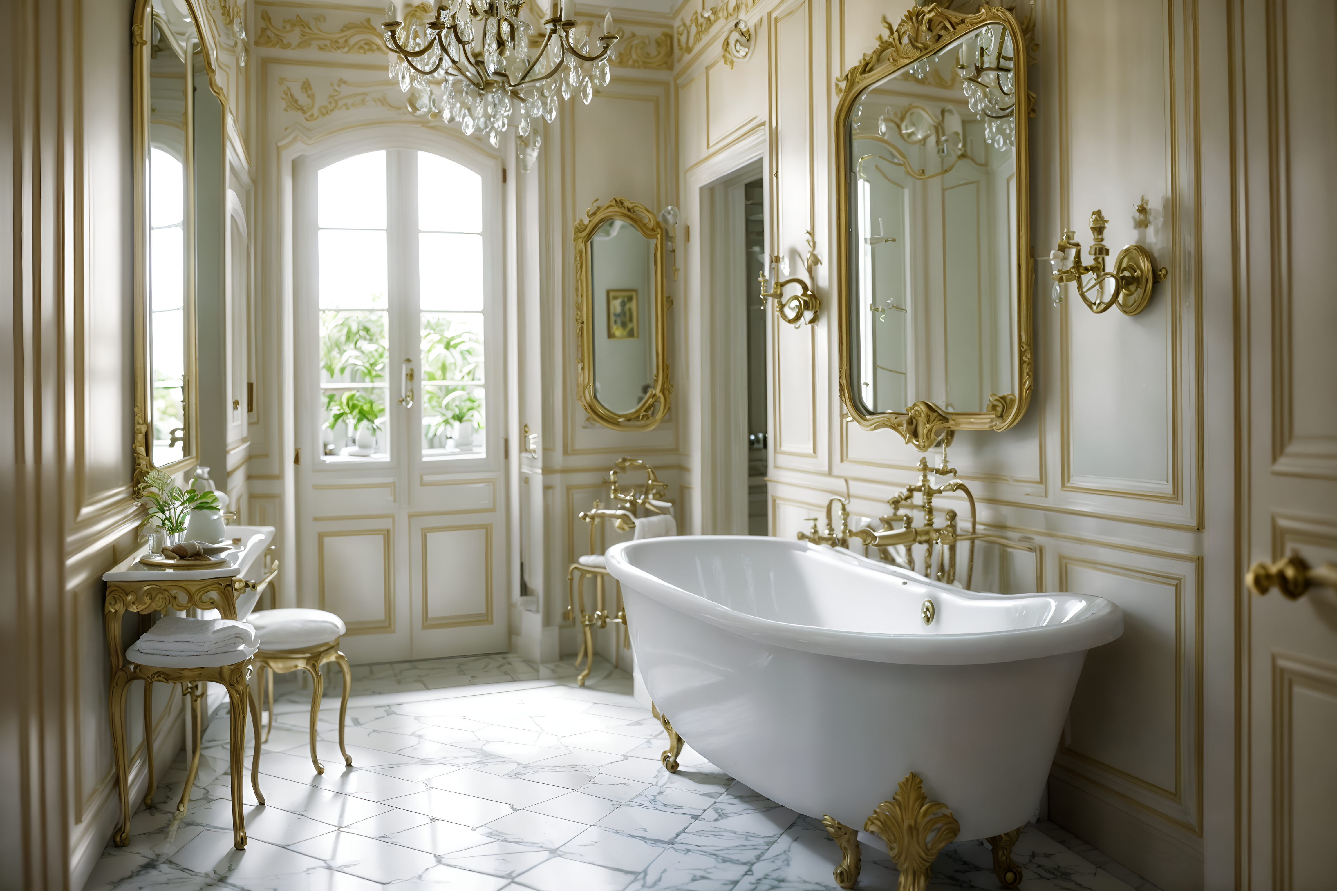 photo from pinterest of french-style interior designed (bathroom interior) with bath rail and bathroom cabinet and plant and bathtub and toilet seat and mirror and waste basket and bathroom sink with faucet cinematic photo, highly detailed, cinematic lighting, ultra-detailed, ultrarealistic, photorealism, 8k. trending on pinterest. french interior design style. masterpiece, cinematic light, ultrarealistic+, photorealistic+, 8k, raw photo, realistic, sharp focus on eyes, (symmetrical eyes), (intact eyes), hyperrealistic, highest quality, best quality, , highly detailed, masterpiece, best quality, extremely detailed 8k wallpaper, masterpiece, best quality, ultra-detailed, best shadow, detailed background, detailed face, detailed eyes, high contrast, best illumination, detailed face, dulux, caustic, dynamic angle, detailed glow. dramatic lighting. highly detailed, insanely detailed hair, symmetrical, intricate details, professionally retouched, 8k high definition. strong bokeh. award winning photo.