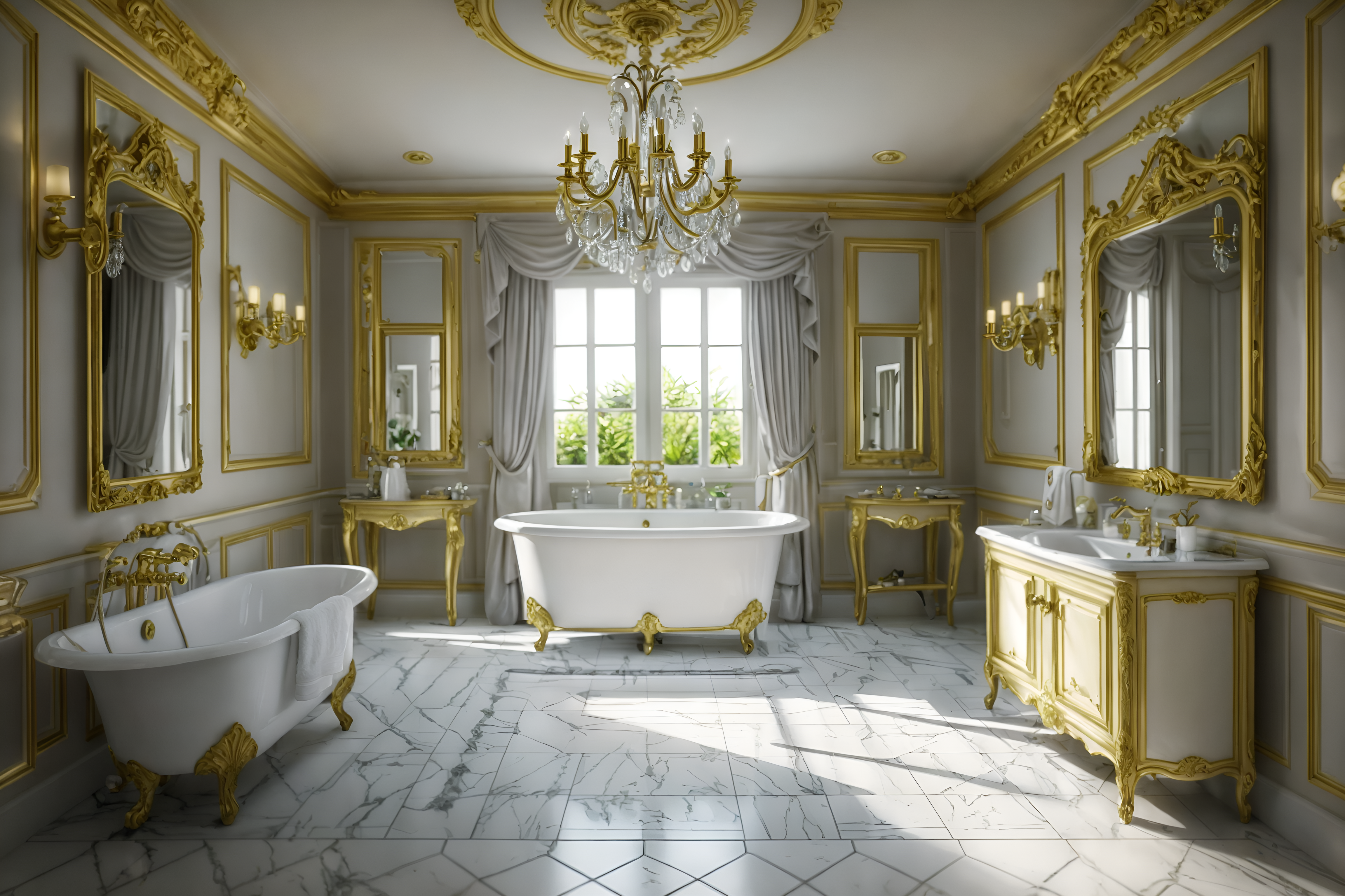 photo from pinterest of french-style interior designed (bathroom interior) with bath rail and bathroom cabinet and plant and bathtub and toilet seat and mirror and waste basket and bathroom sink with faucet cinematic photo, highly detailed, cinematic lighting, ultra-detailed, ultrarealistic, photorealism, 8k. trending on pinterest. french interior design style. masterpiece, cinematic light, ultrarealistic+, photorealistic+, 8k, raw photo, realistic, sharp focus on eyes, (symmetrical eyes), (intact eyes), hyperrealistic, highest quality, best quality, , highly detailed, masterpiece, best quality, extremely detailed 8k wallpaper, masterpiece, best quality, ultra-detailed, best shadow, detailed background, detailed face, detailed eyes, high contrast, best illumination, detailed face, dulux, caustic, dynamic angle, detailed glow. dramatic lighting. highly detailed, insanely detailed hair, symmetrical, intricate details, professionally retouched, 8k high definition. strong bokeh. award winning photo.