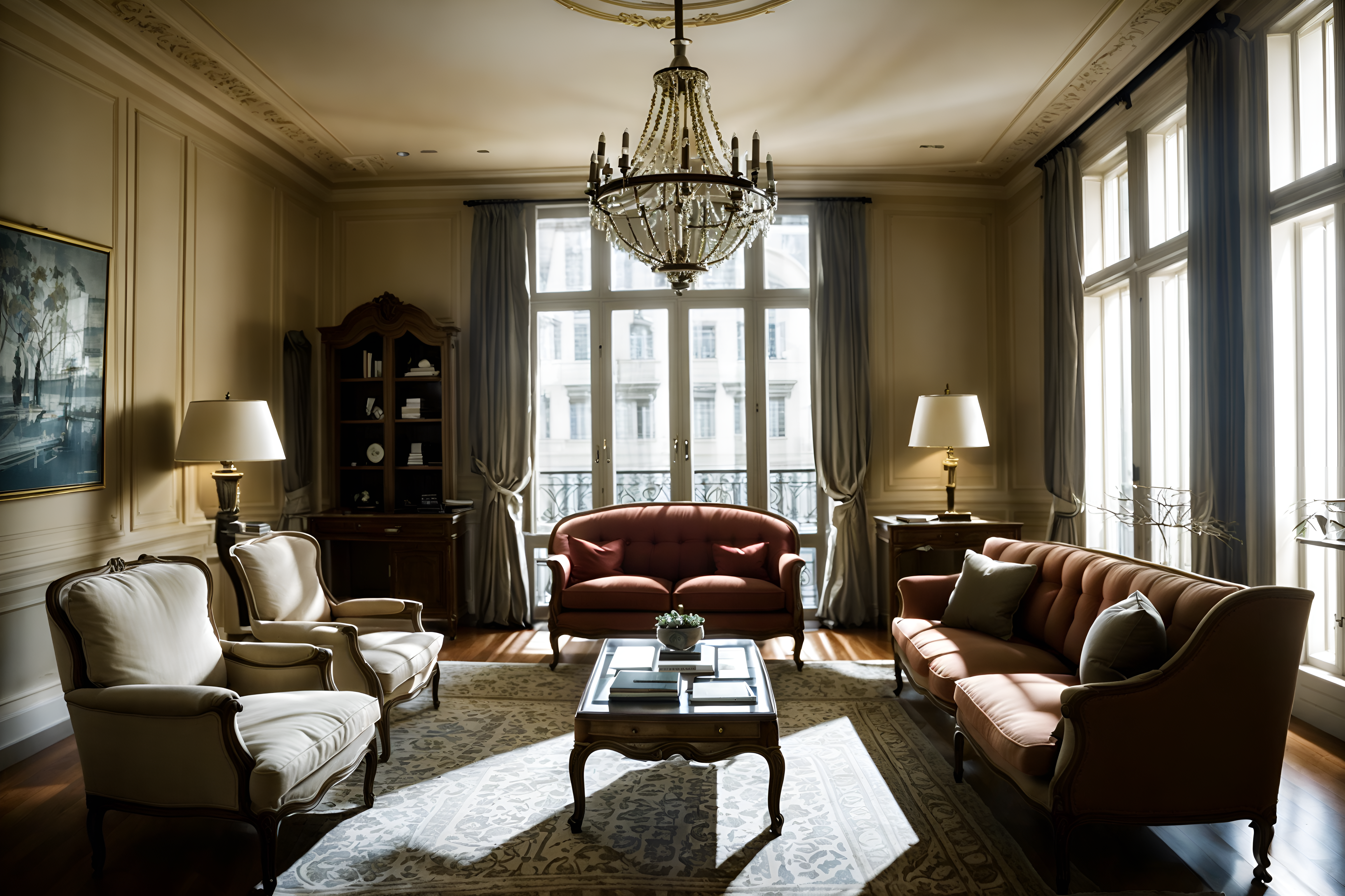 photo from pinterest of french-style interior designed (office interior) with office chairs and computer desks and desk lamps and office desks and seating area with sofa and windows and cabinets and lounge chairs cinematic photo, highly detailed, cinematic lighting, ultra-detailed, ultrarealistic, photorealism, 8k. trending on pinterest. french interior design style. masterpiece, cinematic light, ultrarealistic+, photorealistic+, 8k, raw photo, realistic, sharp focus on eyes, (symmetrical eyes), (intact eyes), hyperrealistic, highest quality, best quality, , highly detailed, masterpiece, best quality, extremely detailed 8k wallpaper, masterpiece, best quality, ultra-detailed, best shadow, detailed background, detailed face, detailed eyes, high contrast, best illumination, detailed face, dulux, caustic, dynamic angle, detailed glow. dramatic lighting. highly detailed, insanely detailed hair, symmetrical, intricate details, professionally retouched, 8k high definition. strong bokeh. award winning photo.