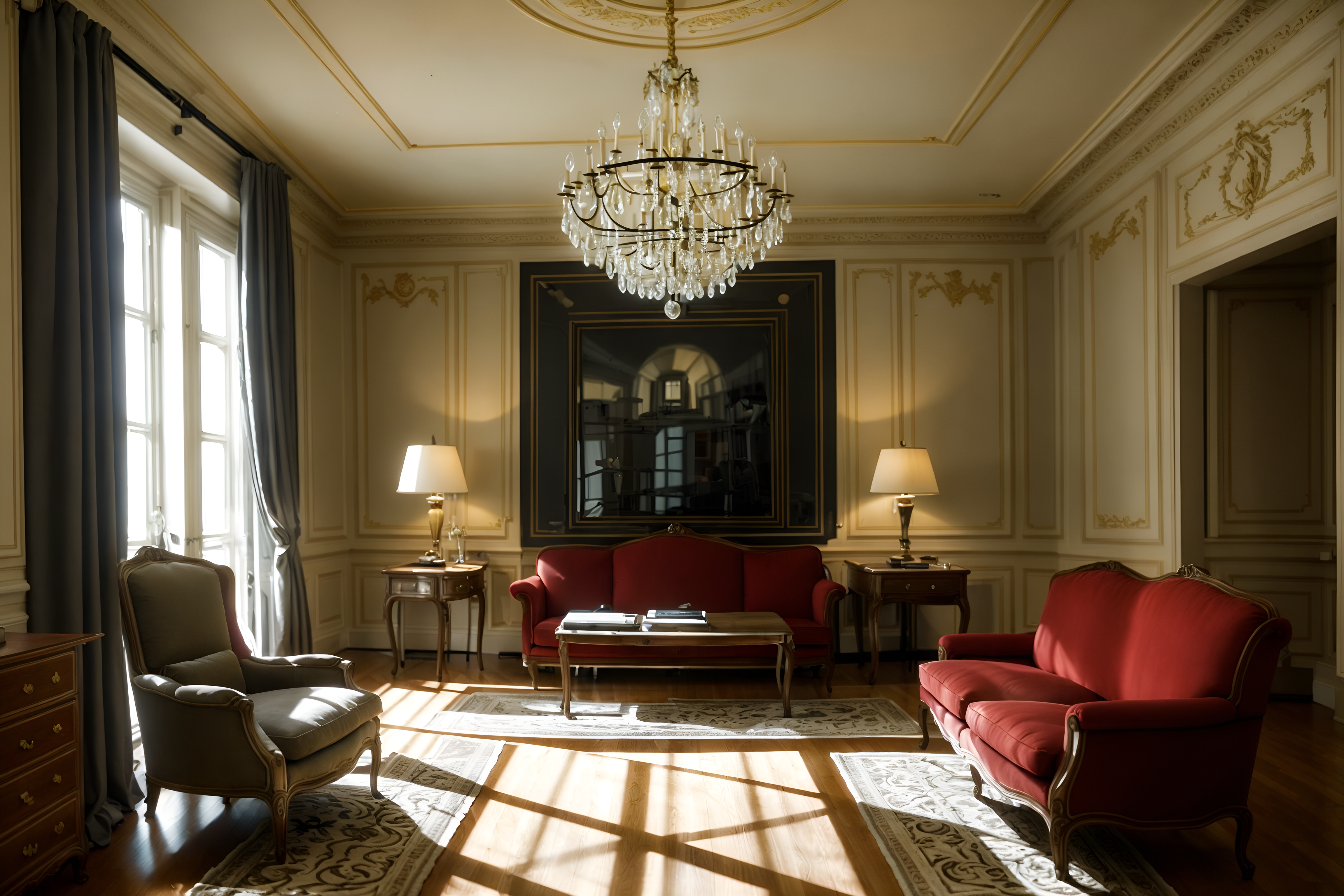 photo from pinterest of french-style interior designed (office interior) with office chairs and computer desks and desk lamps and office desks and seating area with sofa and windows and cabinets and lounge chairs cinematic photo, highly detailed, cinematic lighting, ultra-detailed, ultrarealistic, photorealism, 8k. trending on pinterest. french interior design style. masterpiece, cinematic light, ultrarealistic+, photorealistic+, 8k, raw photo, realistic, sharp focus on eyes, (symmetrical eyes), (intact eyes), hyperrealistic, highest quality, best quality, , highly detailed, masterpiece, best quality, extremely detailed 8k wallpaper, masterpiece, best quality, ultra-detailed, best shadow, detailed background, detailed face, detailed eyes, high contrast, best illumination, detailed face, dulux, caustic, dynamic angle, detailed glow. dramatic lighting. highly detailed, insanely detailed hair, symmetrical, intricate details, professionally retouched, 8k high definition. strong bokeh. award winning photo.